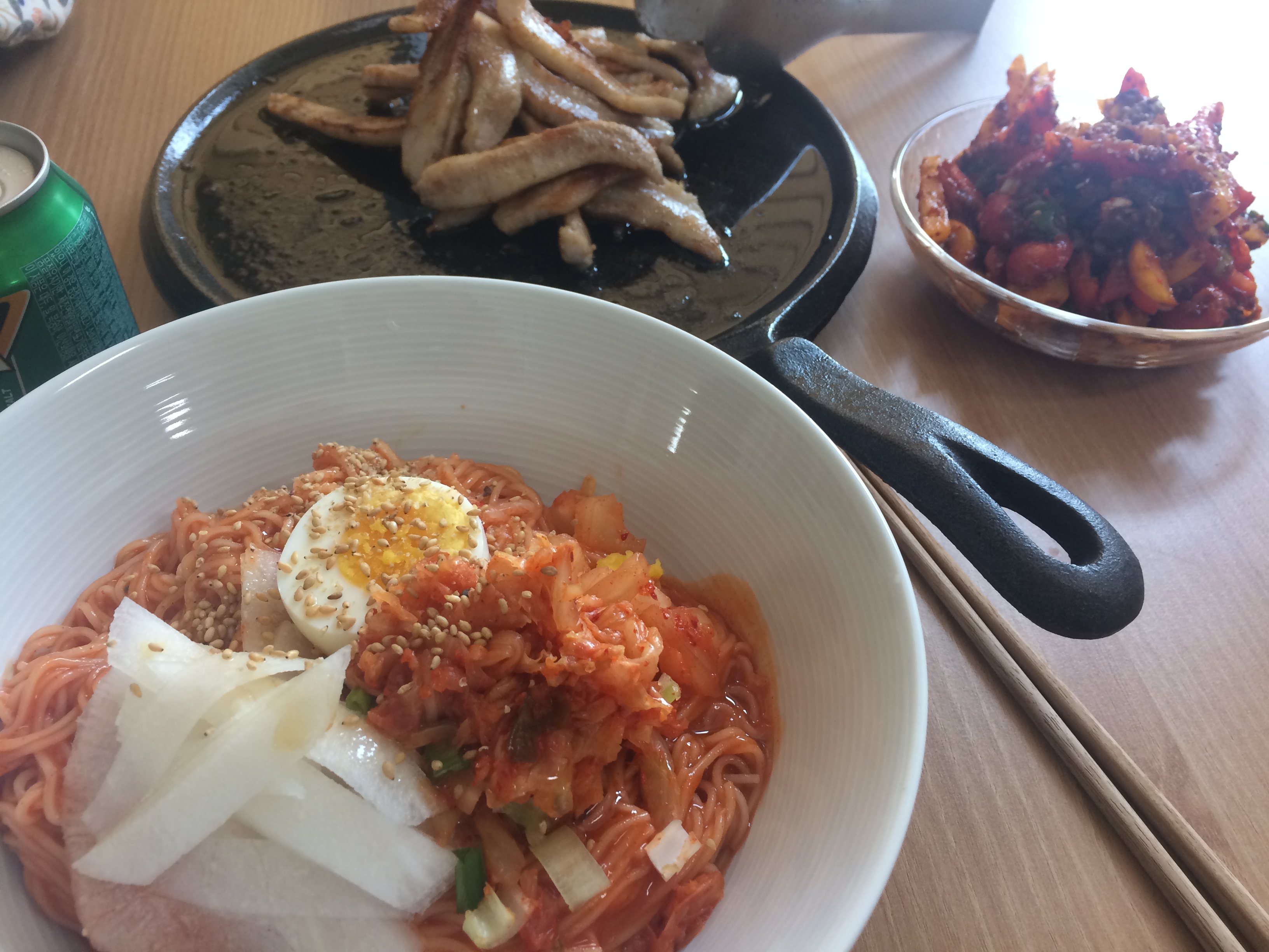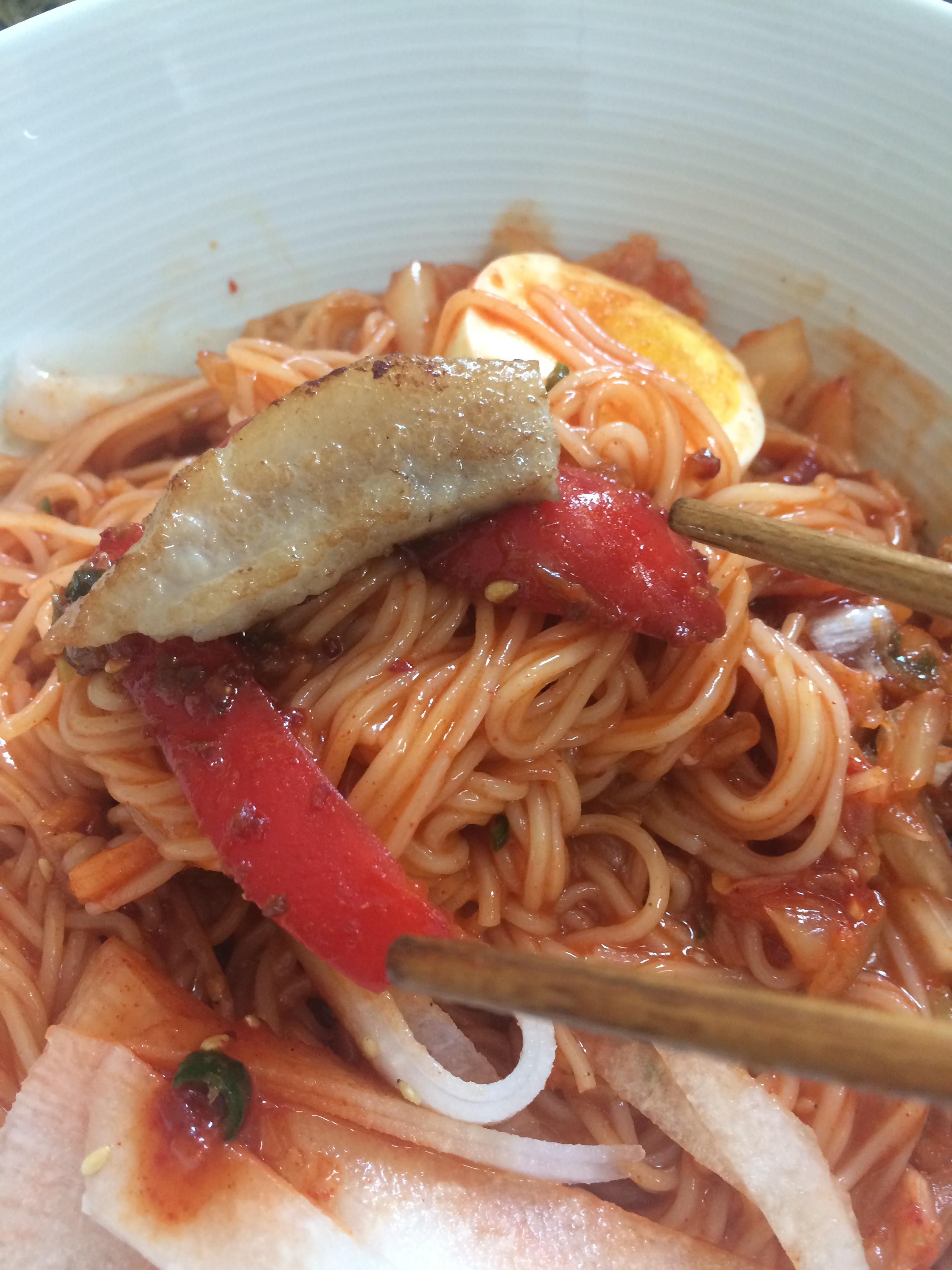 항정이+팦후리카무침+비빔국슈환상으 조합