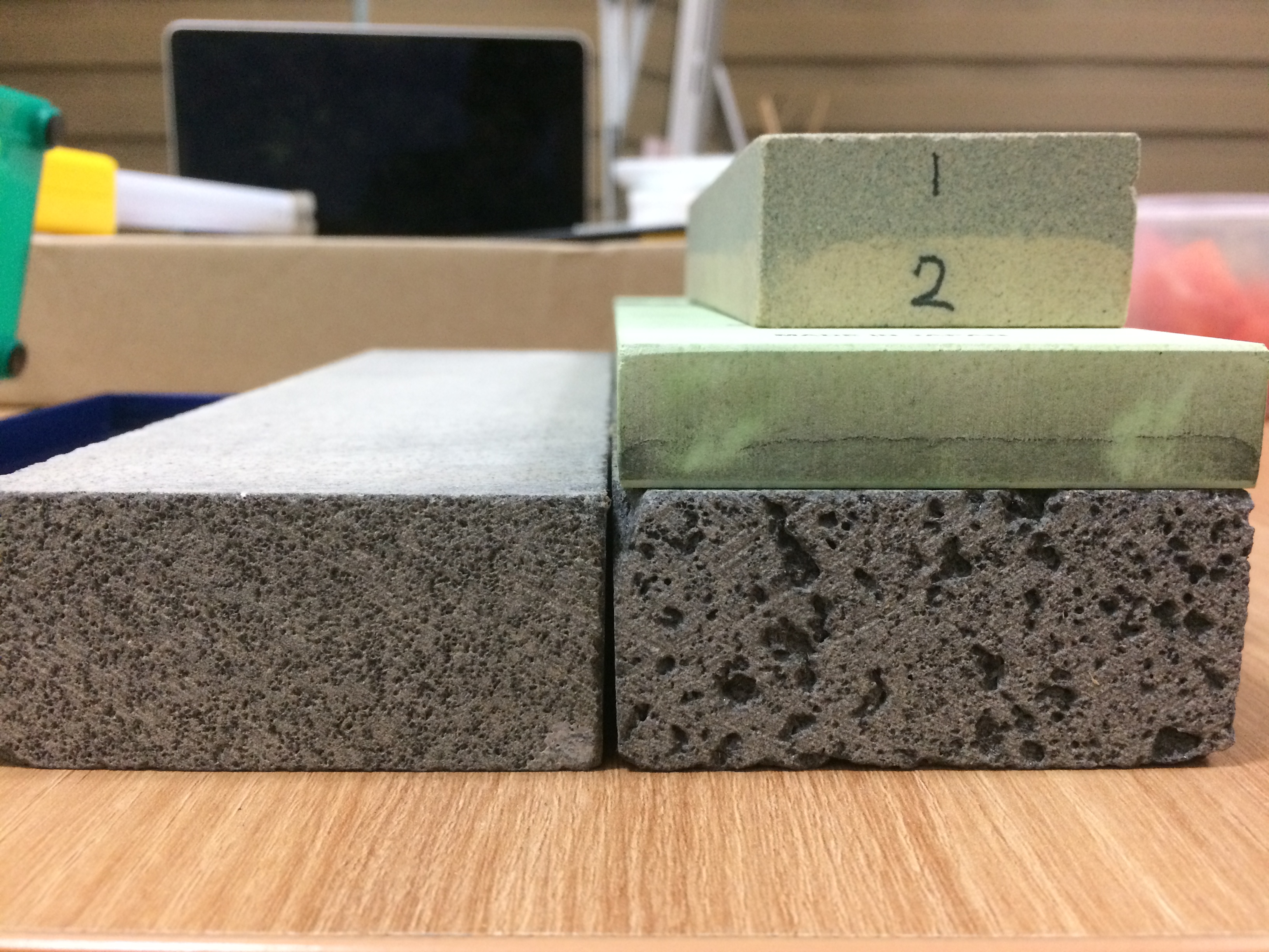 현무암이 하나는 기공이많고(우) 하나는 기공이 적음(좌)