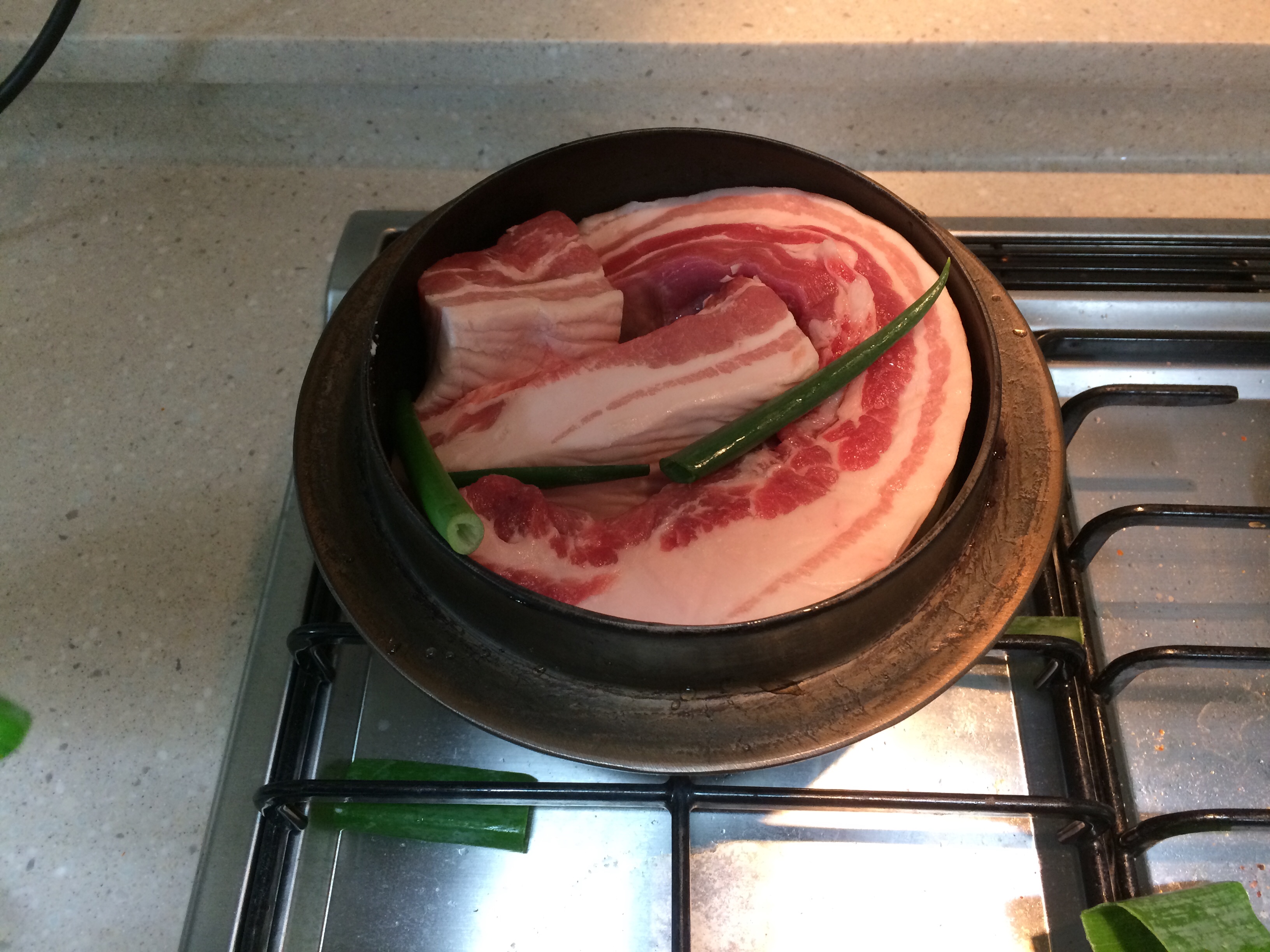 운틴솥 뚜껑과 스뎅이 인데 스뎅이색상이... ㅋ 곰곰 한돈 삼겹살 보쌈용 500g (냉장)