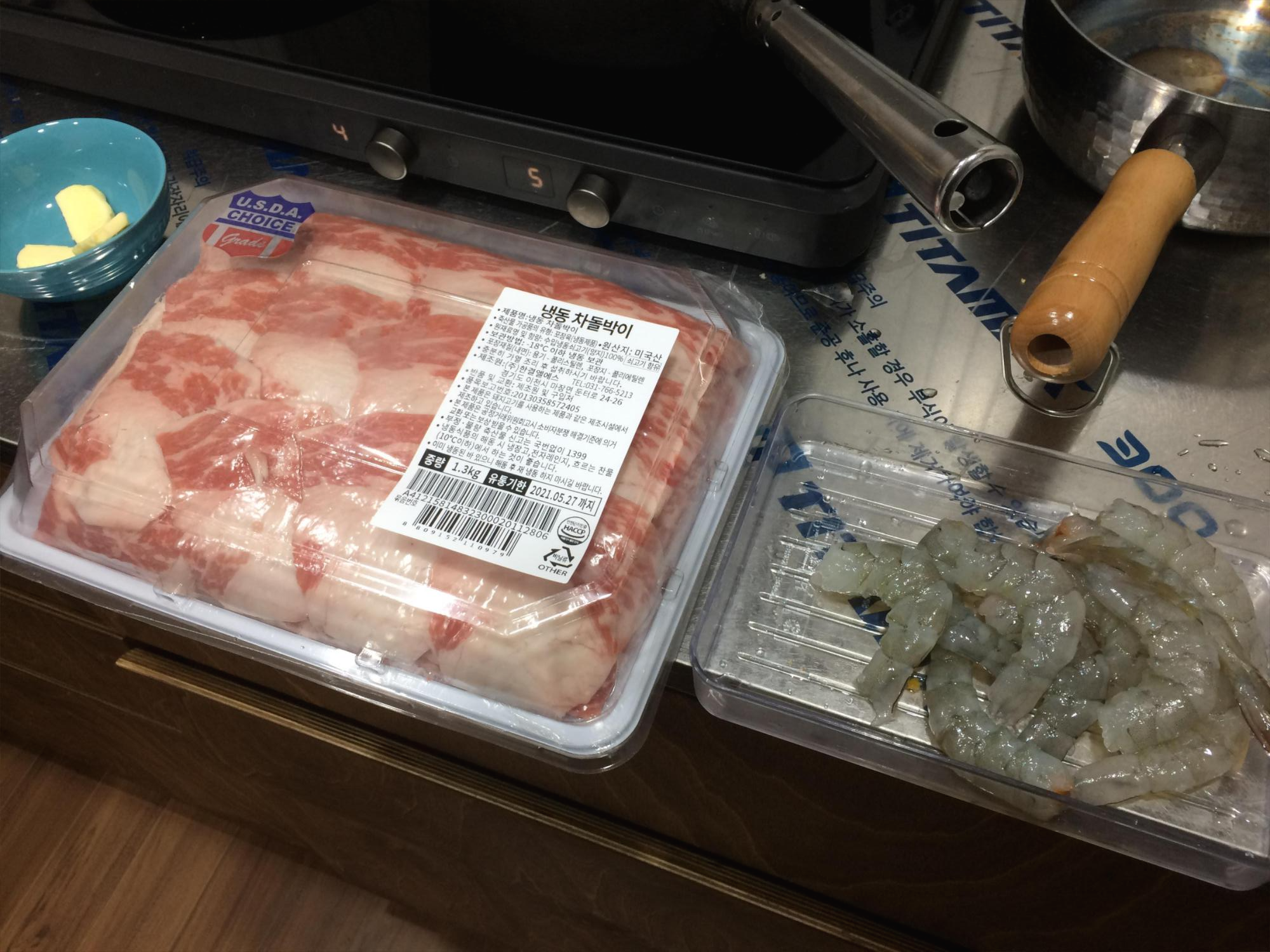 코스트코에서 사온 차돌박이와 새우는 테스트용