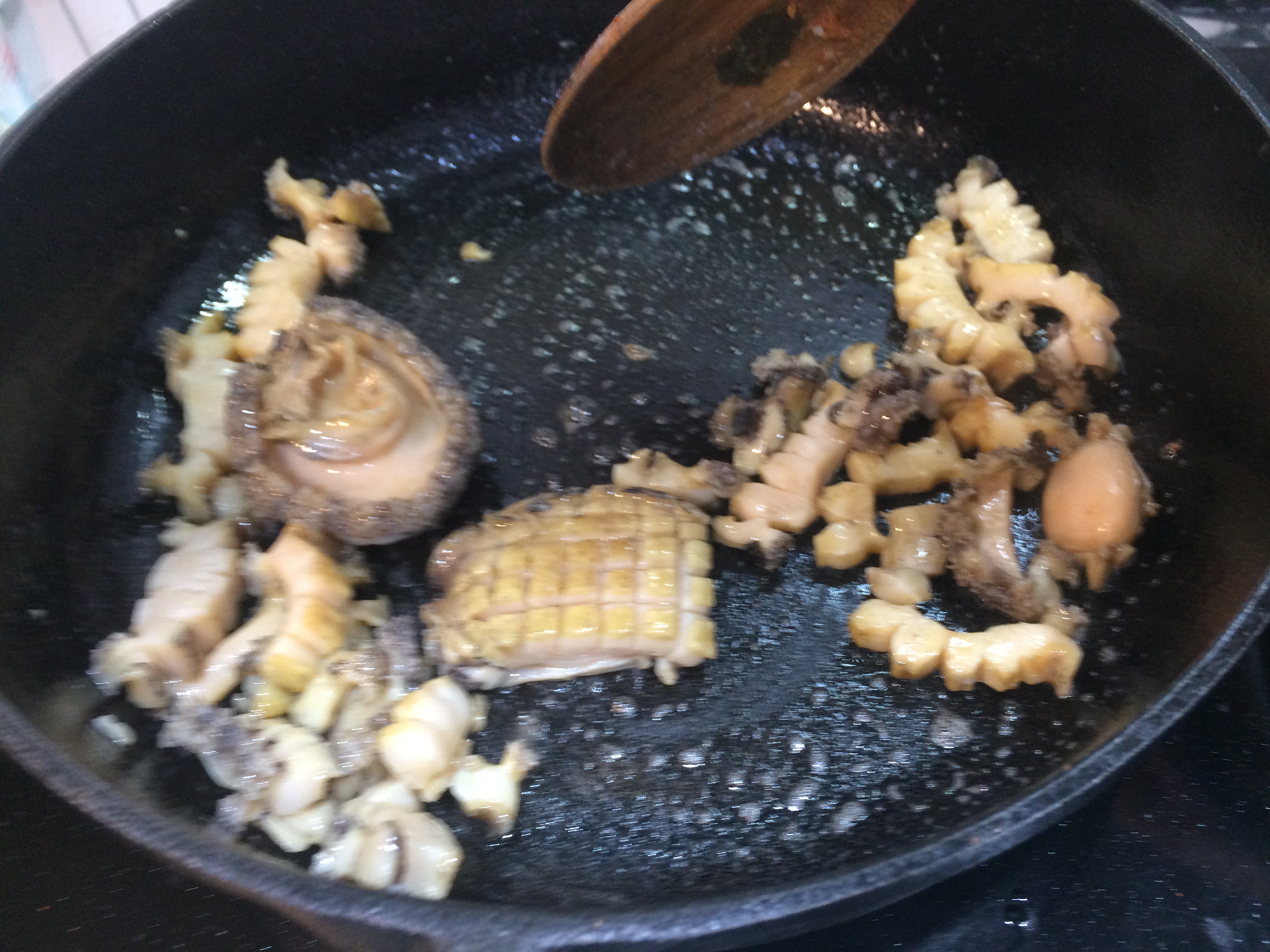 그리고 나머지 전복을 볶아준다. 참기름 넣고~