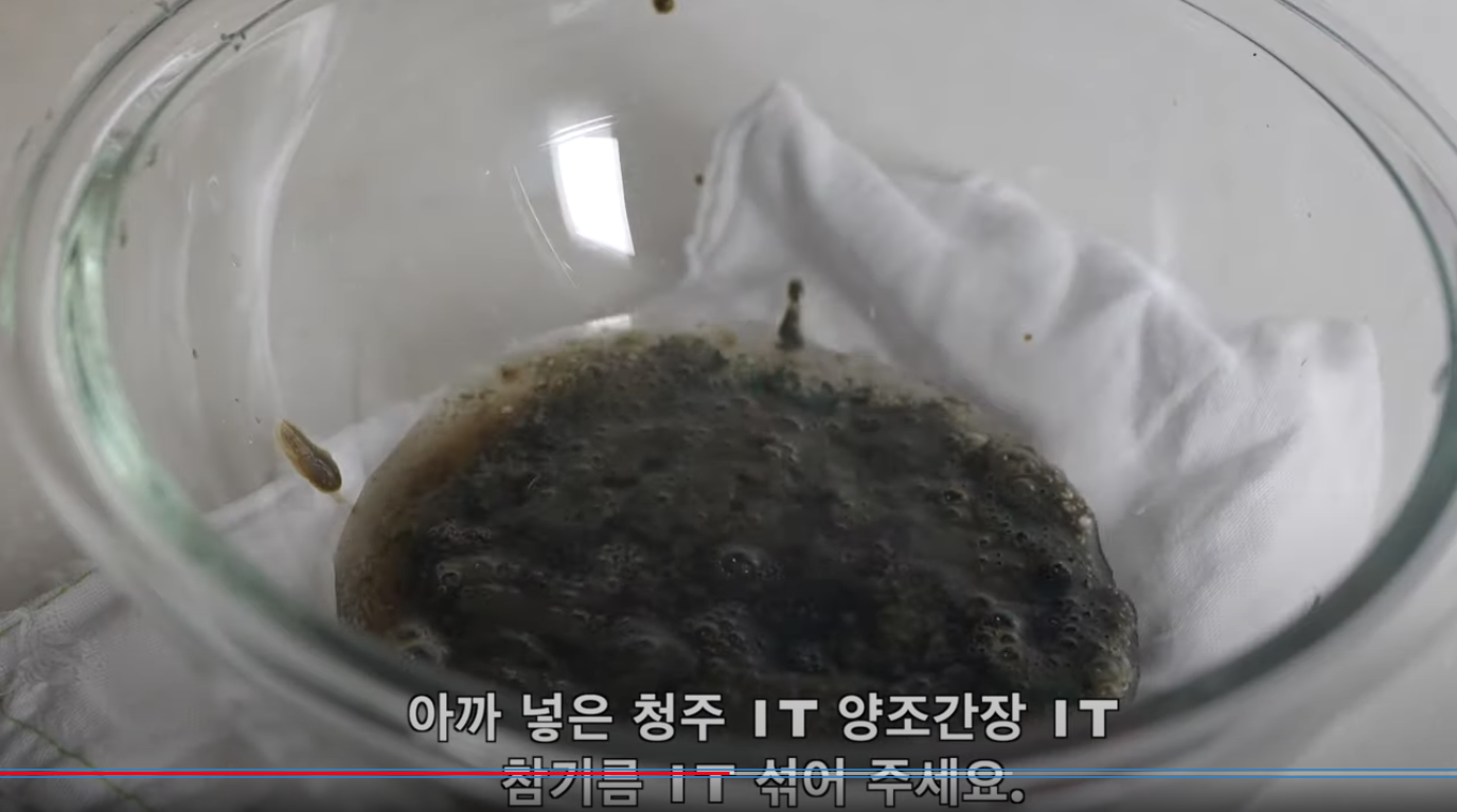 5.으깬 내장3마리에 청주1T 양조간장 1T 참기름 1T 섞어주세요.