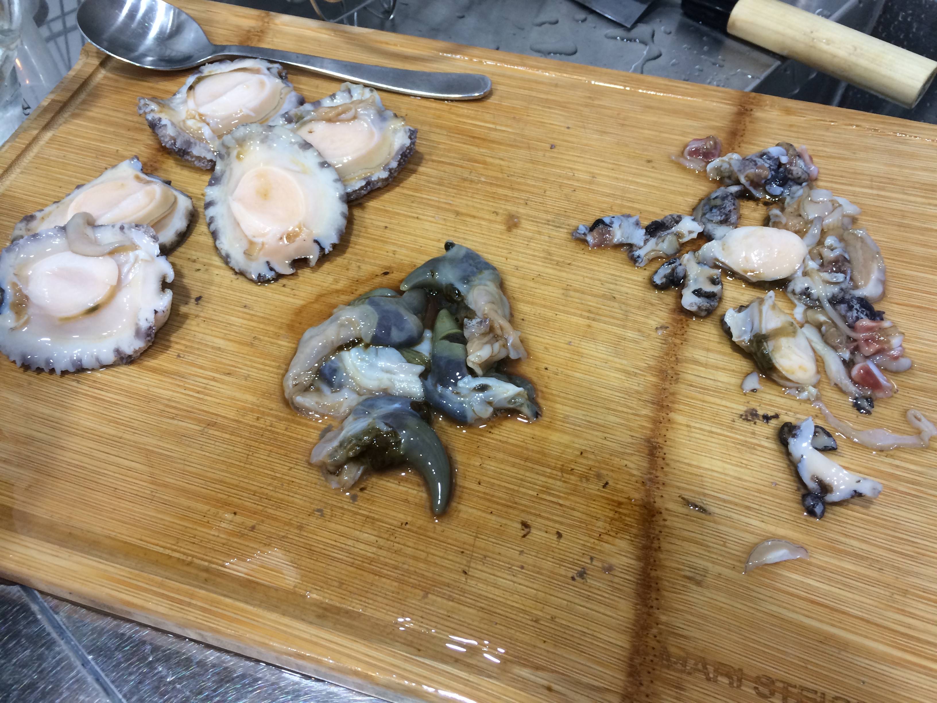 9, 전복 3마리는 통으로 칼 집을 내주고 3마리는 칼집내어 잘라준다.
