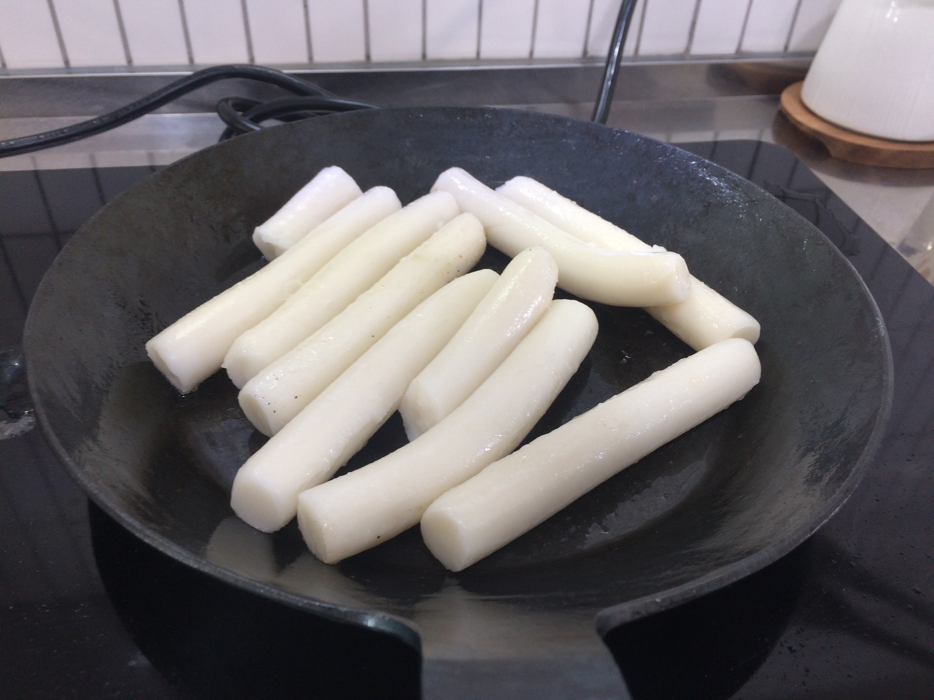 가래떡을 터크팬에 굽고