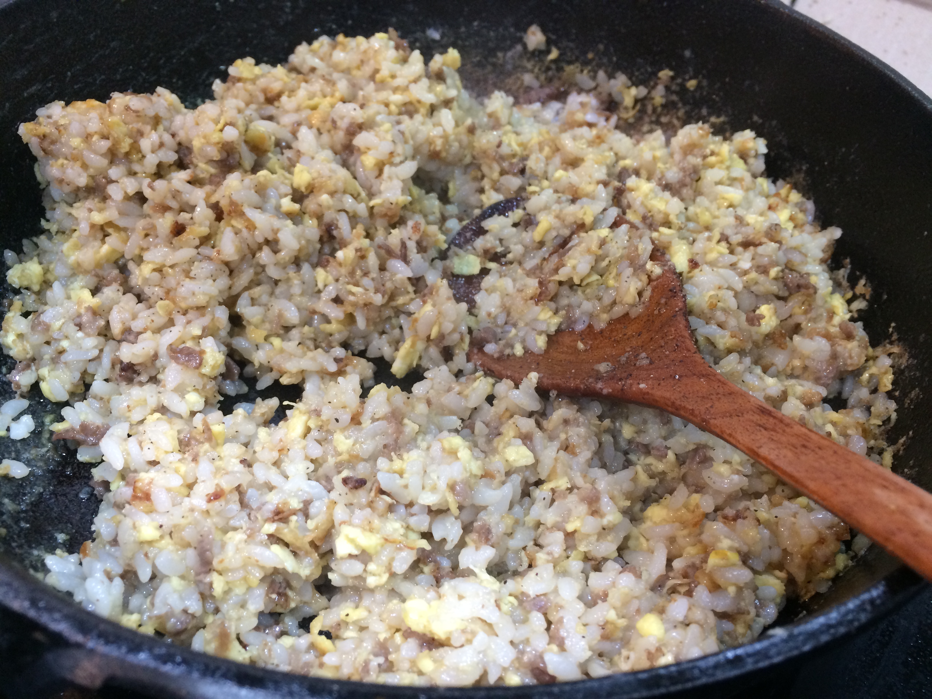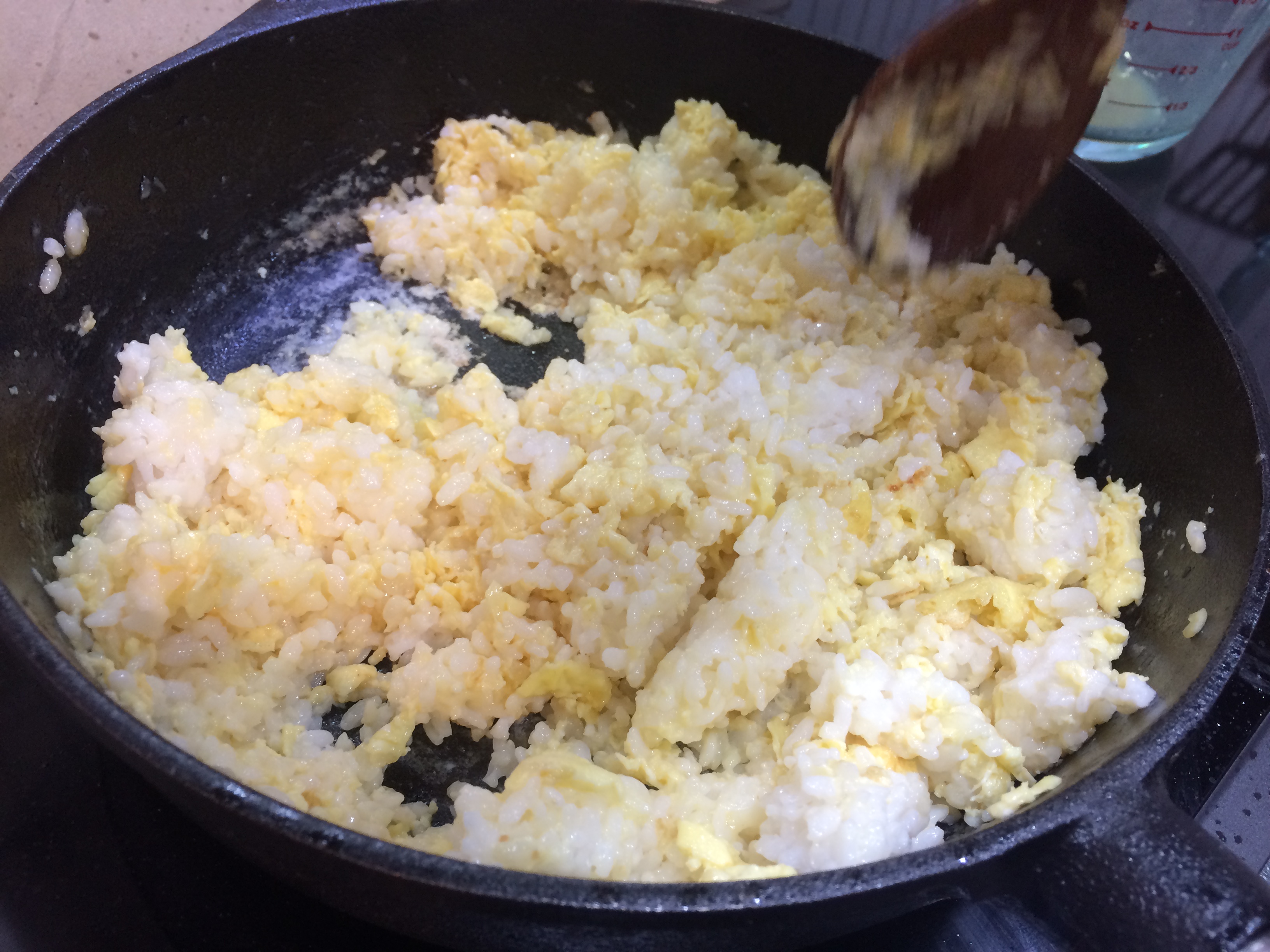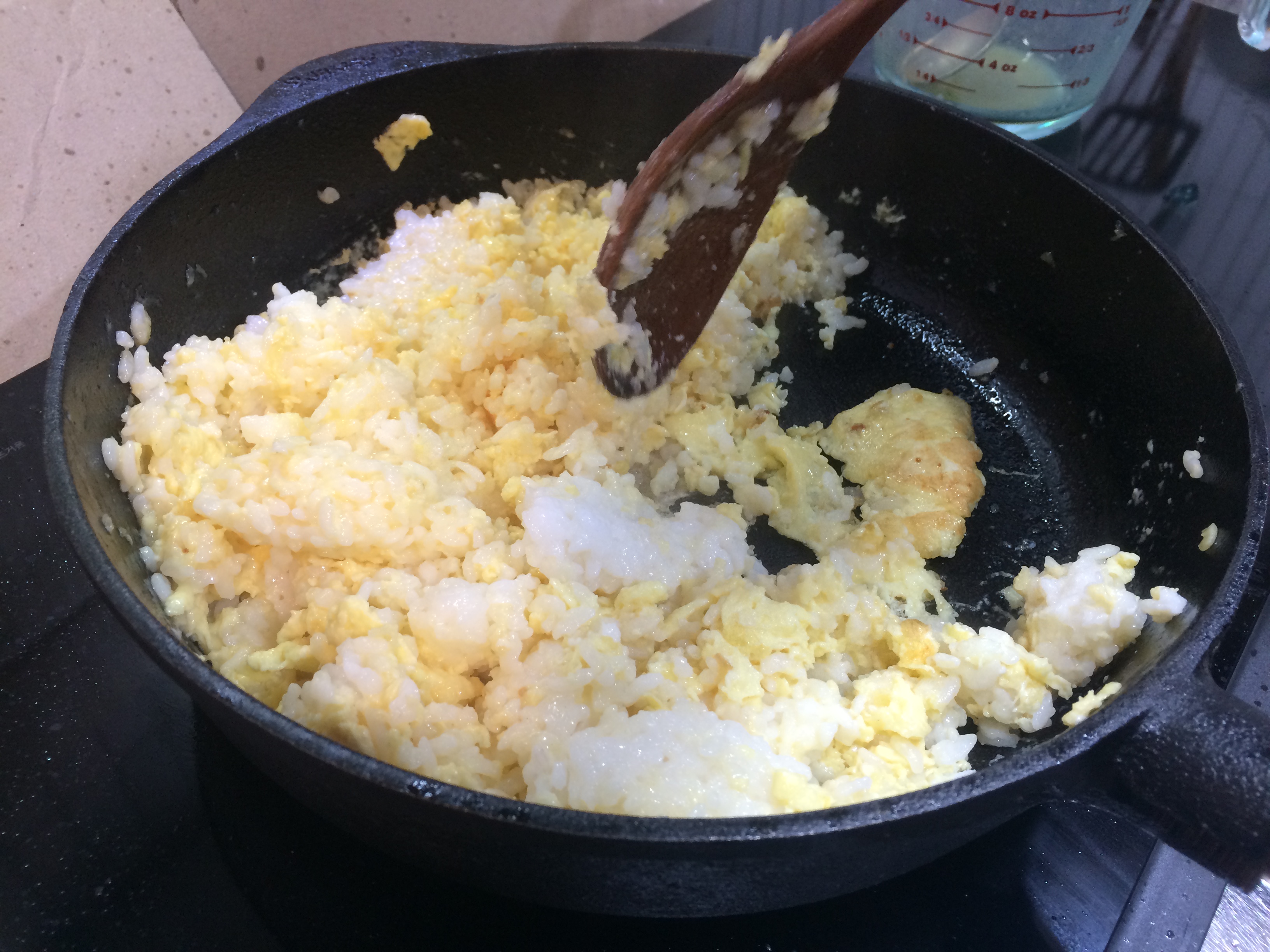 결론 : 약간 떡진밥이 되었다 이유는 수분을 확실히 날려주지 못했고, 그리고 무쇠 팬에 하는게 미스인듯.