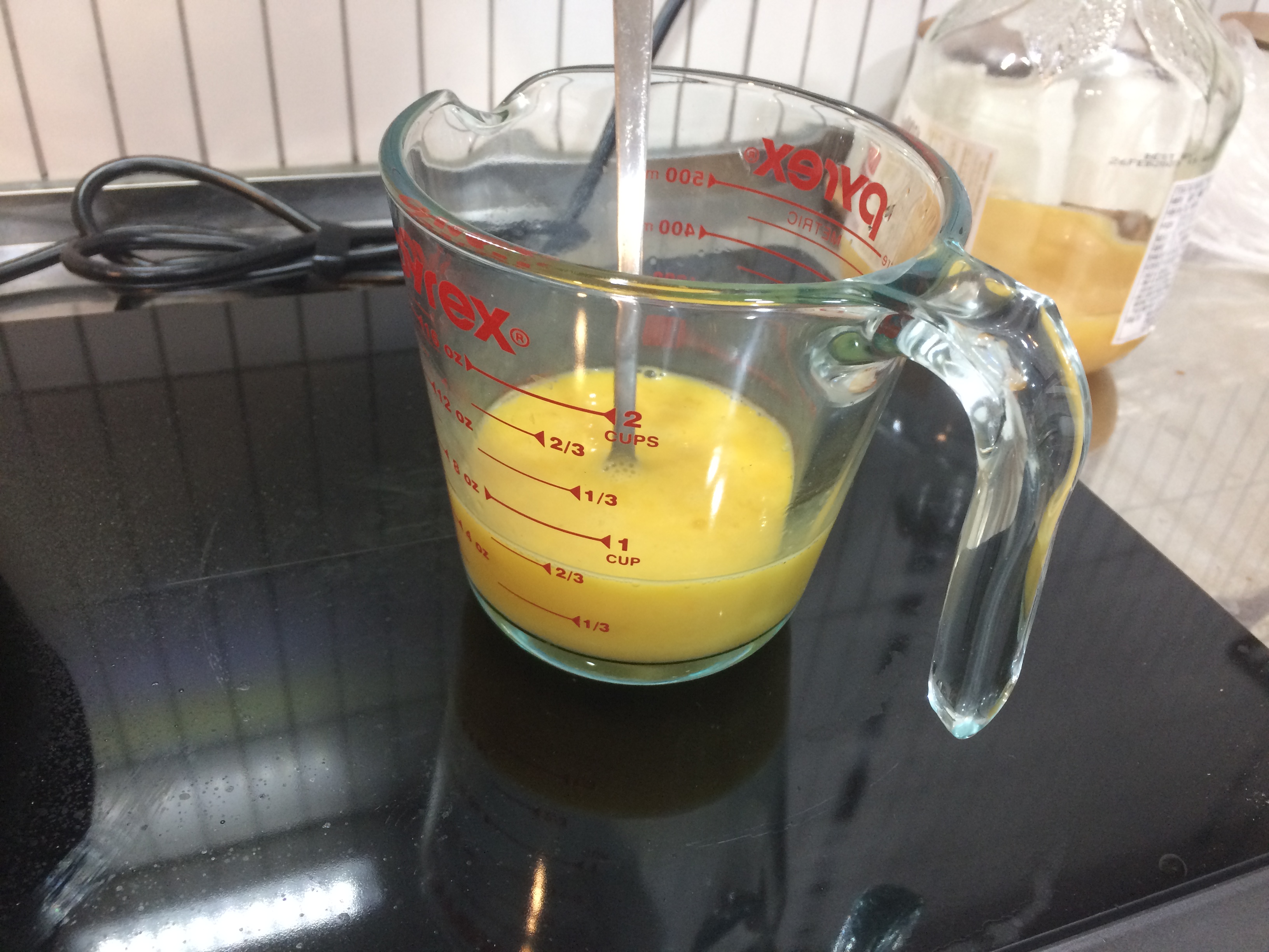 파이랙스 500ml 에 미리 계란을 풀어놓는다.