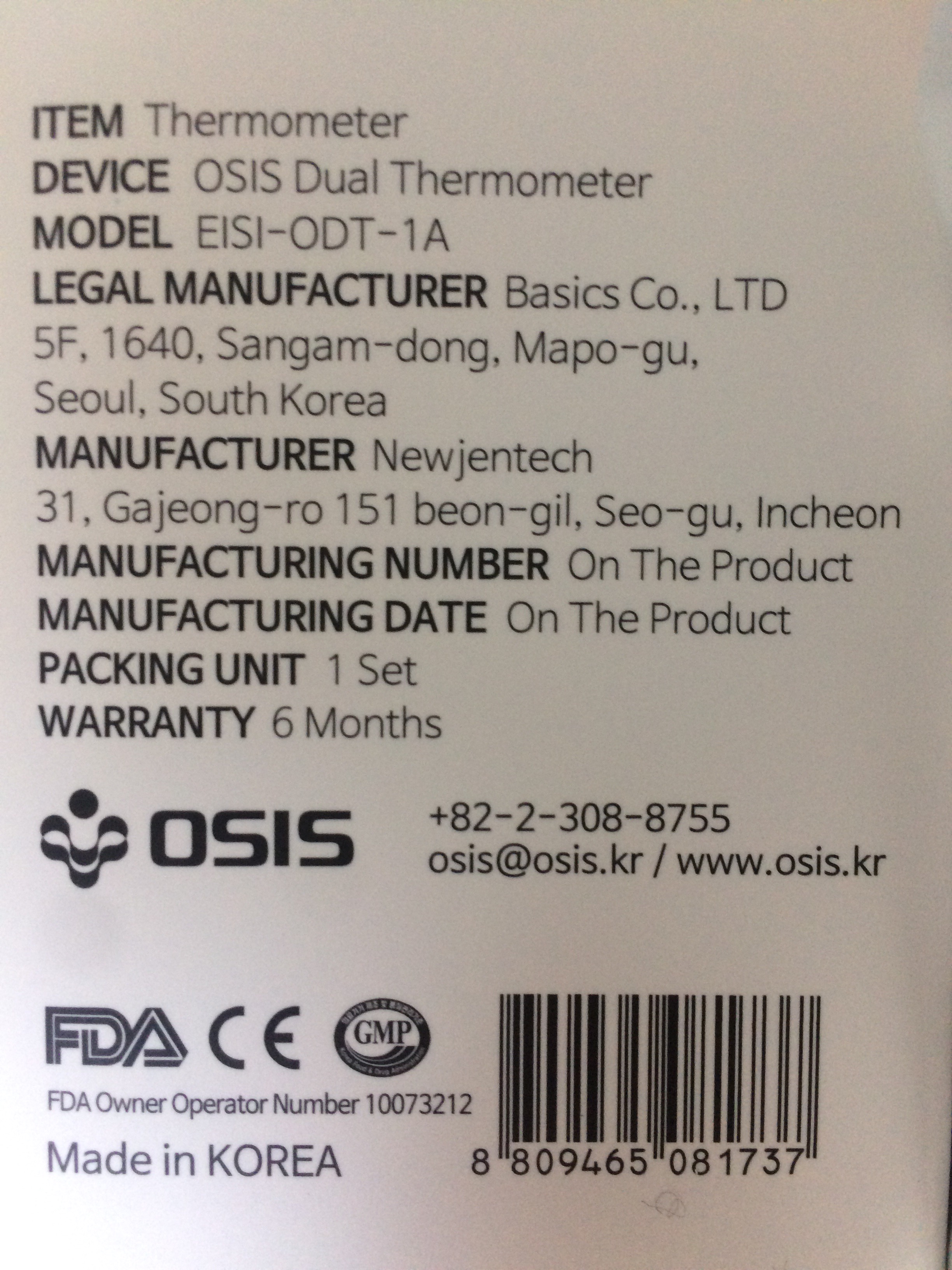 오시스 디지털 듀얼 비접촉 체온계 EISI-ODT-1A