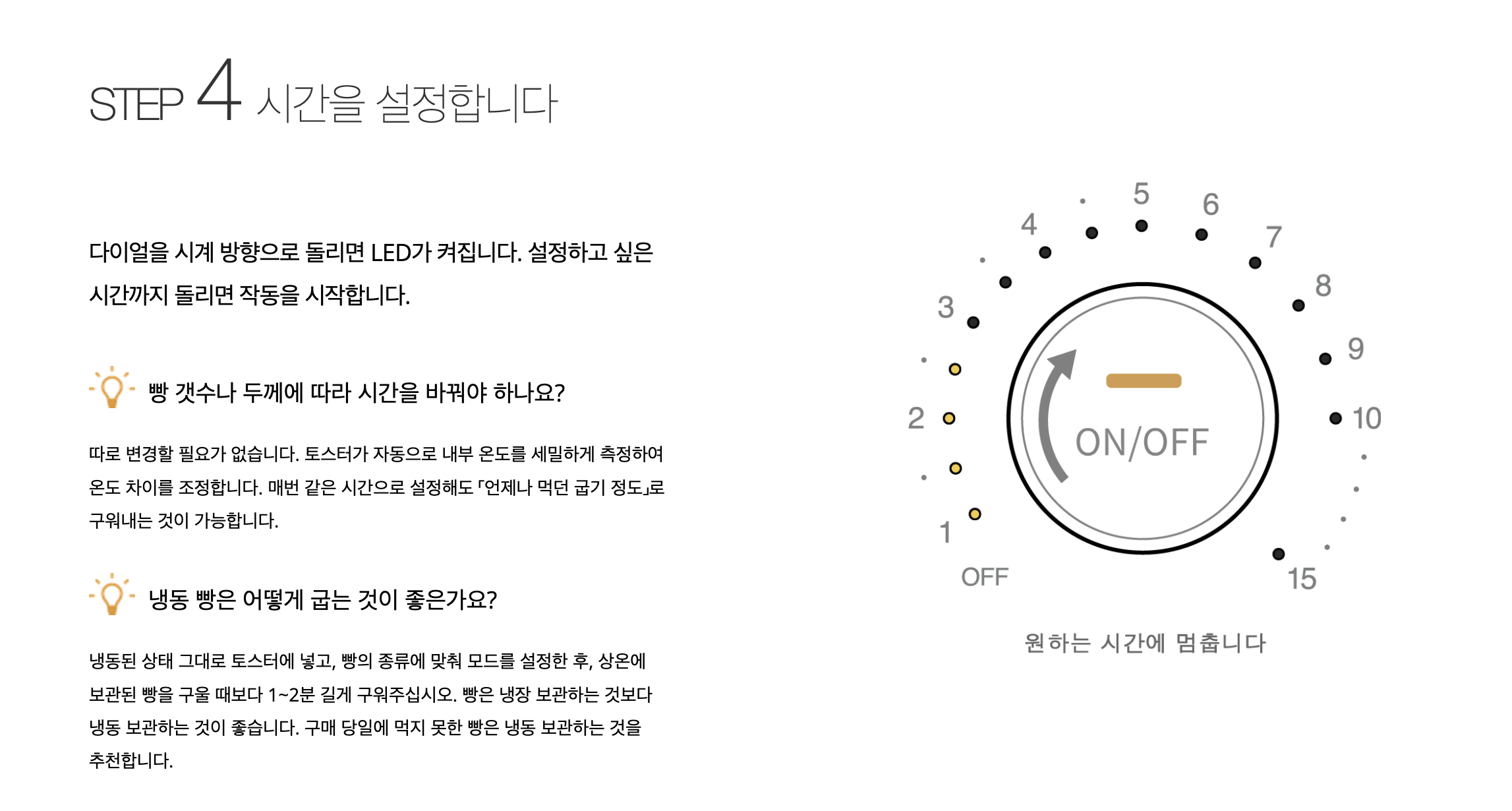 시간 세팅을 해줘야 하는데 기본은 3분 그리고 나선 상하단에 위치한 히터에 의해 노릇노릇 구워진다! 이때 향이 정말 좋다!!