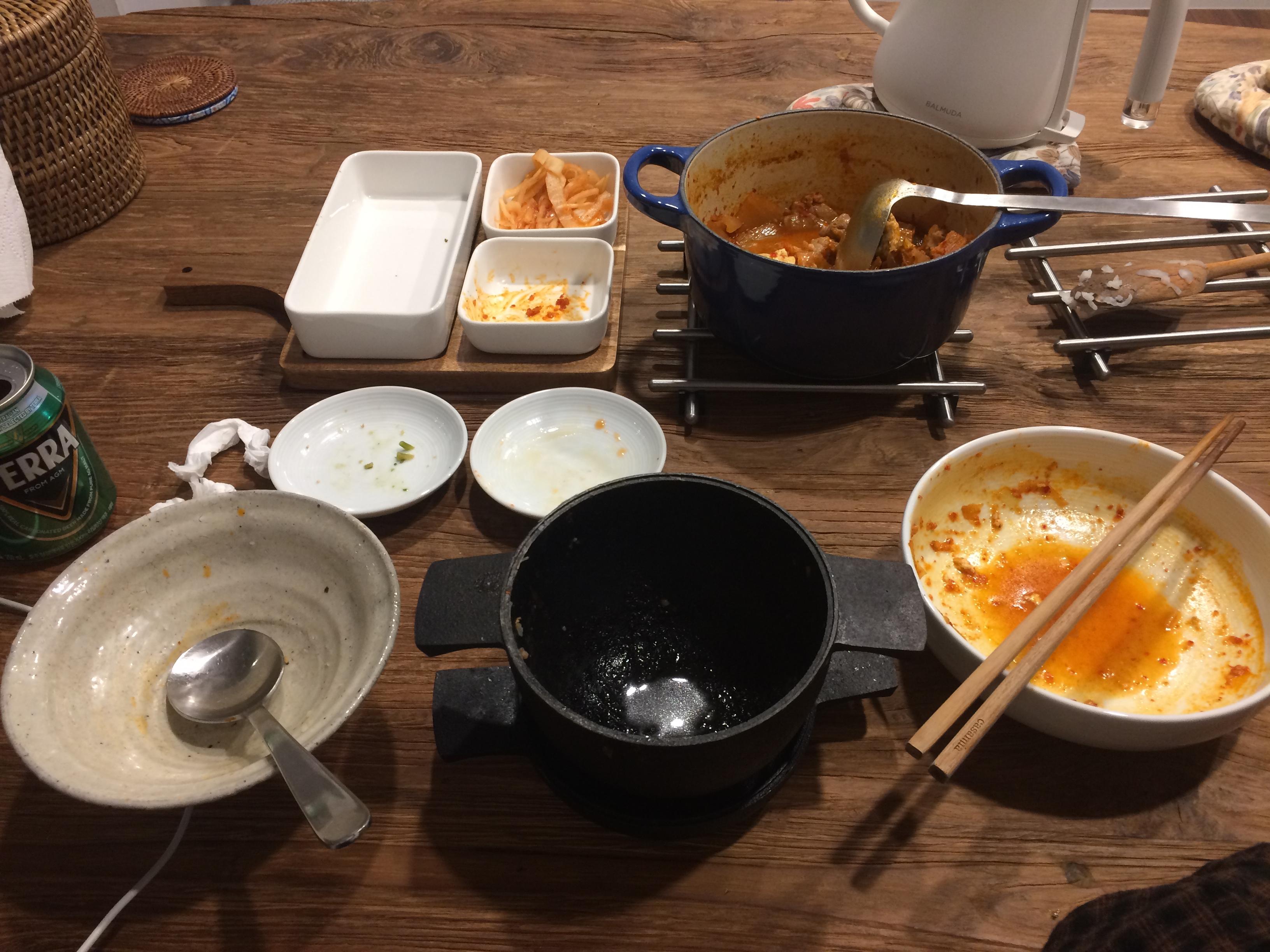 그리고 김치찌개를 르쿠르제 18 냄비에 보글보글~~