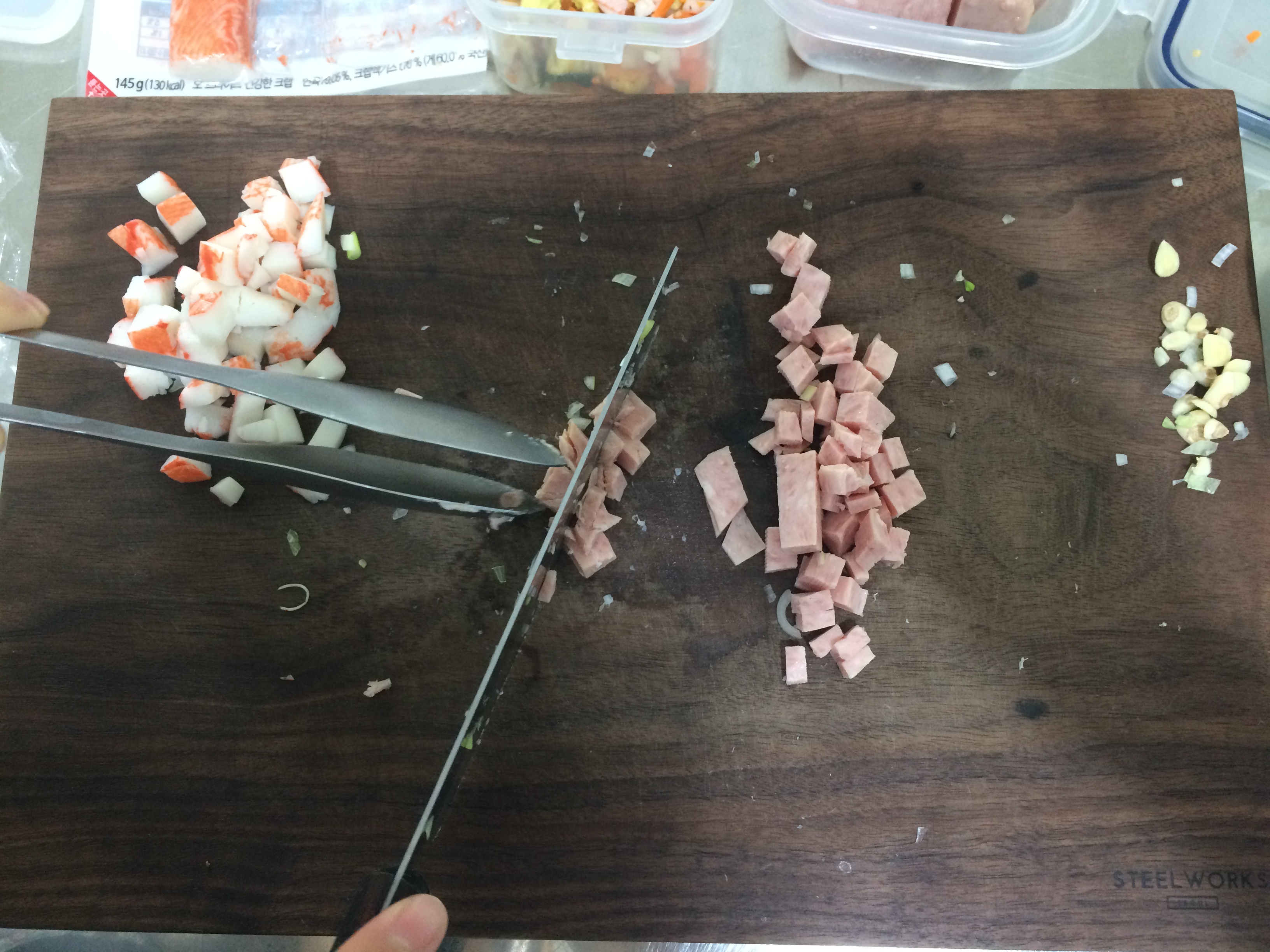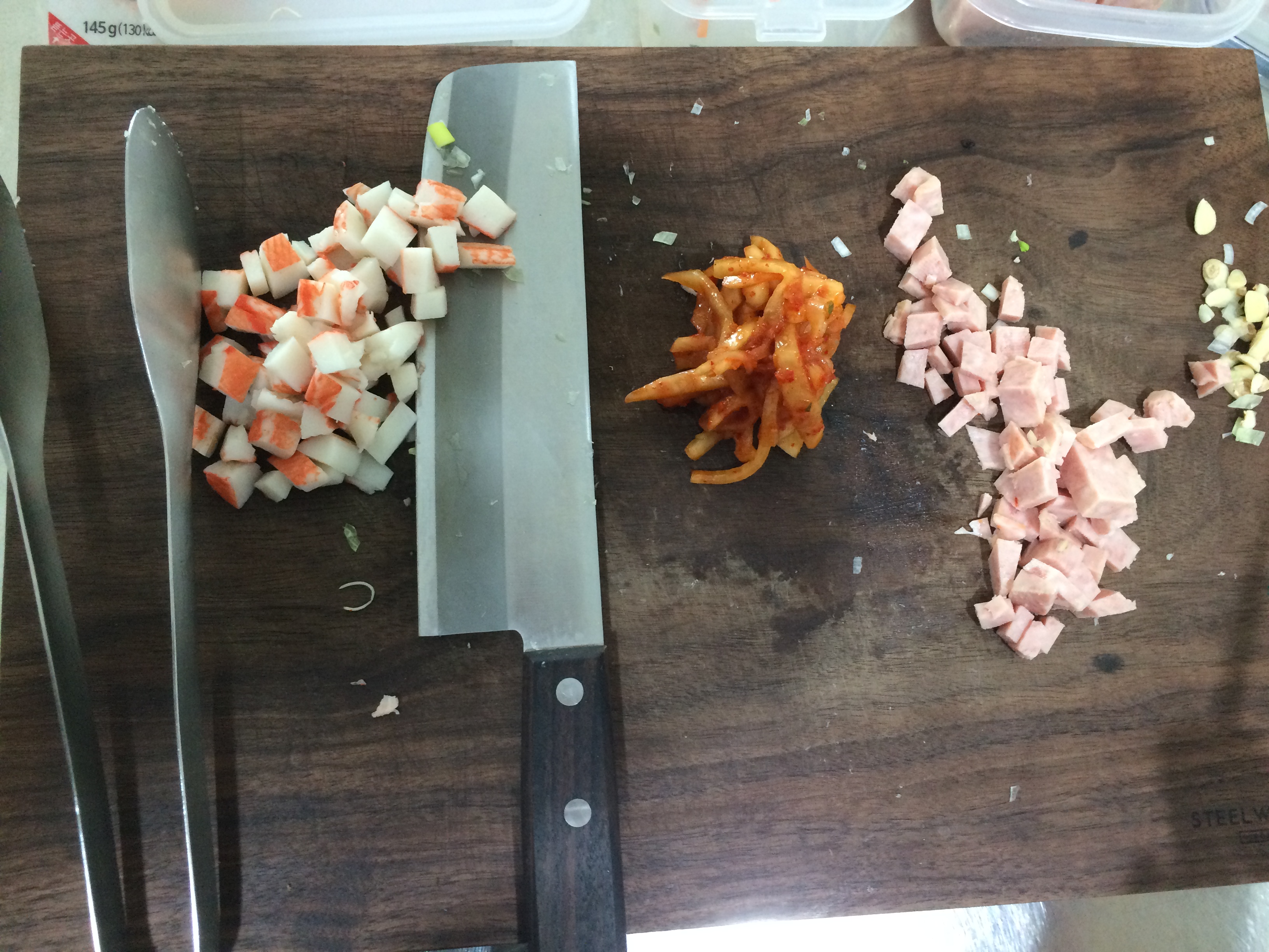 파 마늘 맛살 스팸 채쓴무 ..,..