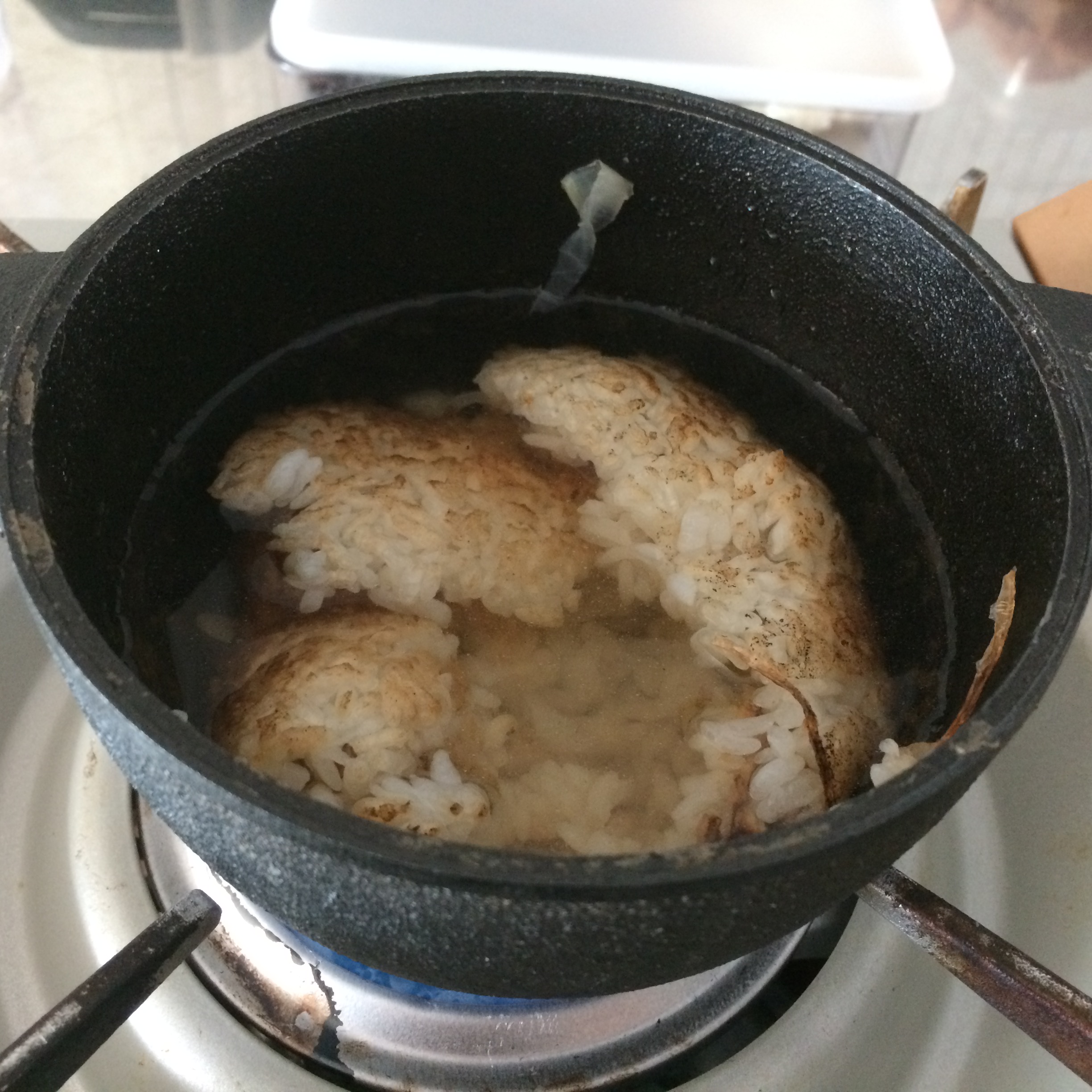 누룽지 준비!! 밥먹을동안 약불에 5분 끝.