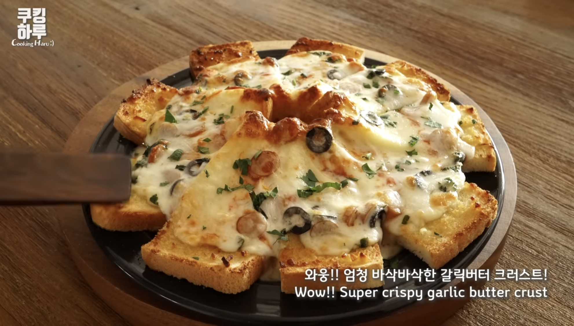 이제 잘 튀겨주면 끝! 갈릭 토스트 피자빵!