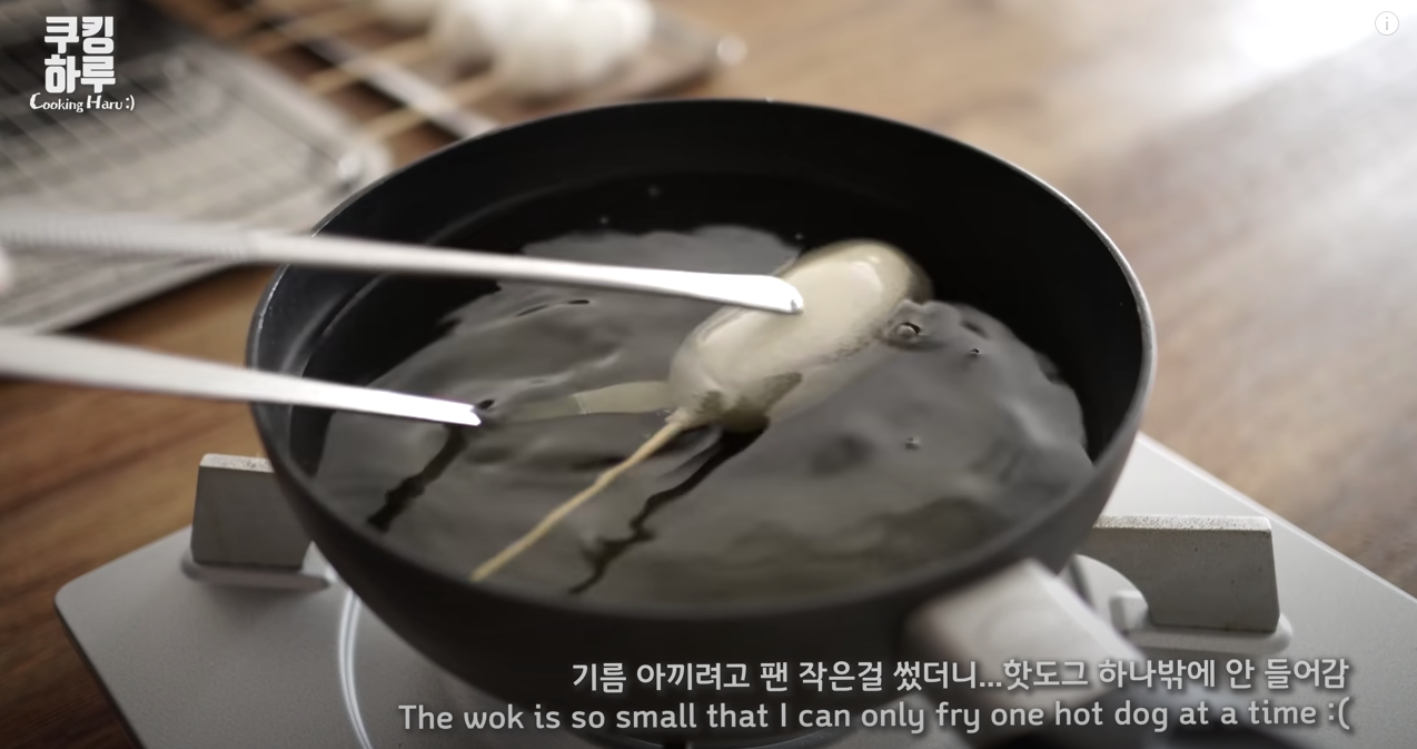 핫도그를 쌀밥을 이용해서 밀가룰와 계란옷 그리고 빵가룰를 묻히고 튀기고 기발한 아이디어로 우리의 눈을 사로잡았다! 케첩가득해서 설탕 촤르르르 발라먹으면!! 쌀밥과 소세지와 치즈를 한방에!!