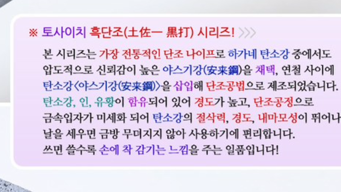진짜 지대로 된 무쇠칼은 엄청난 절미가 있을듯..