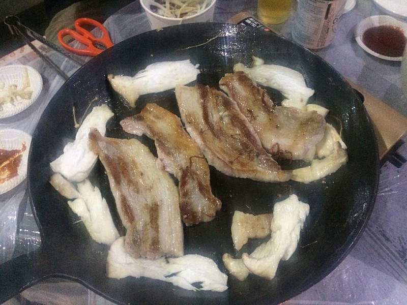 터크팬에 고기 굽고 밥뽁기.. 타는 바람에 ㅠ 불새기 조절 중요