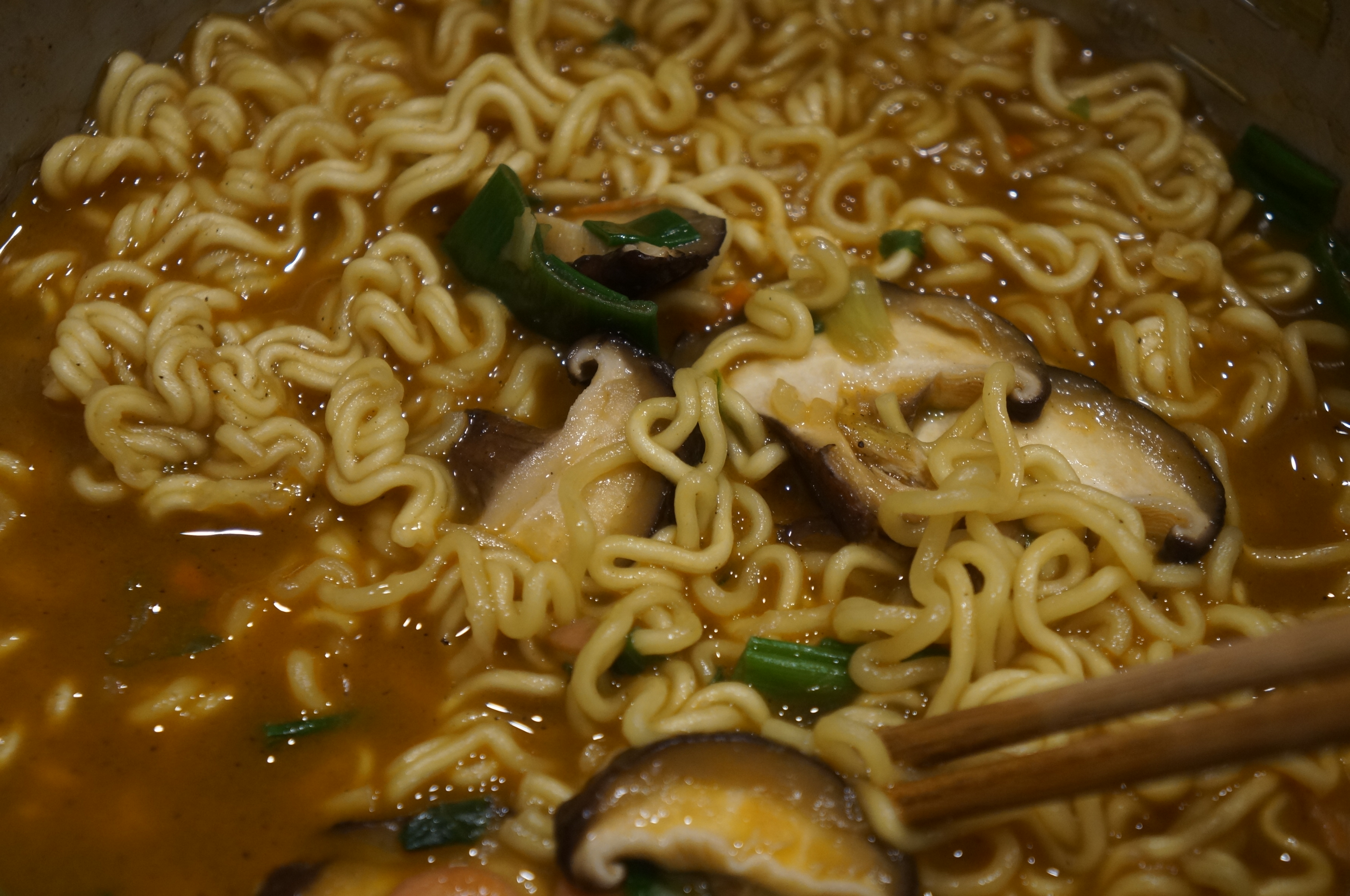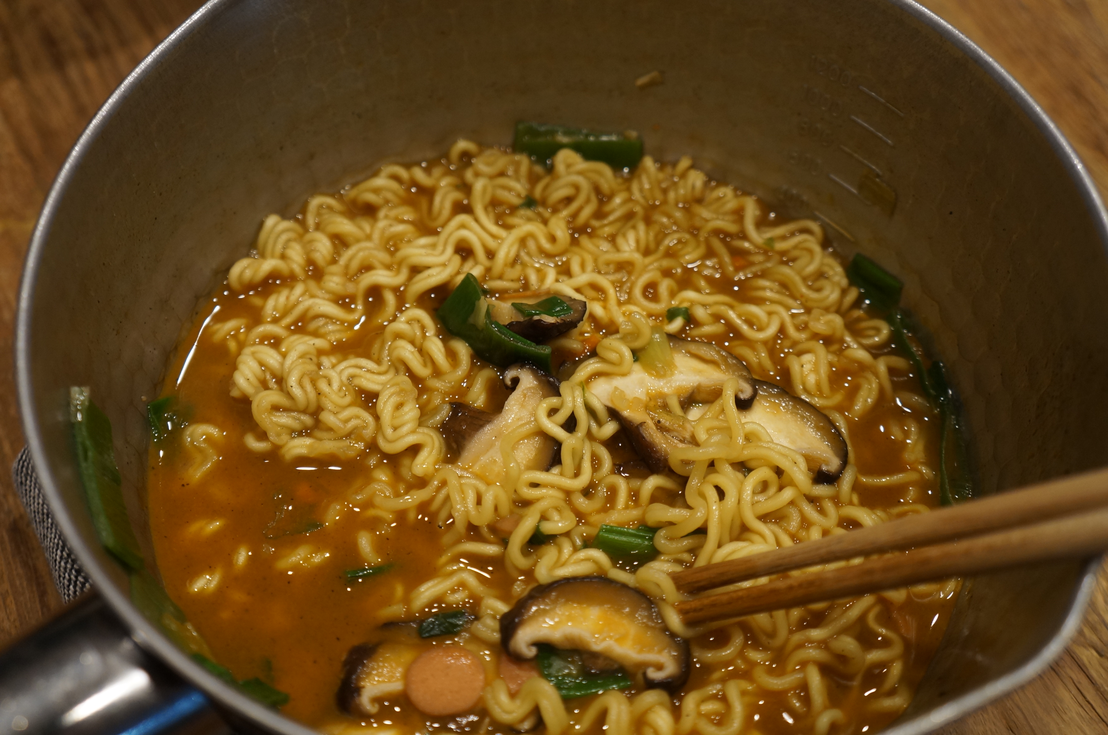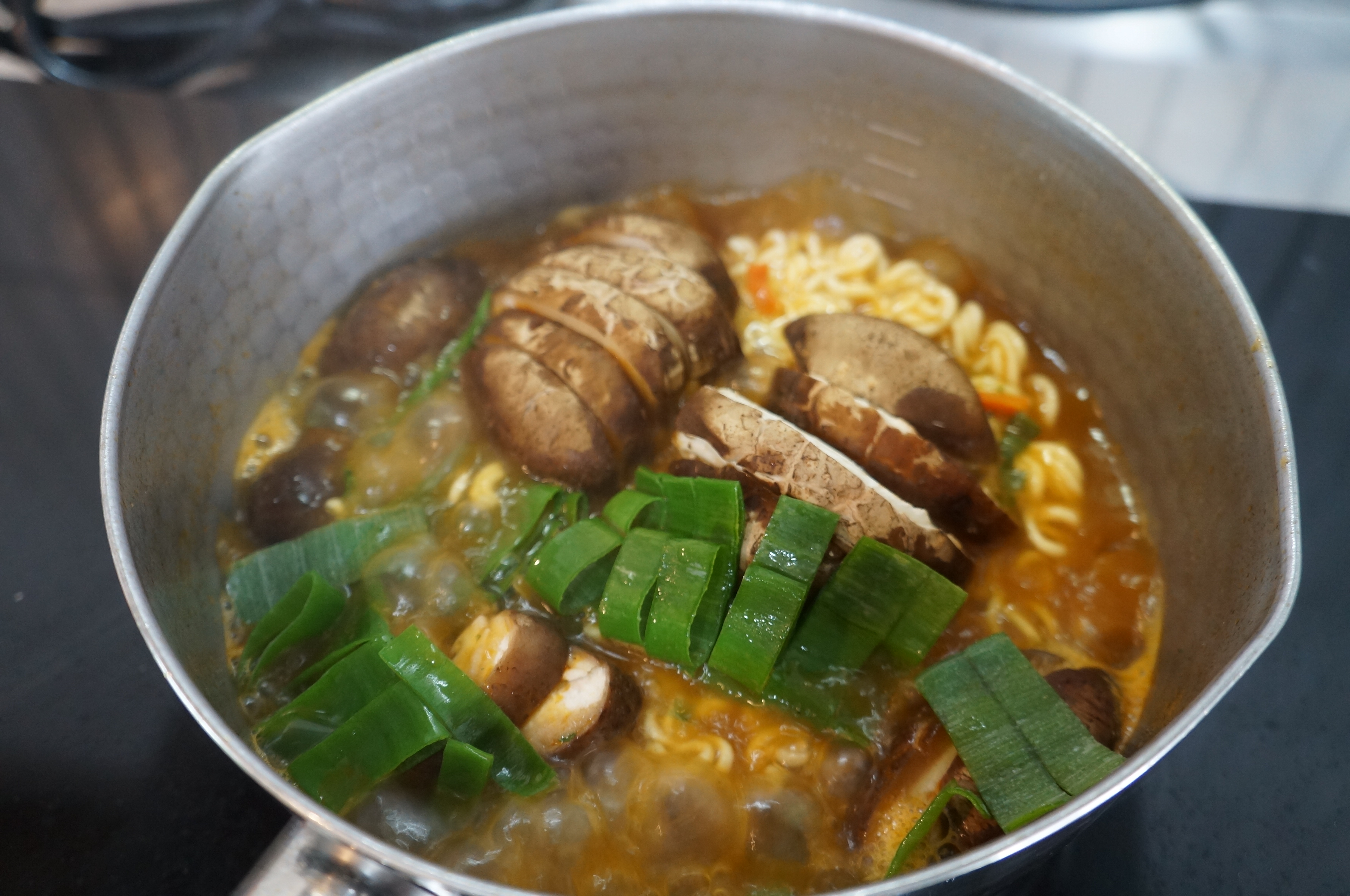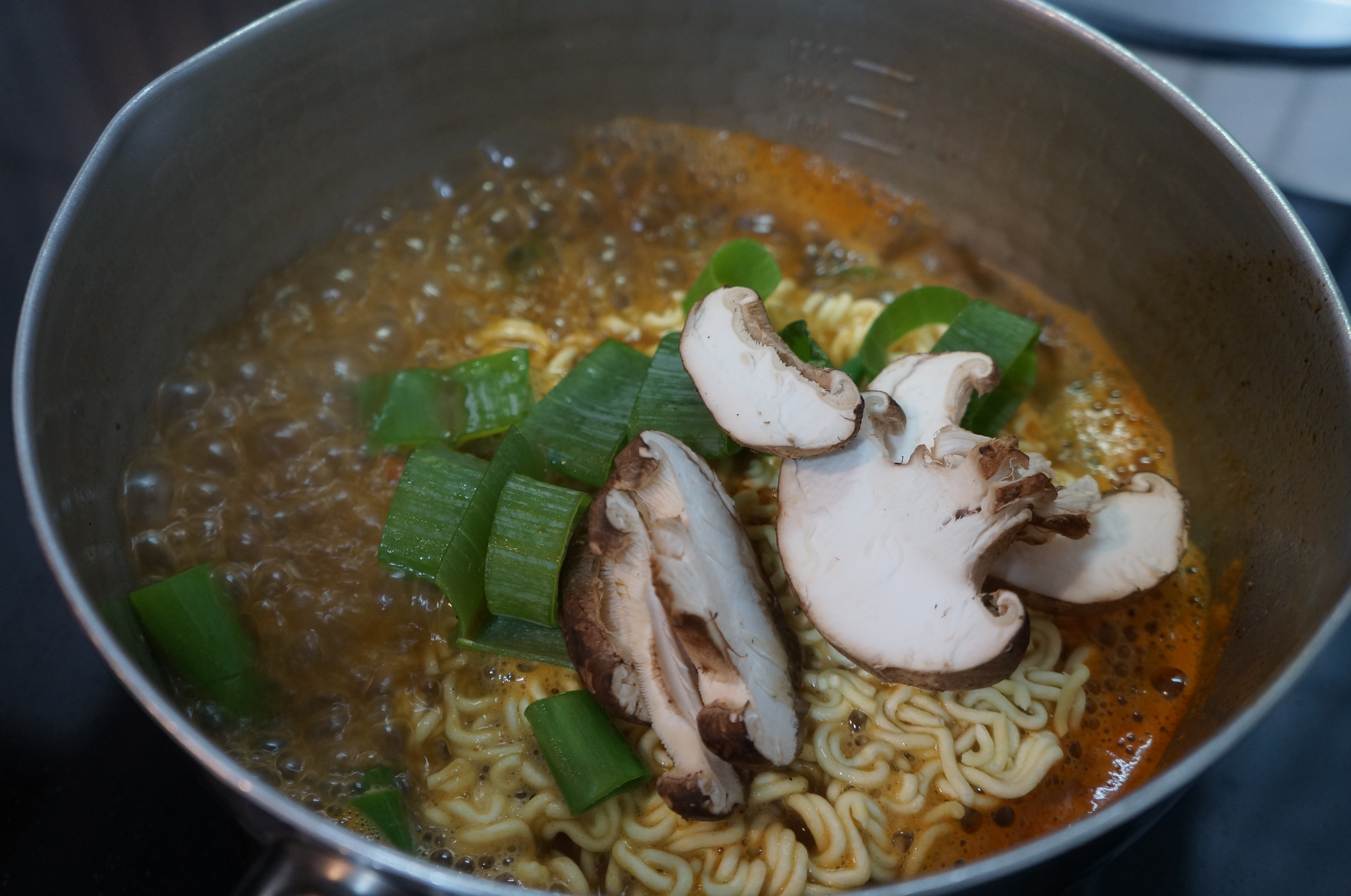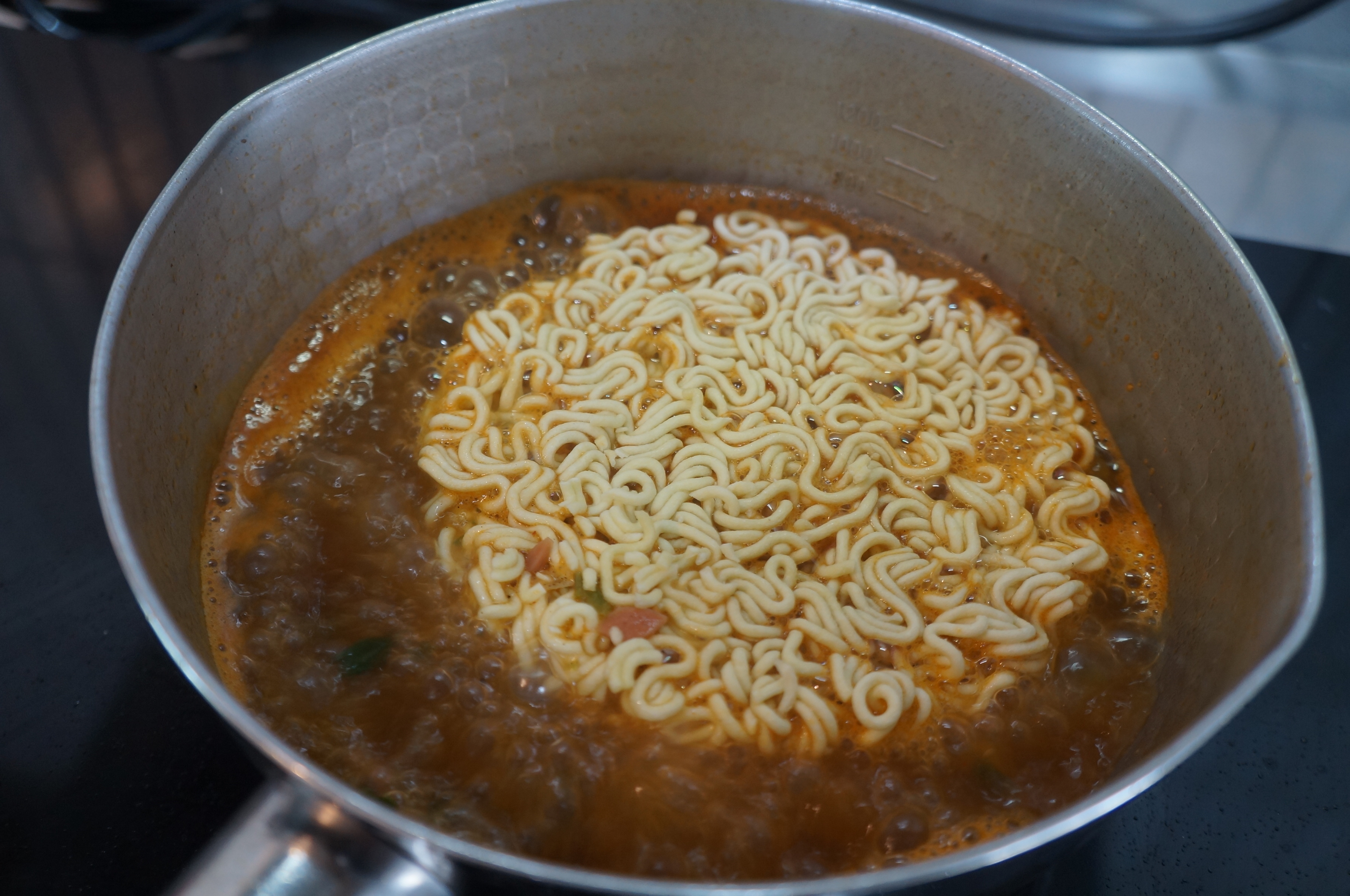 라면 조리의 예 - 사진같음 라면 건더기를 먼저 넣고 끓이다가