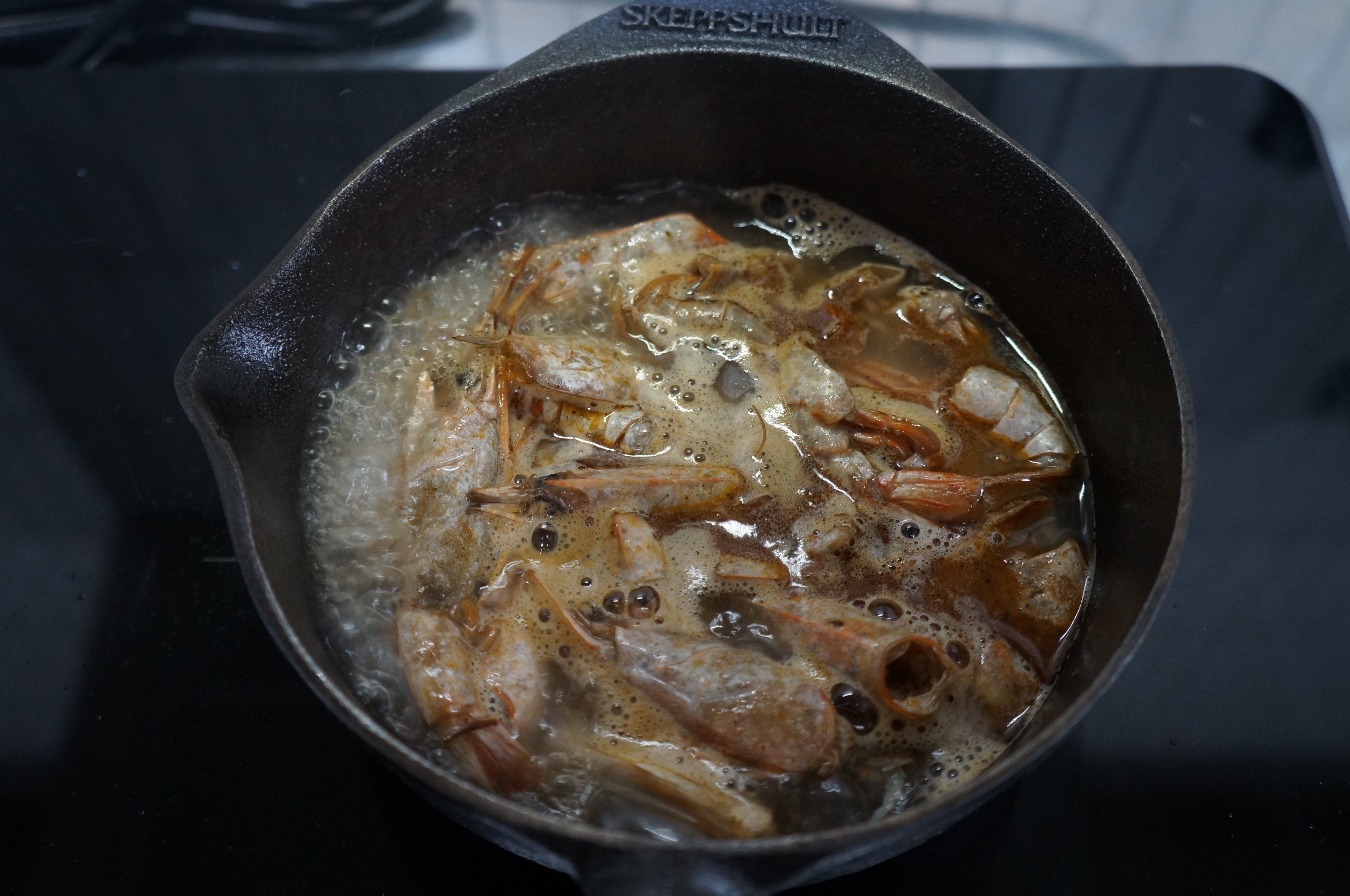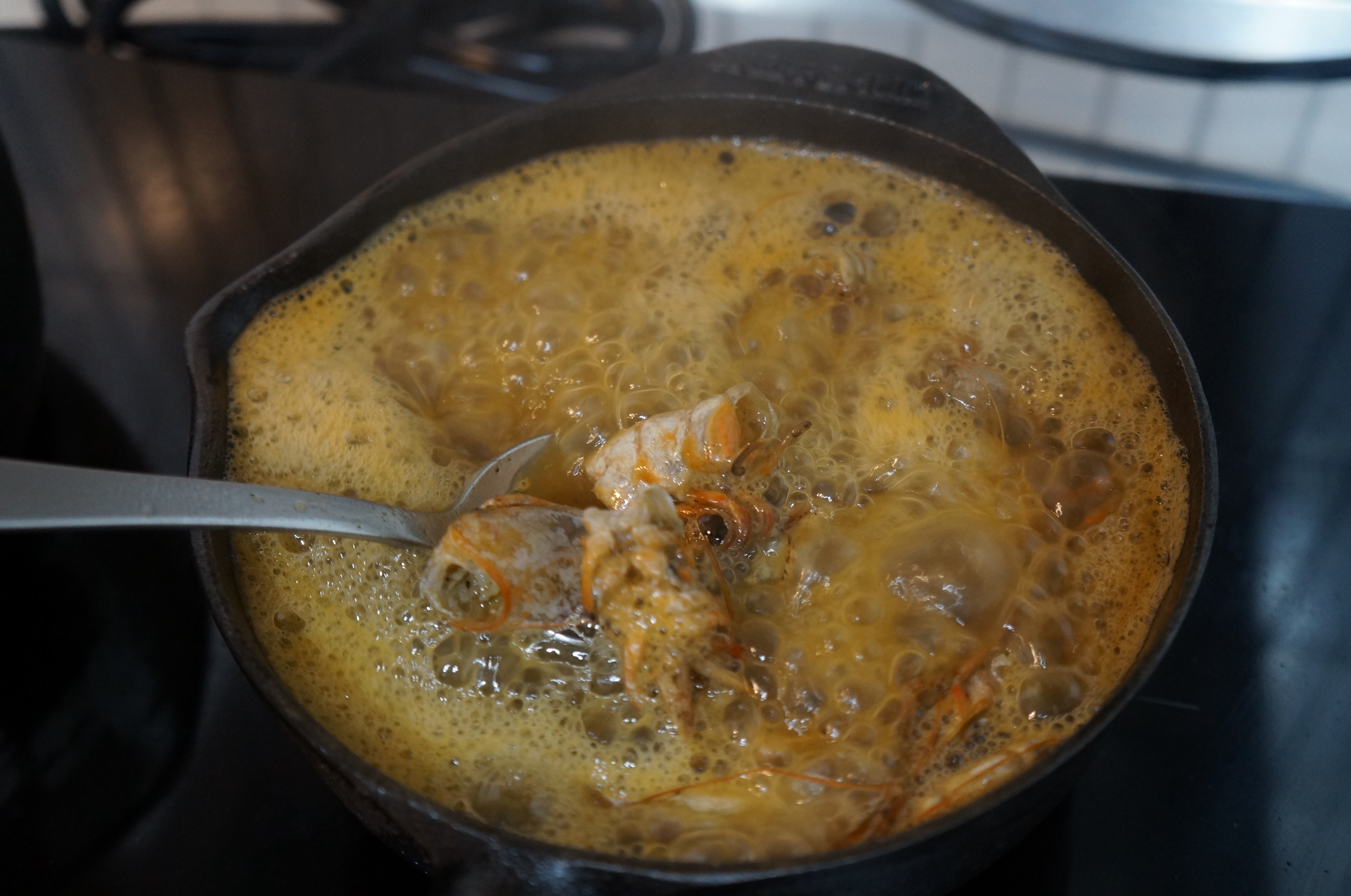 넘치려 하면 바람을 좀 불어주면 진정됨 새우 육수 궁물 완료!!