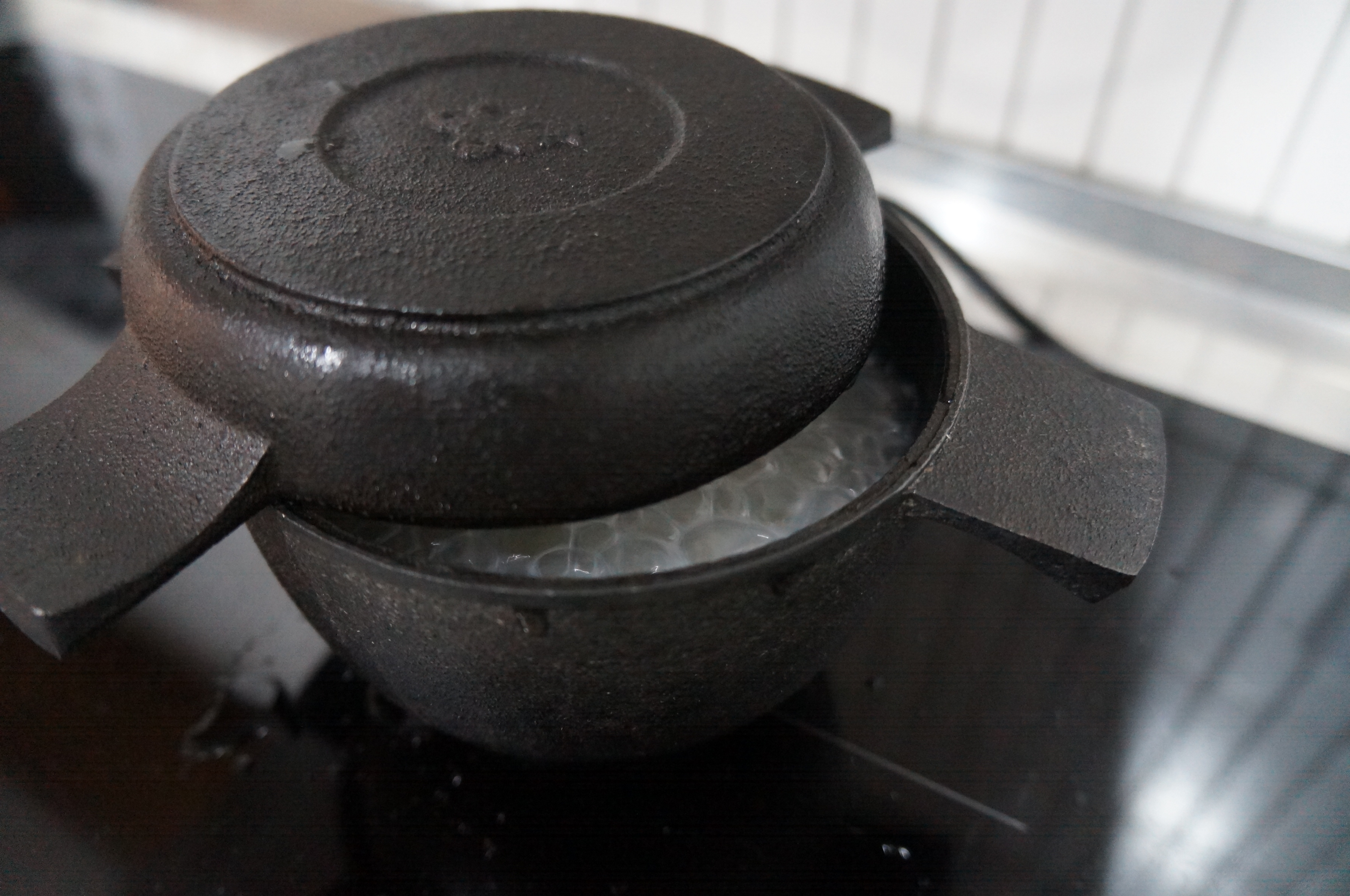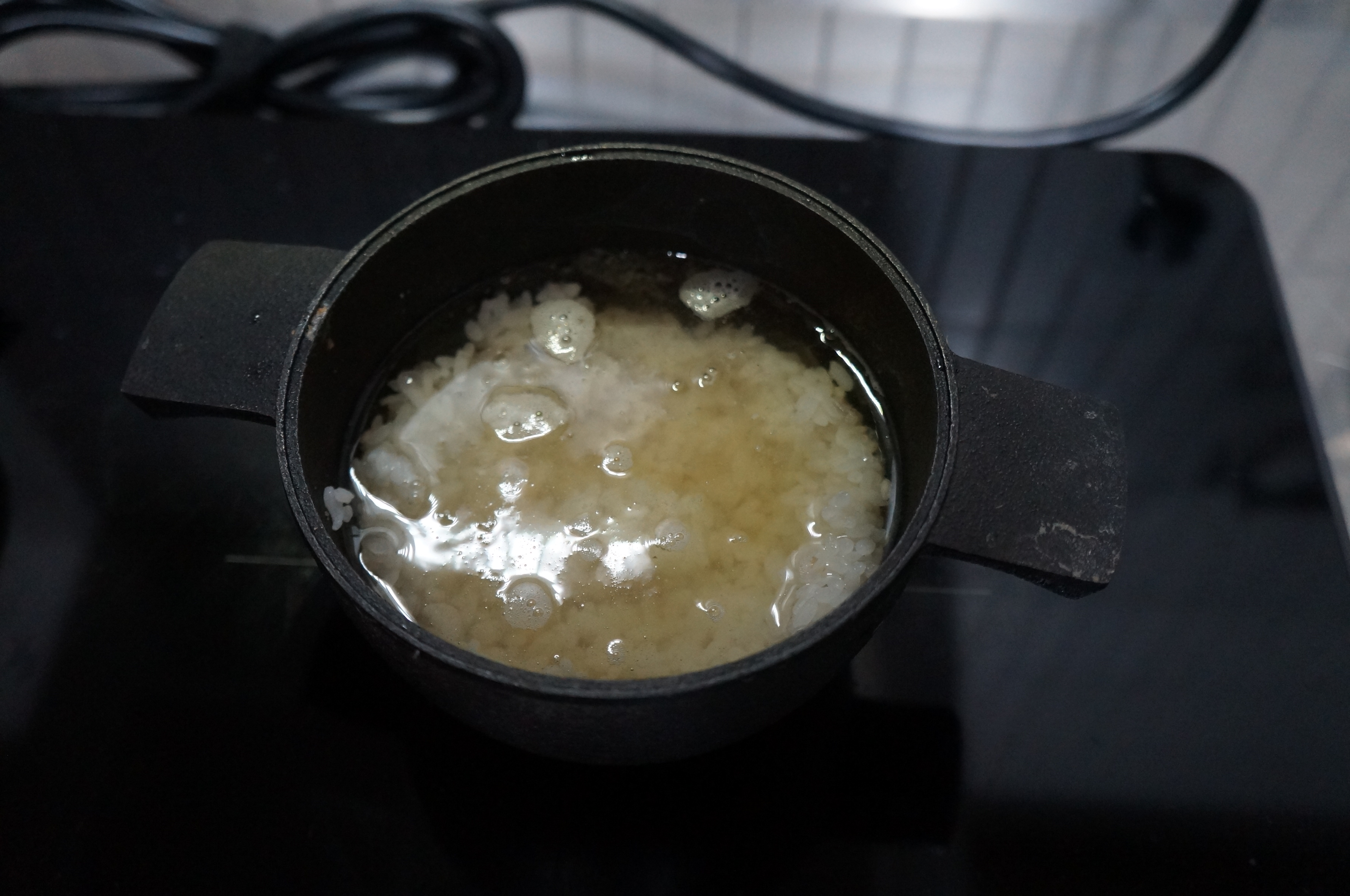 쌀을 넣고 살짝 뚜껑은 열어둔다