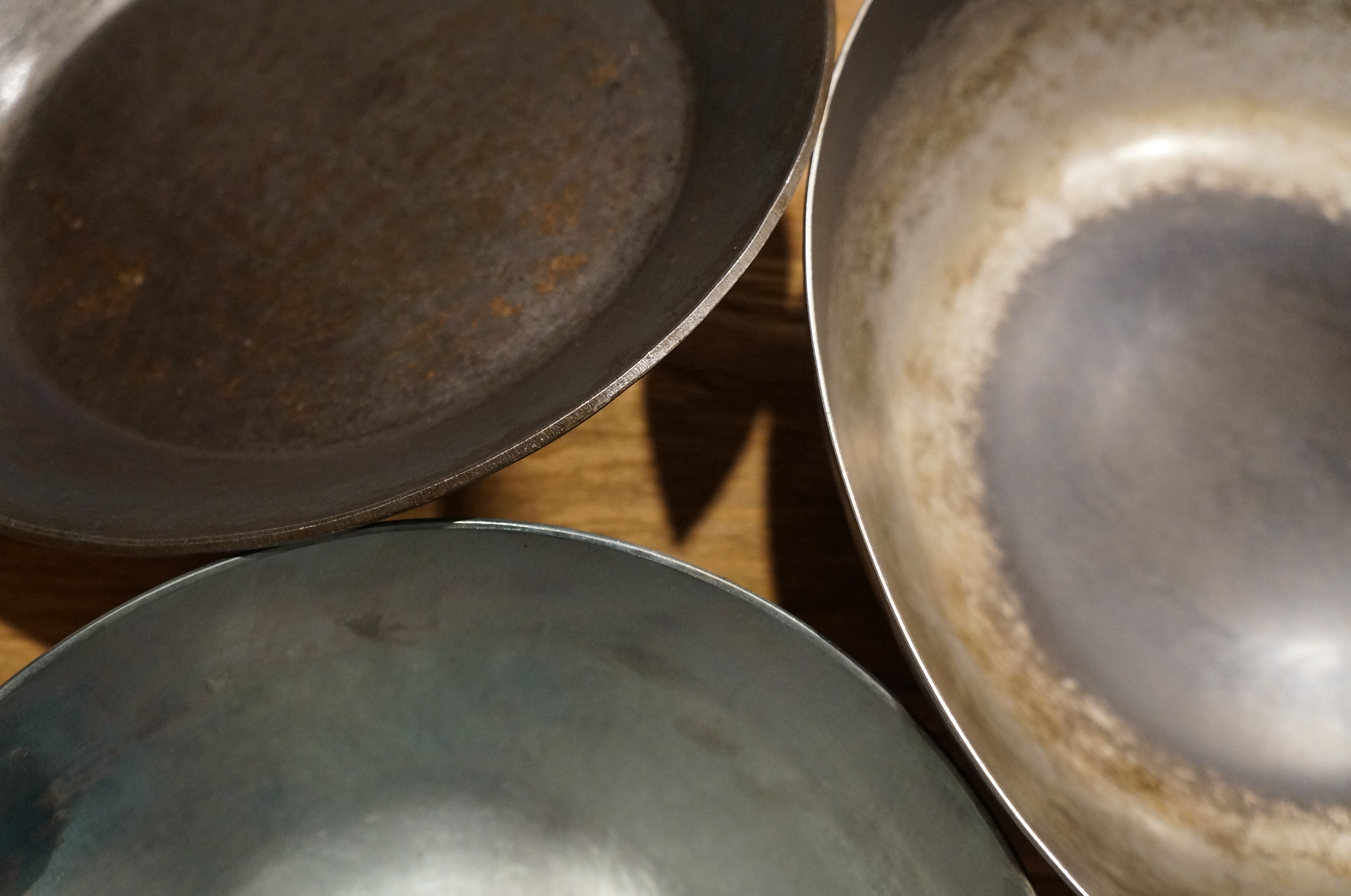 각 팬들을 한자리에 모아 봤다 독일과 일본 장인의 자존심.. ㅋㅋ 결론만 말하면 뭐가 더 좋다기보다 각각의 쓰임이 있는것 같다 특히 두께가 가장 큰 차이를 만들어 내는것 같다 (코팅팬은 잘