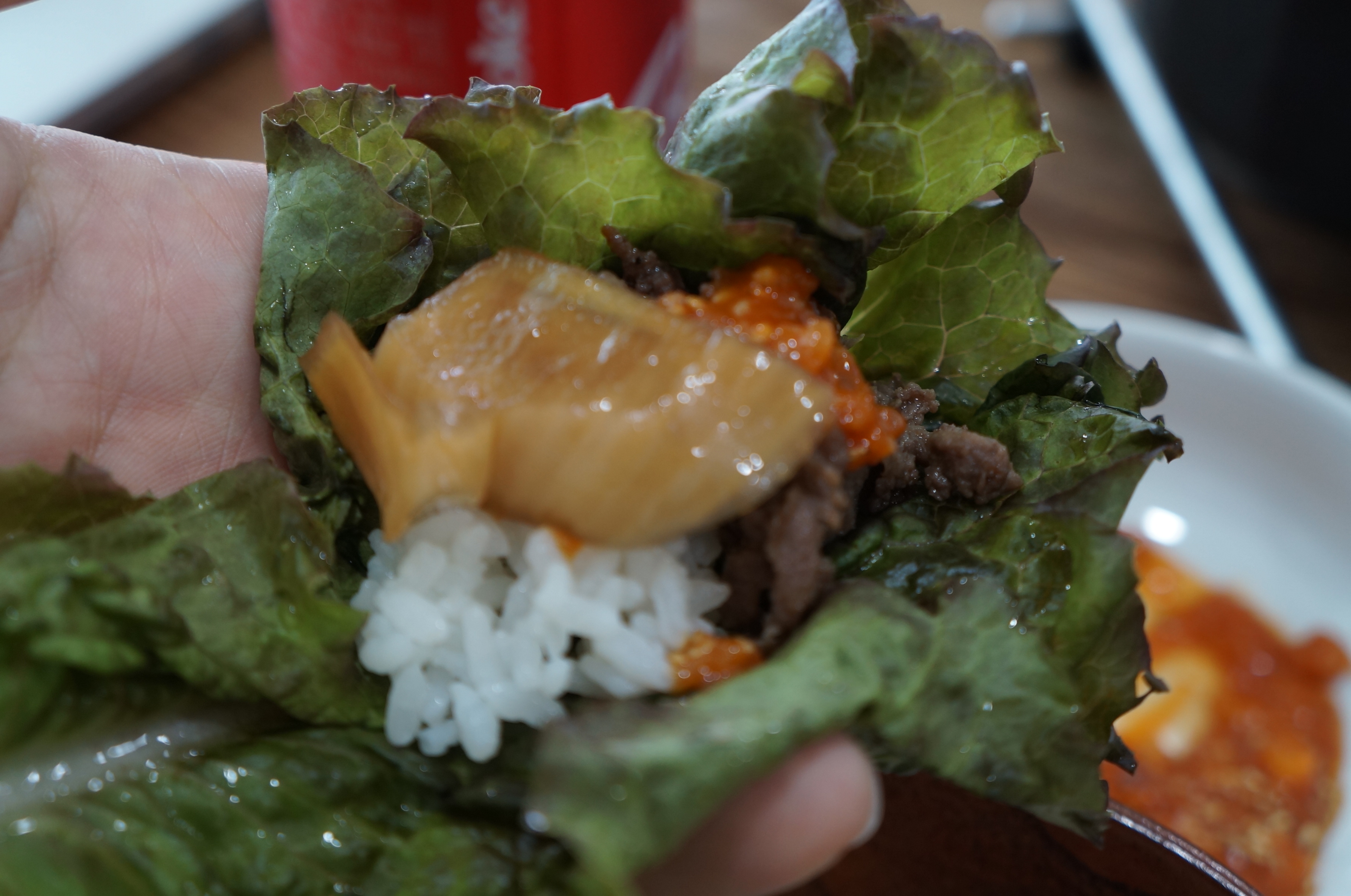 한숟갈 푹떠서 쌈에 싸서 한입~!