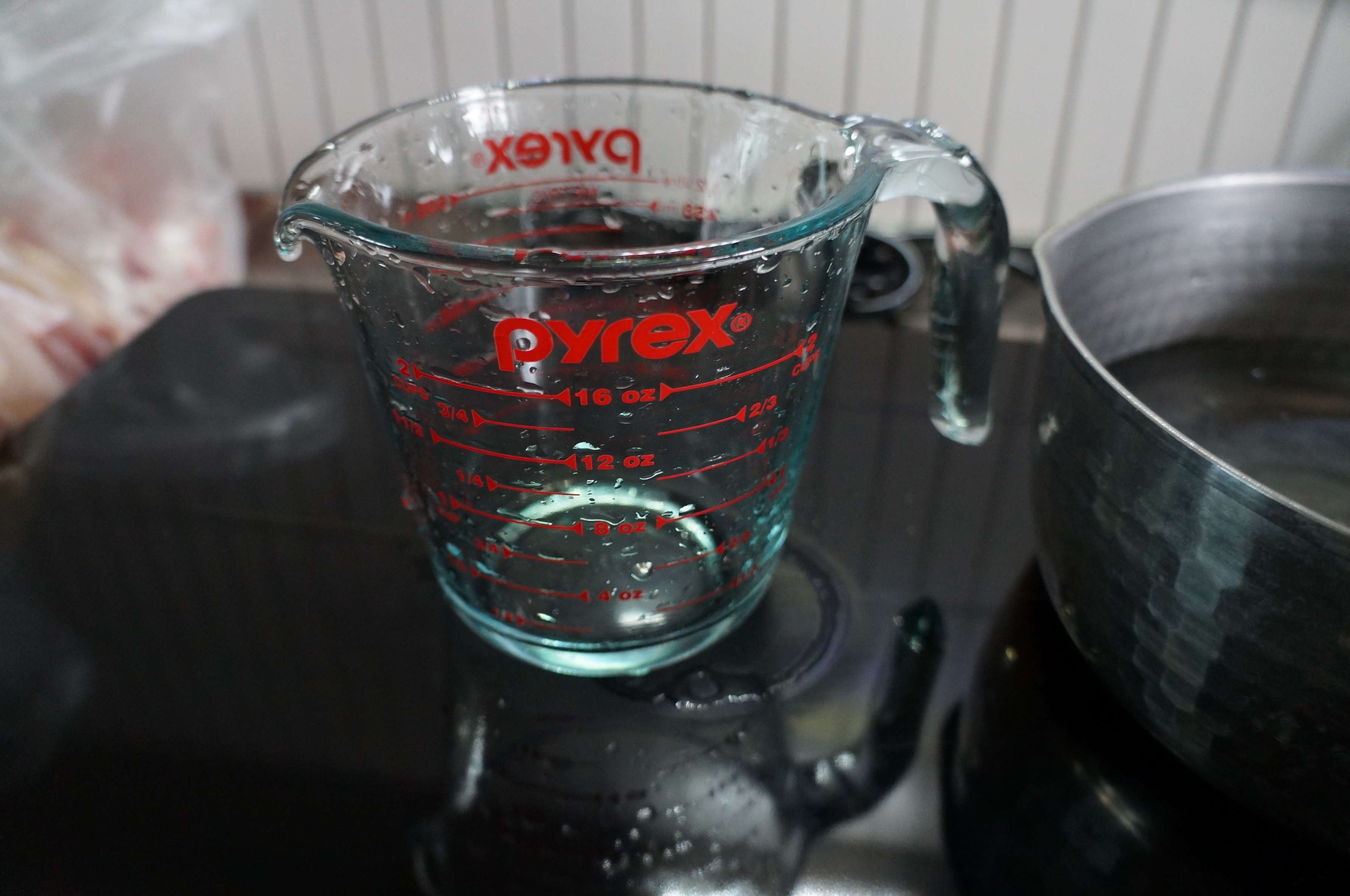 파이렉스 내열 유리잔에 물을 딱 맞춰주고