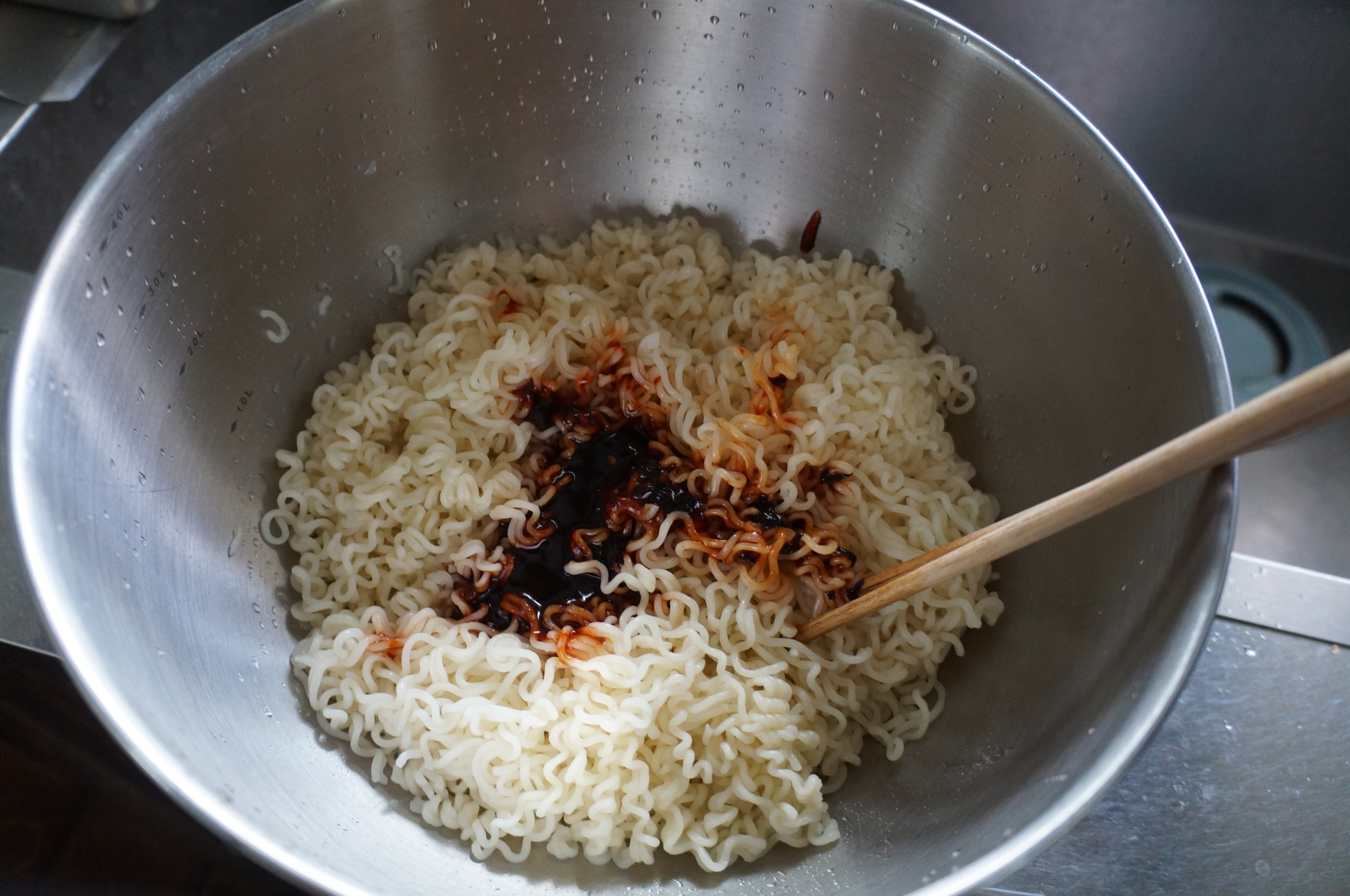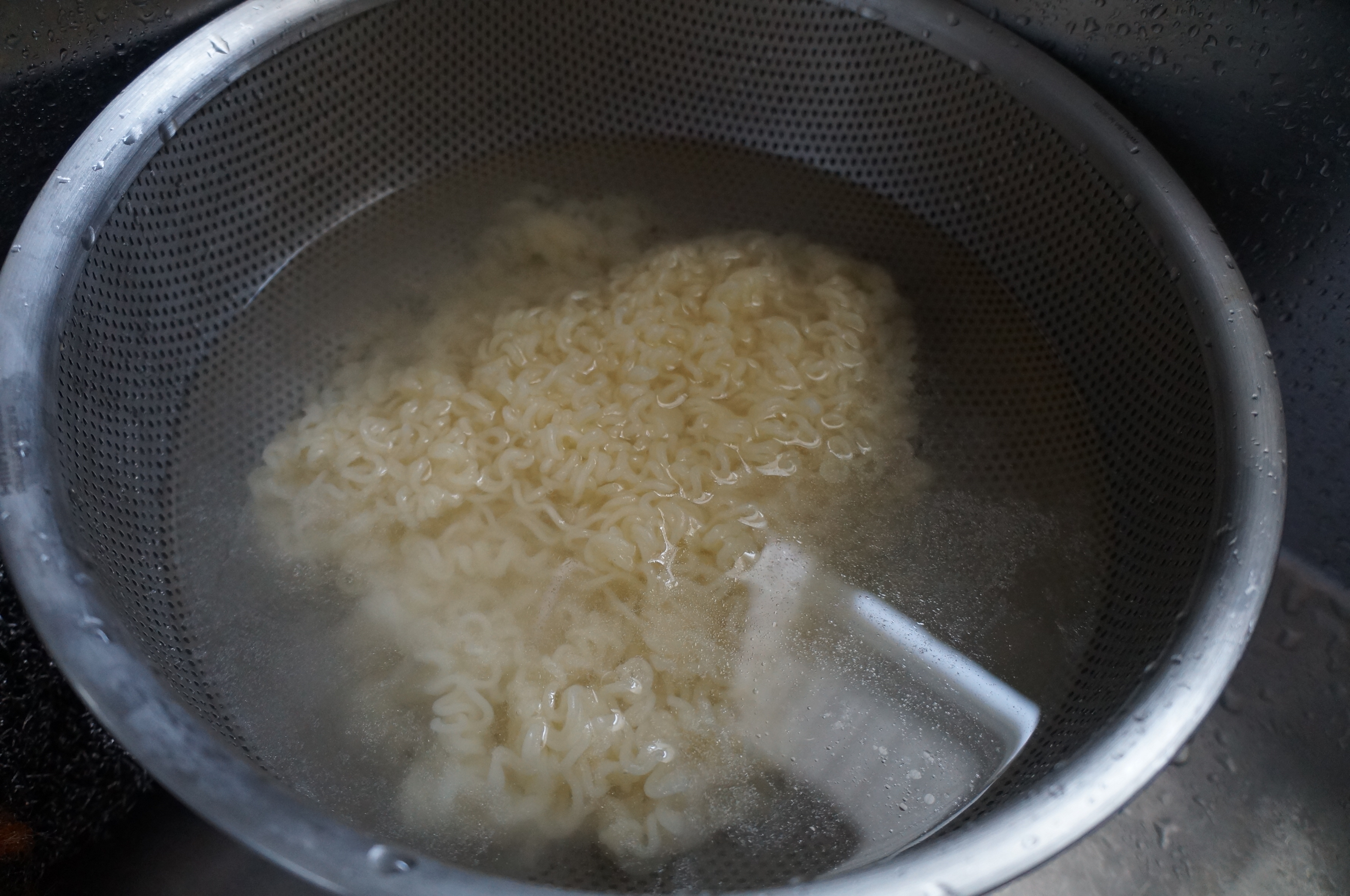 공기 마찰을 위해 면을 들었다 놨다 해가며 면의 공기접촉을 해주고 찬물을 미리 받아놓았다가 냉수 마찰을 해주면 더욱 쫄깃한 면이 되더라!