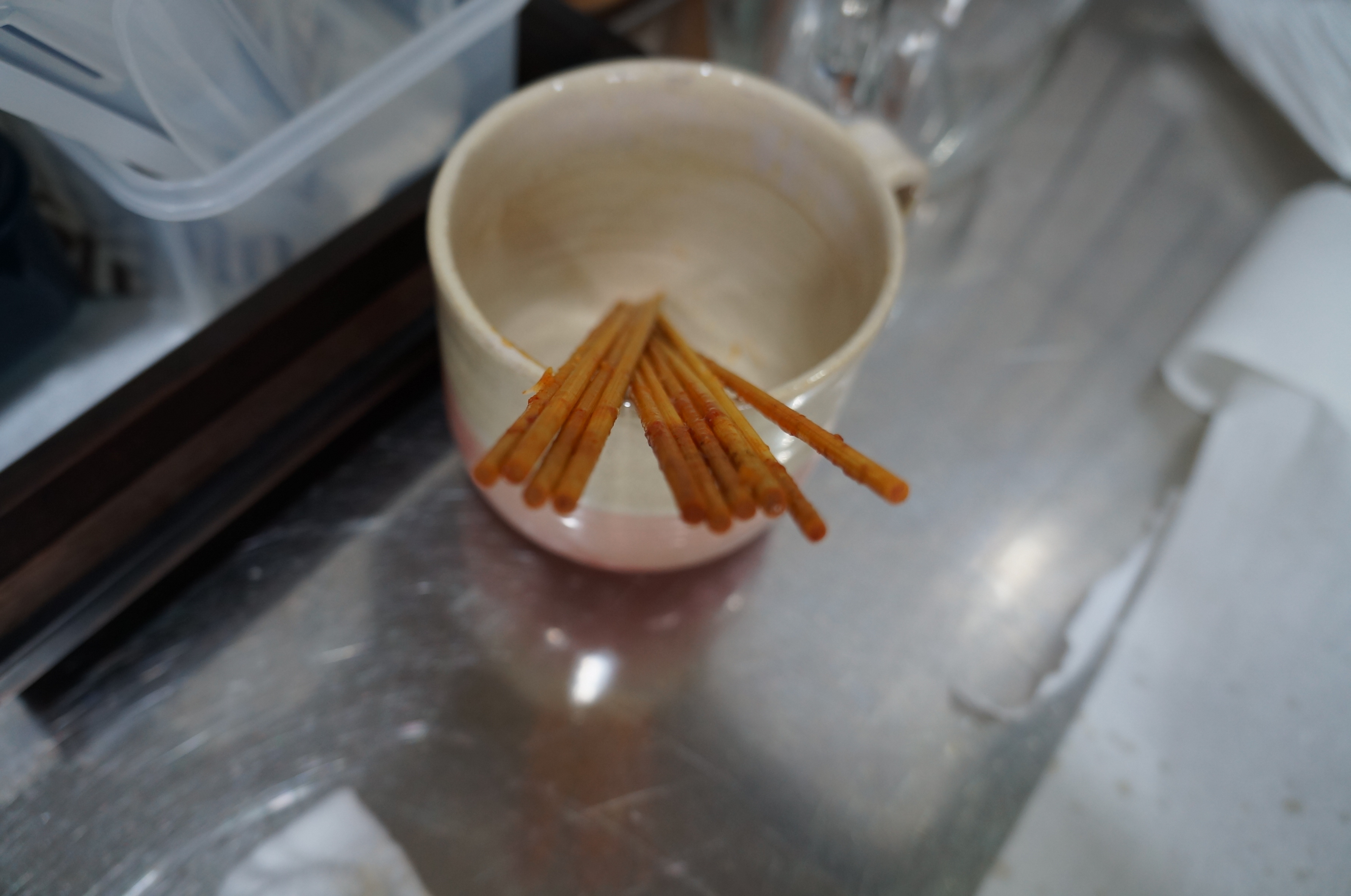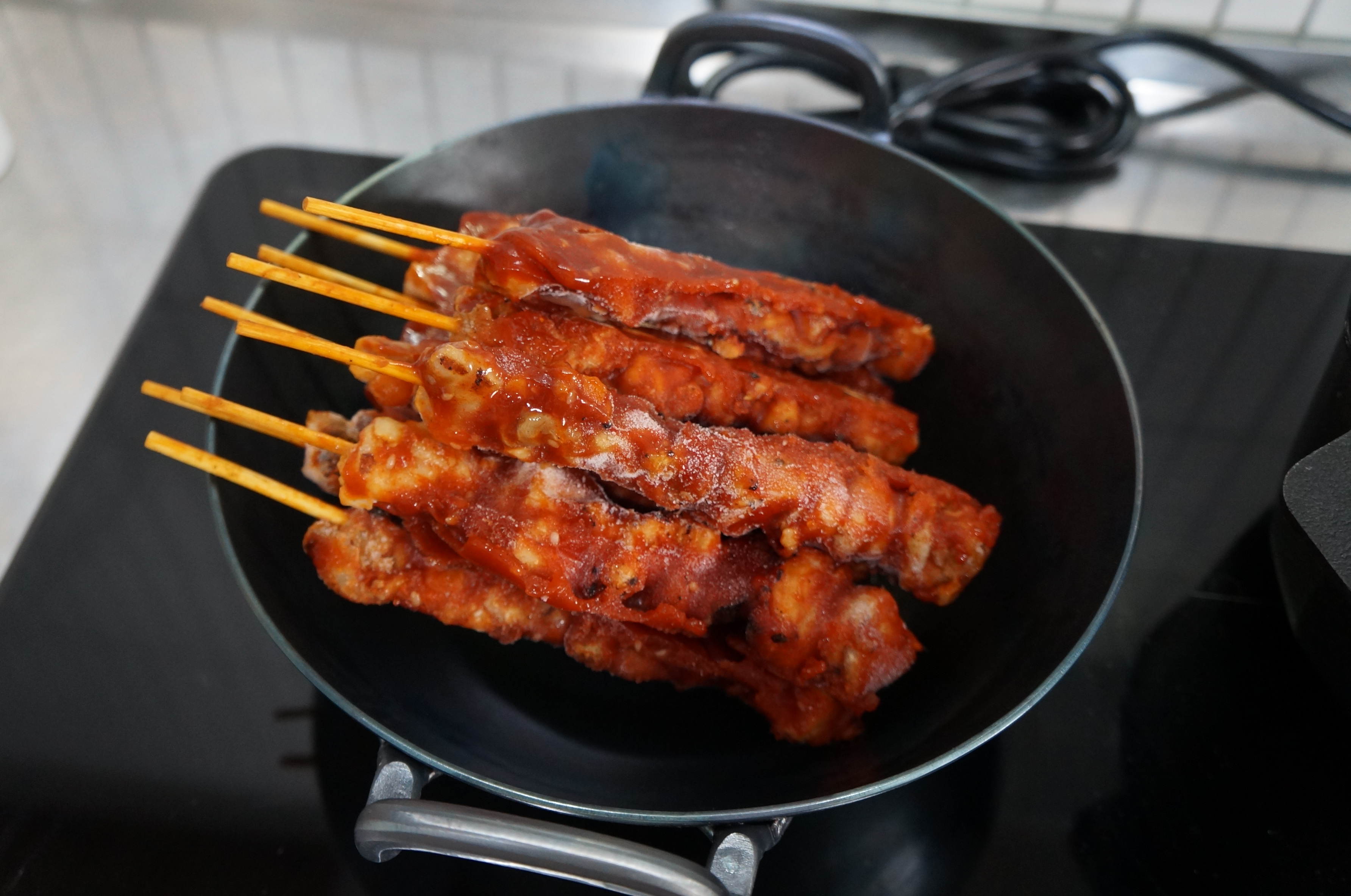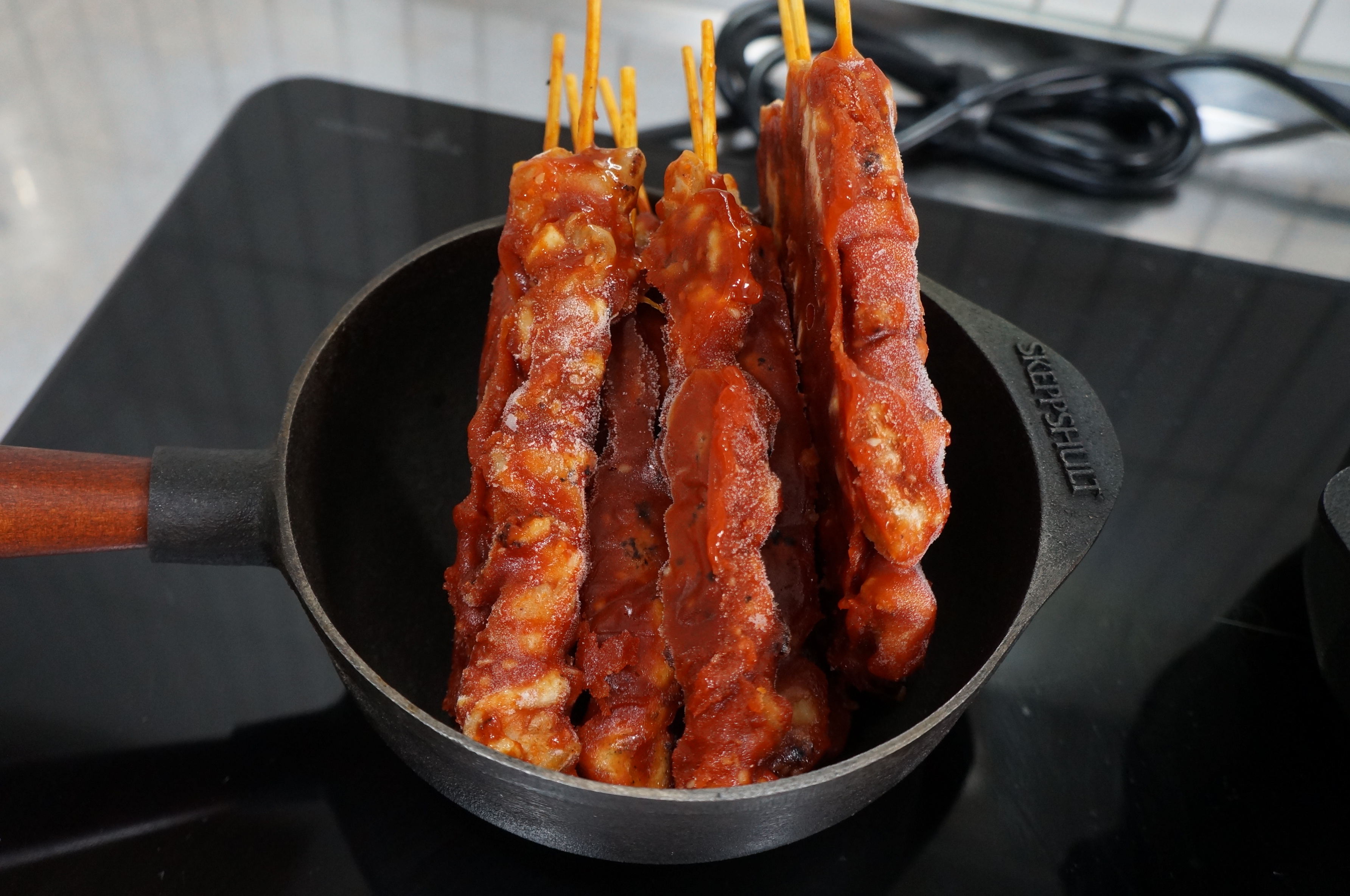 아지네 튀김팬에 하는 노브랜드 꼬지