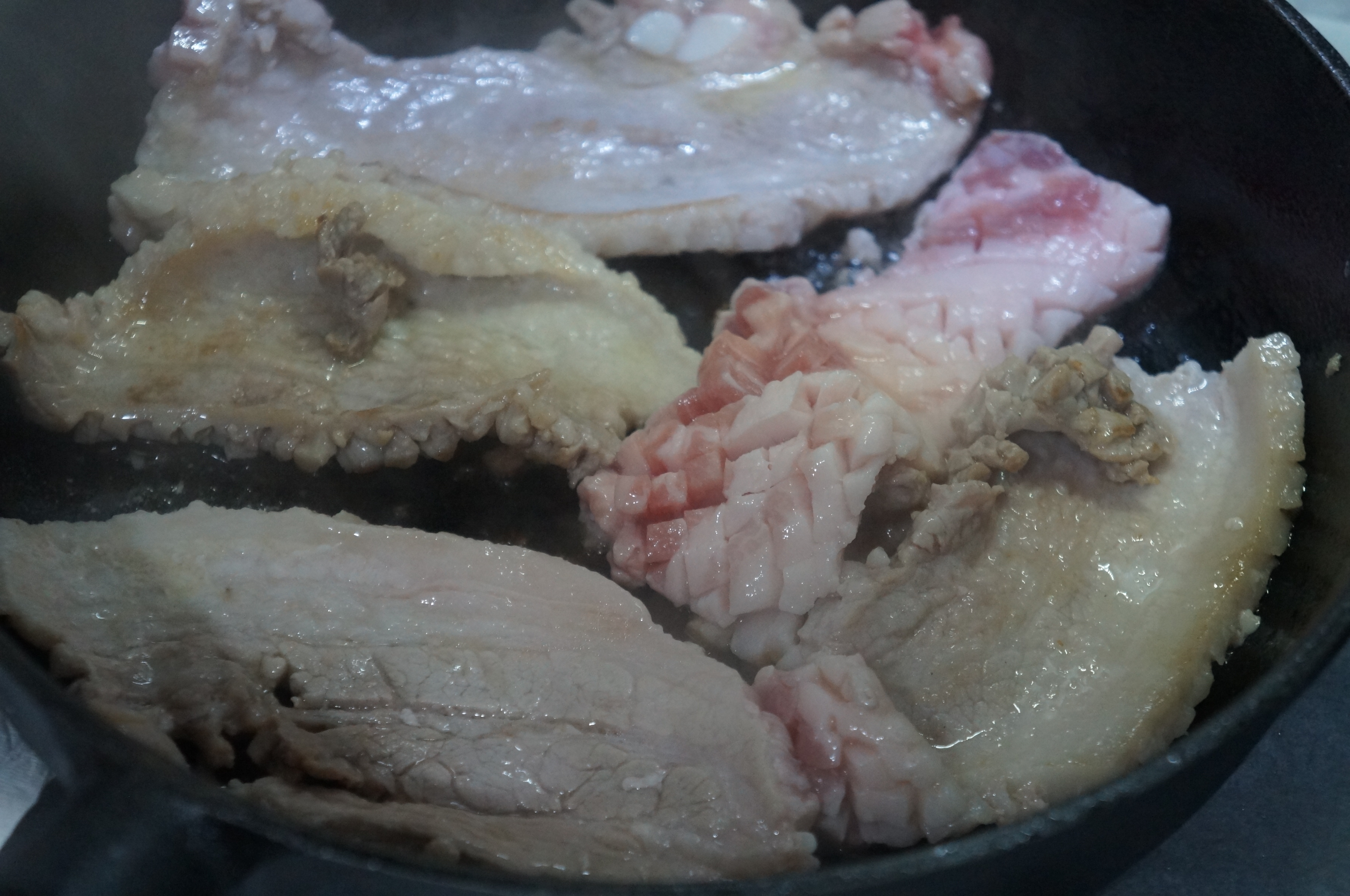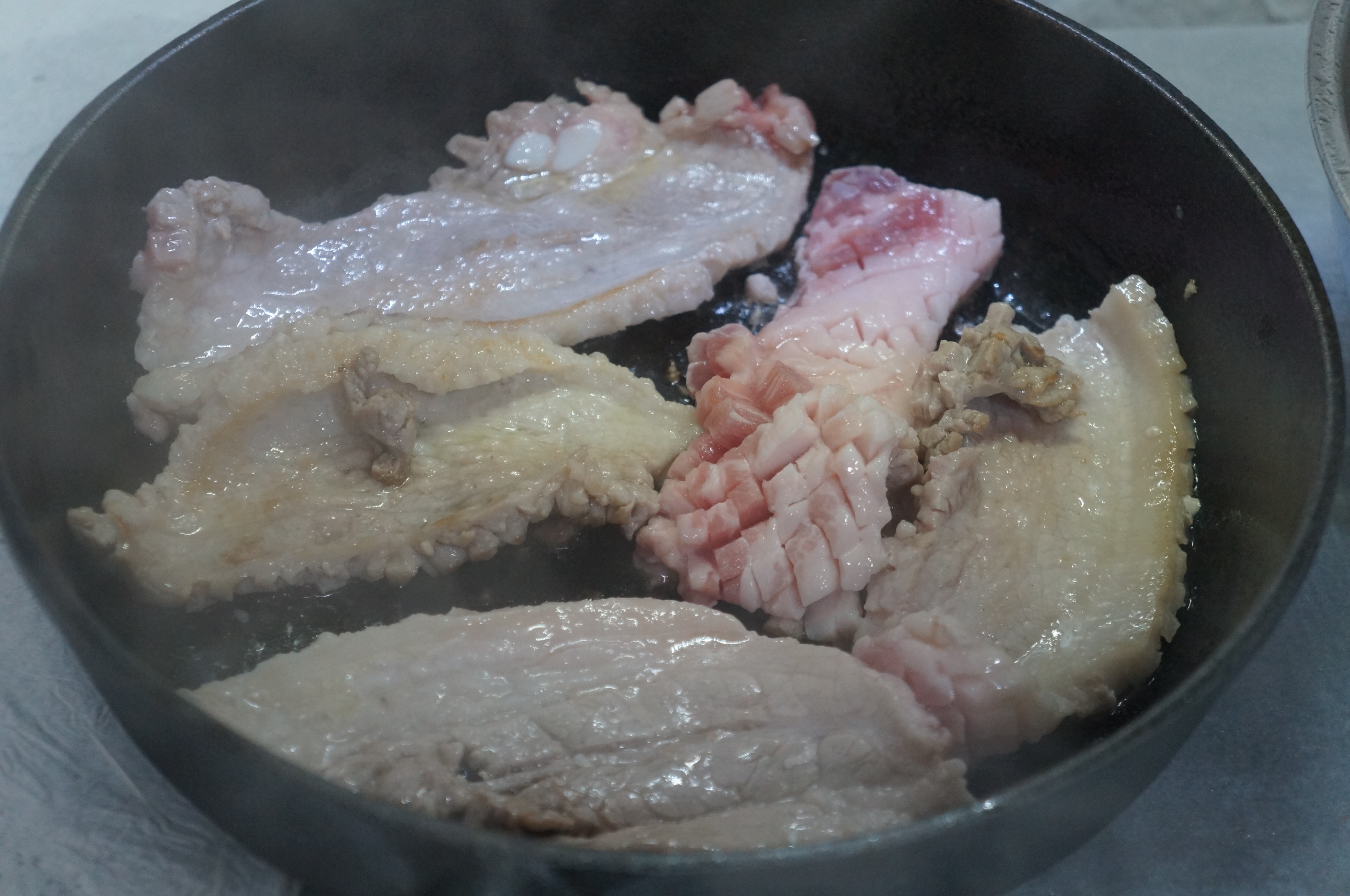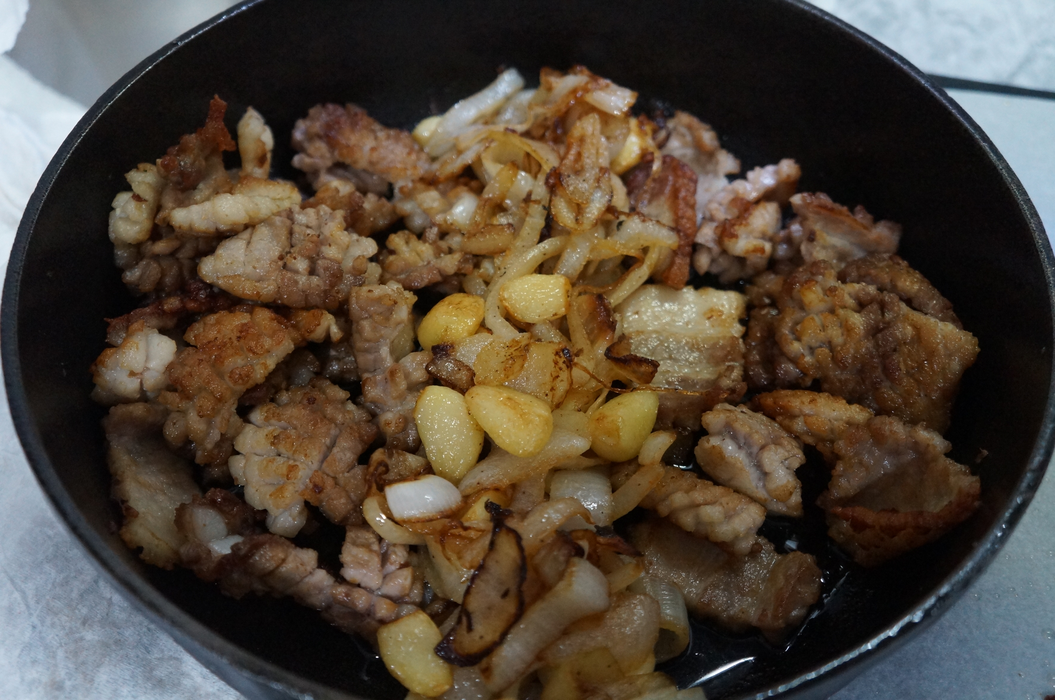 좌 스켑슐트 / 우 스댕 그리고 양파 마늘을 돼지기름에 촵촵 구어주고..
