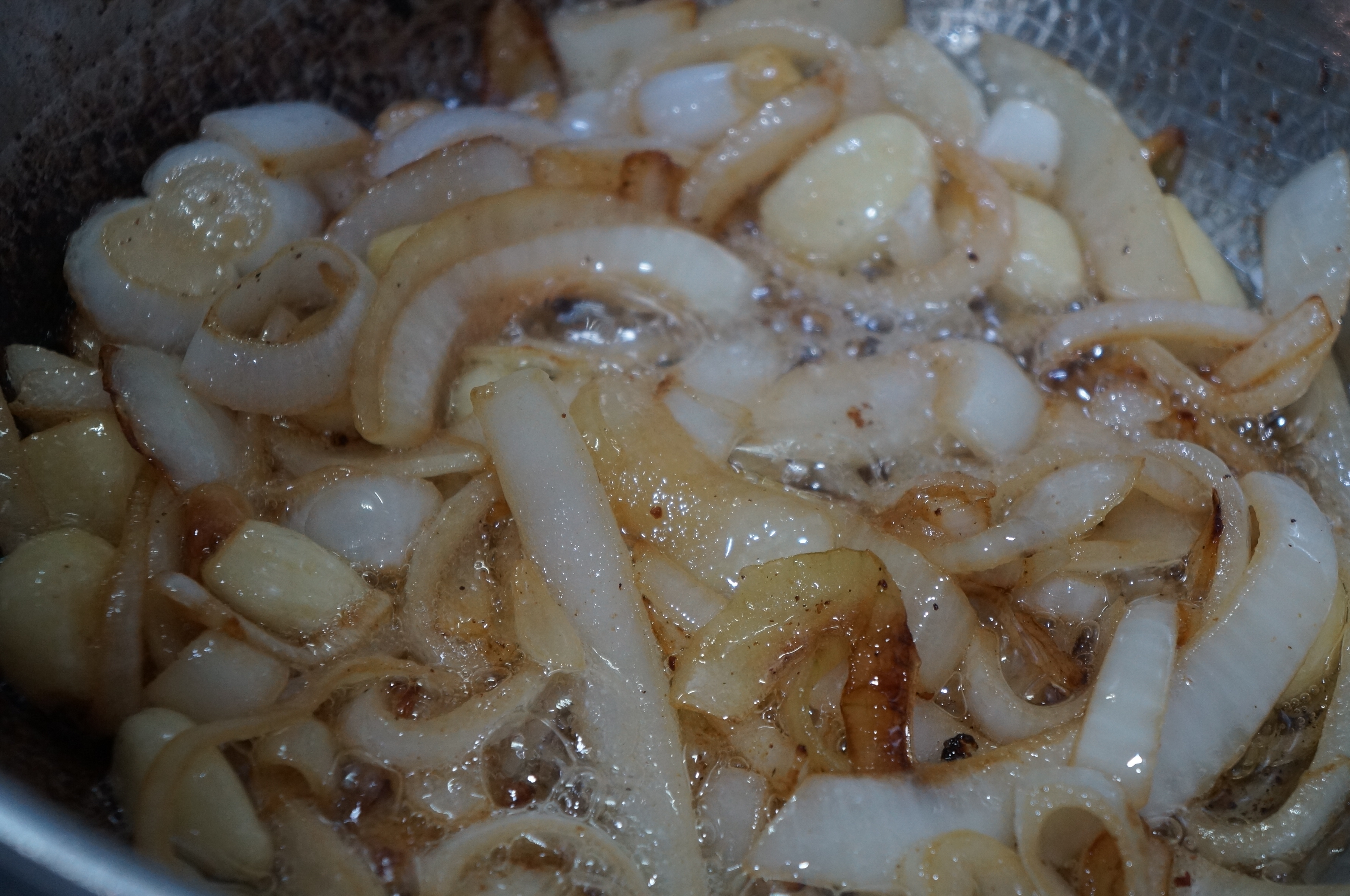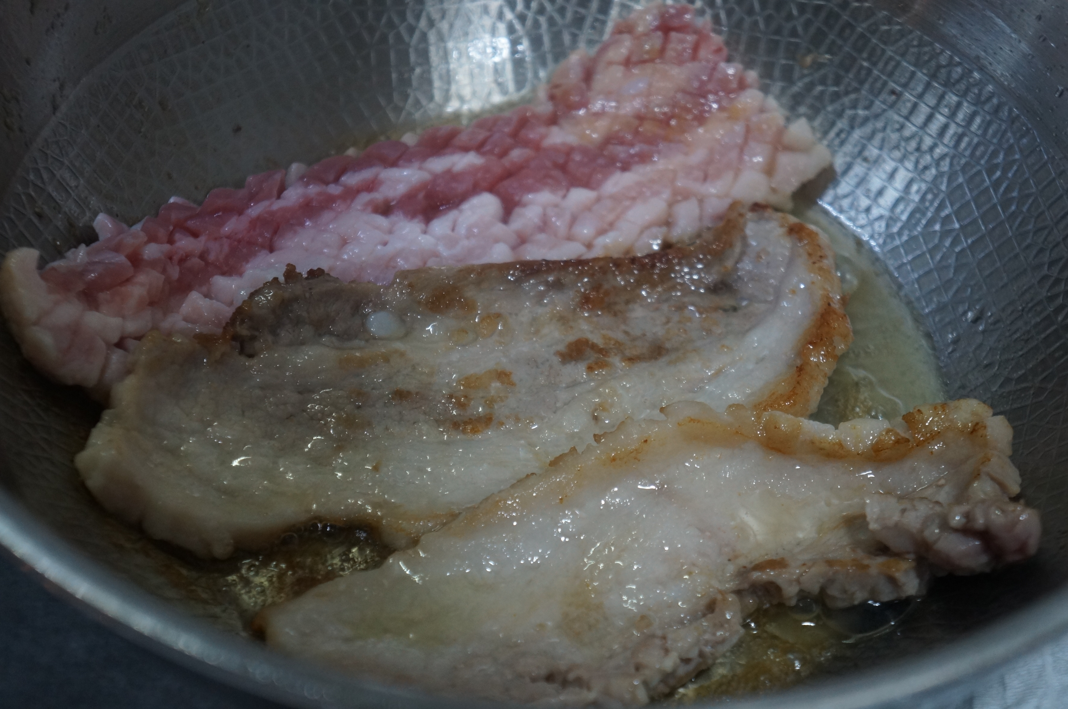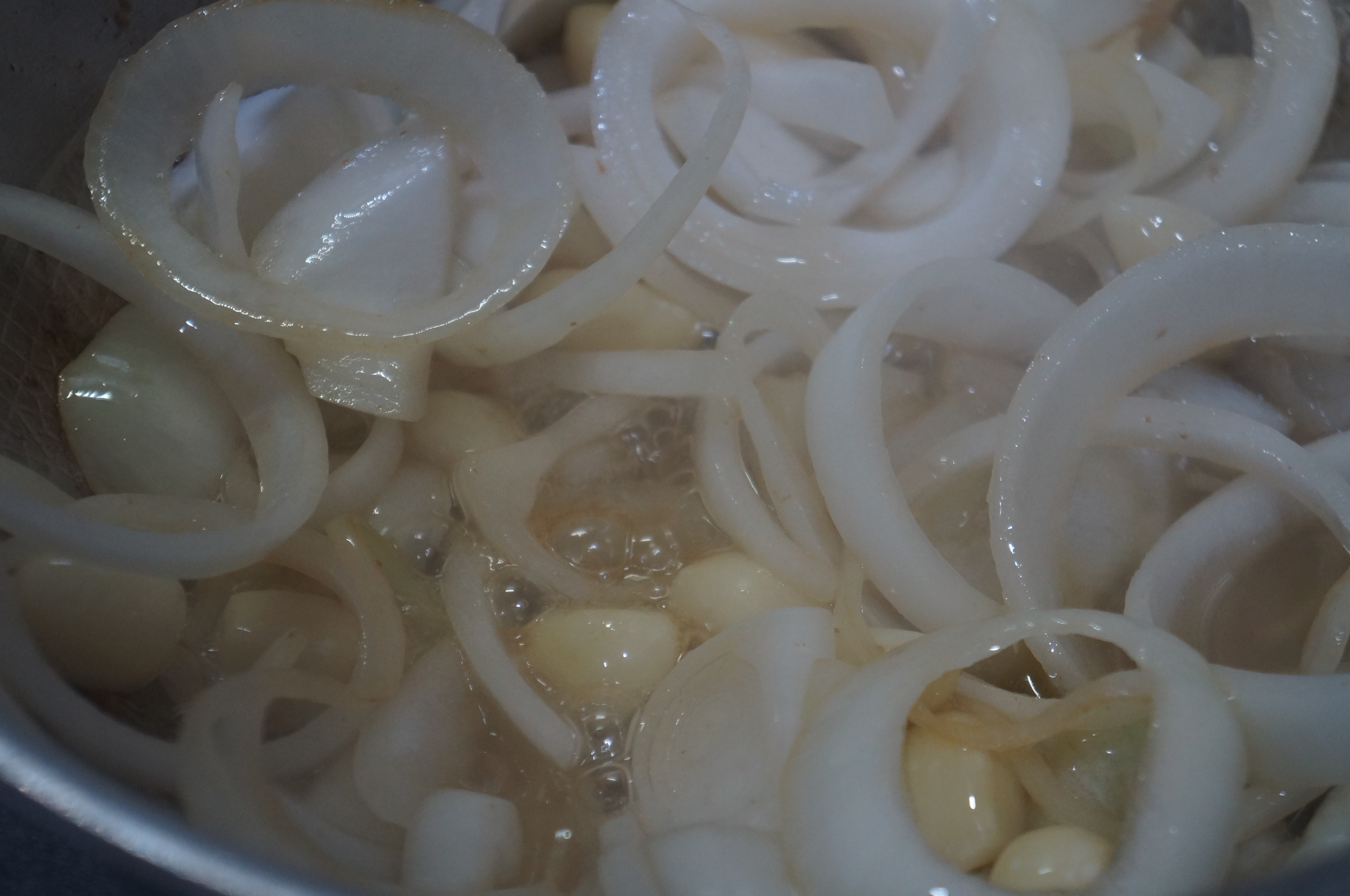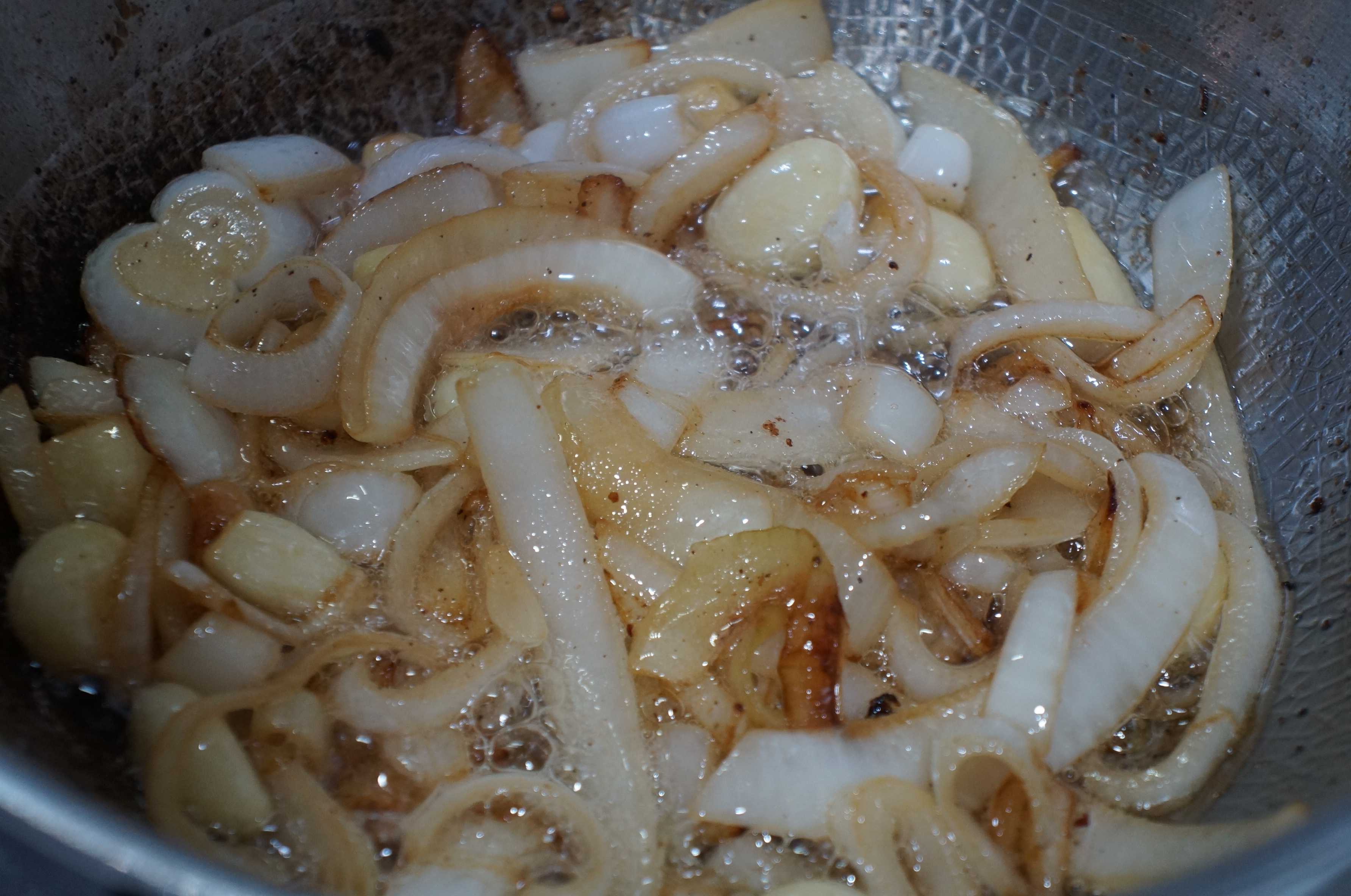 좌 스켑슐트 / 우 스댕 그리고 양파 마늘을 돼지기름에 촵촵 구어주고..