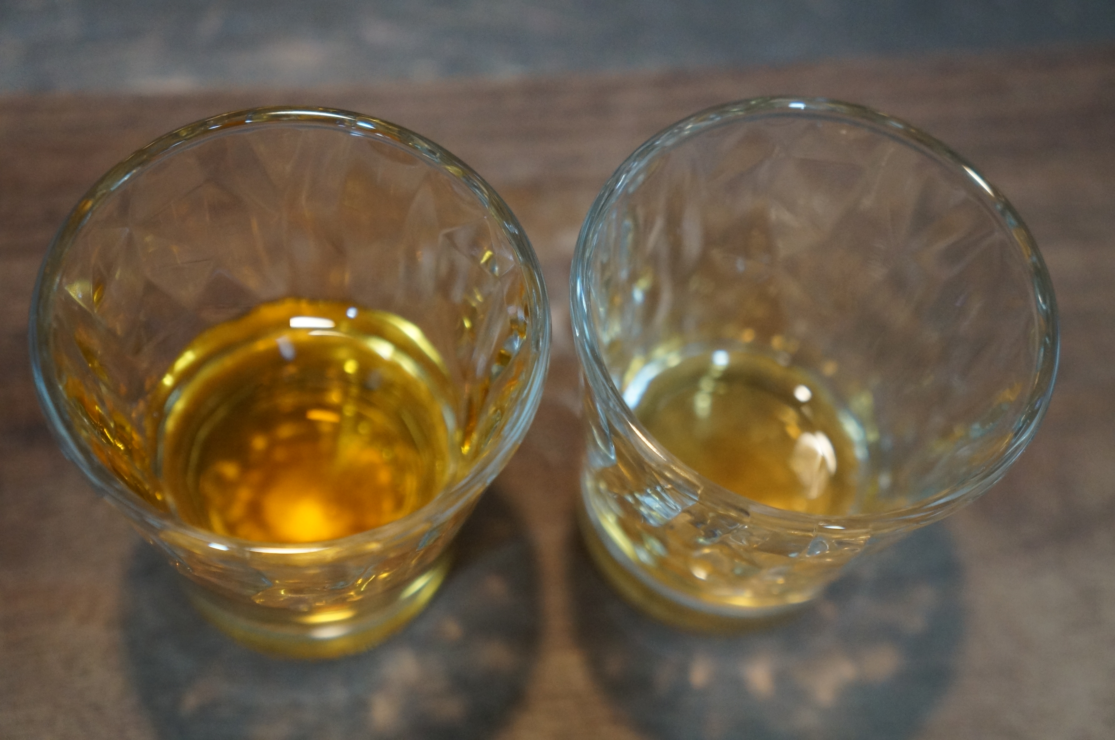 좌 12년 산 / 우 버번 7 년 산 버번색상이 이렇게 연하지 않은데…