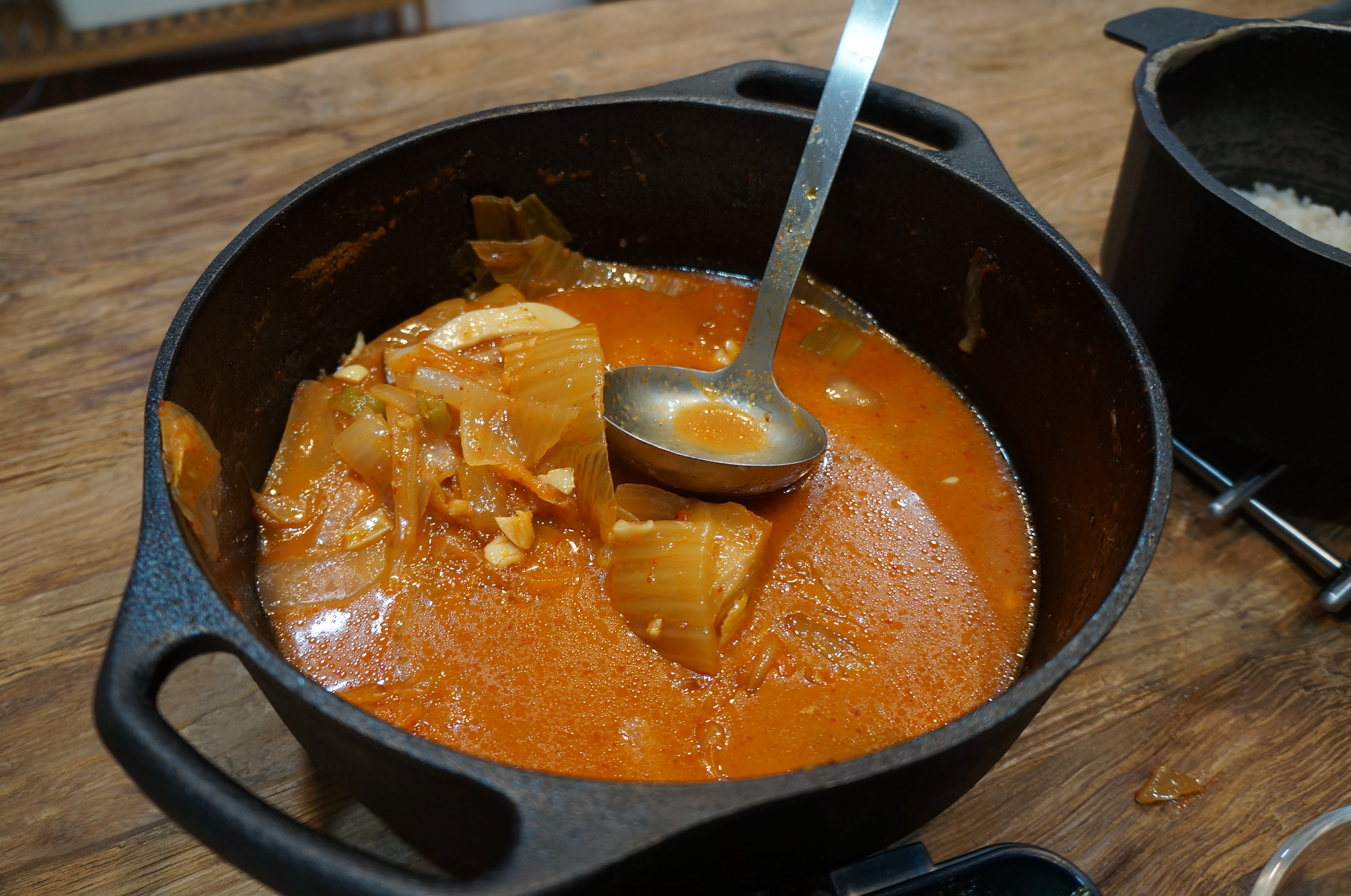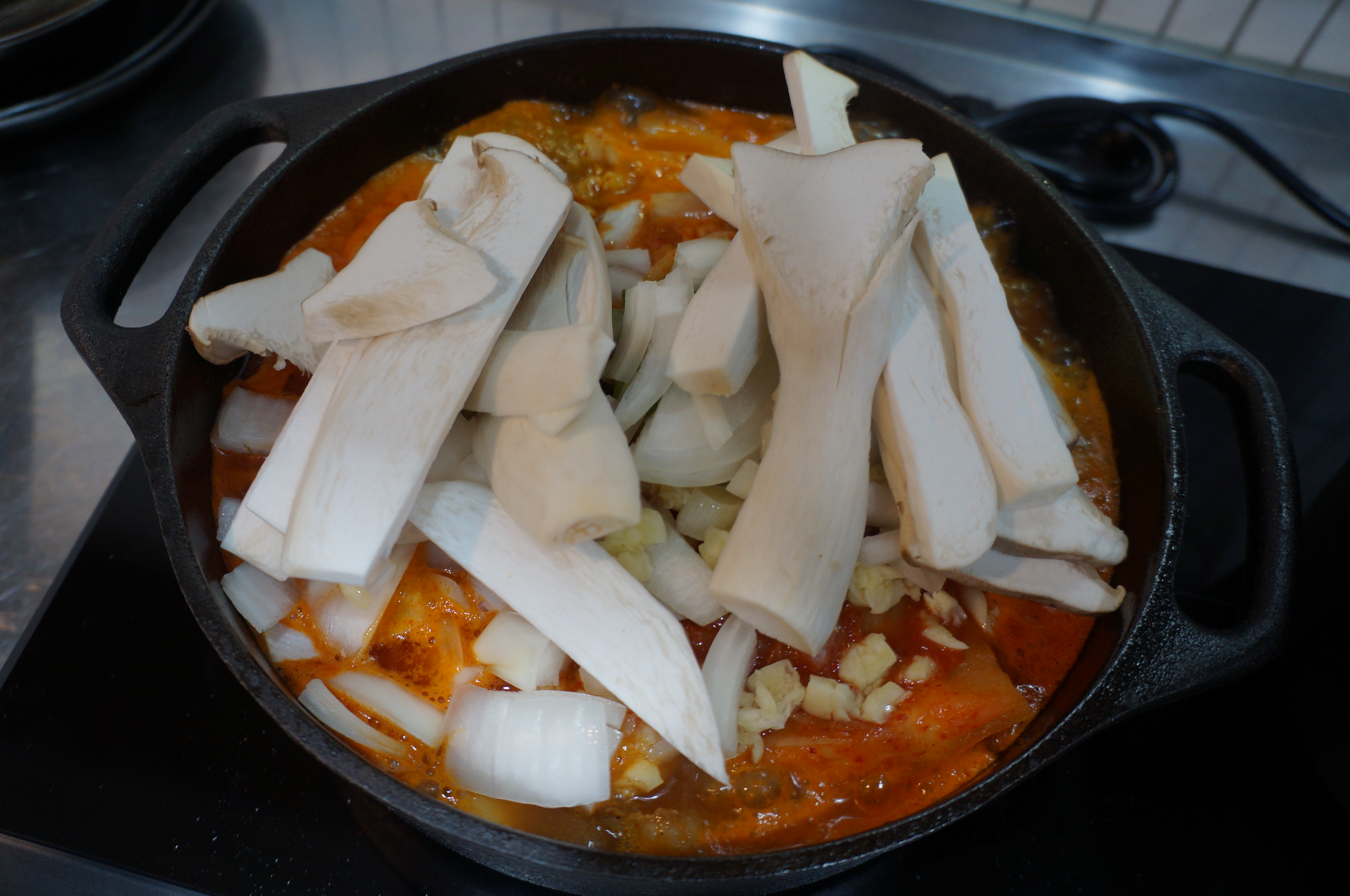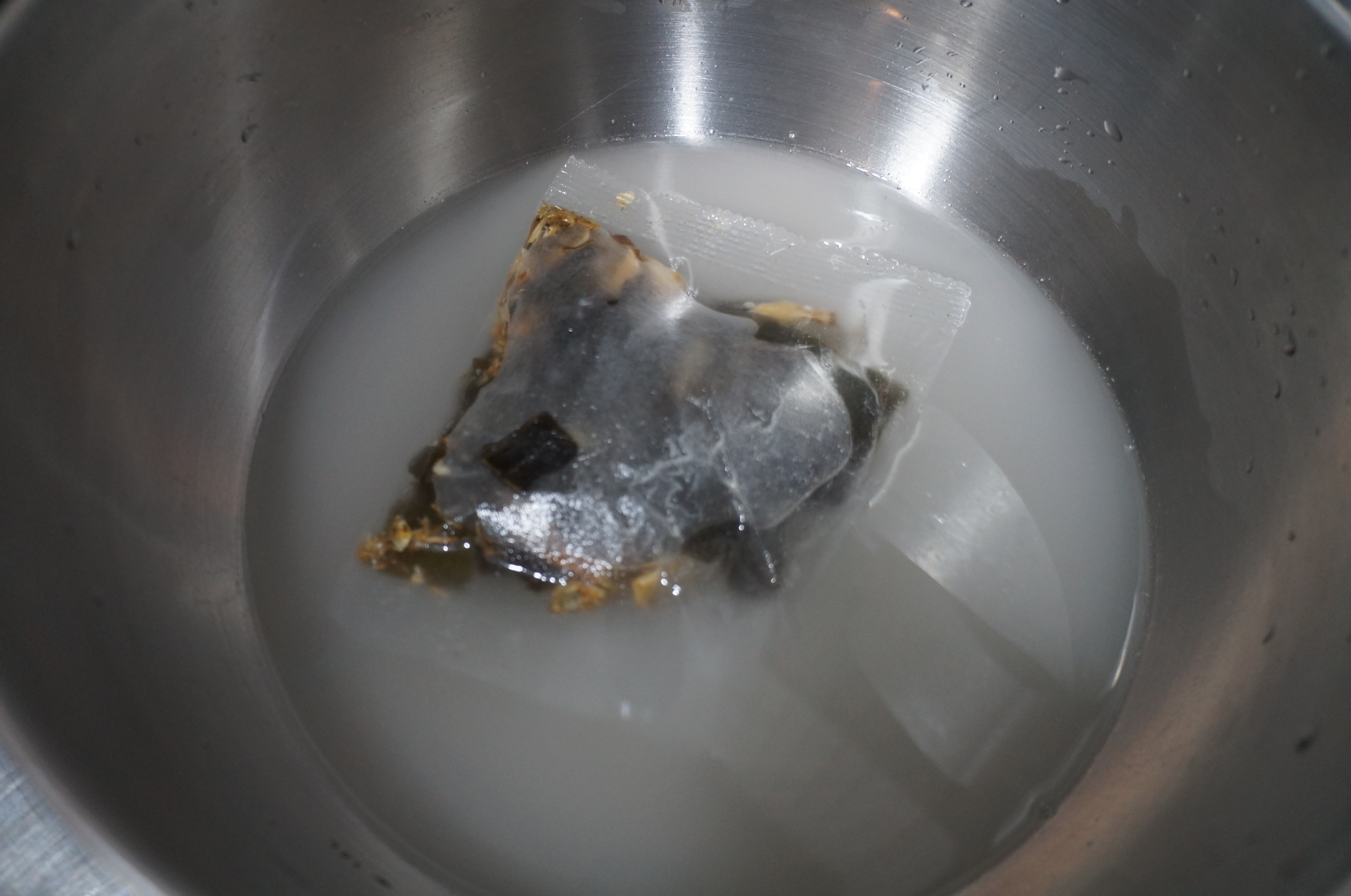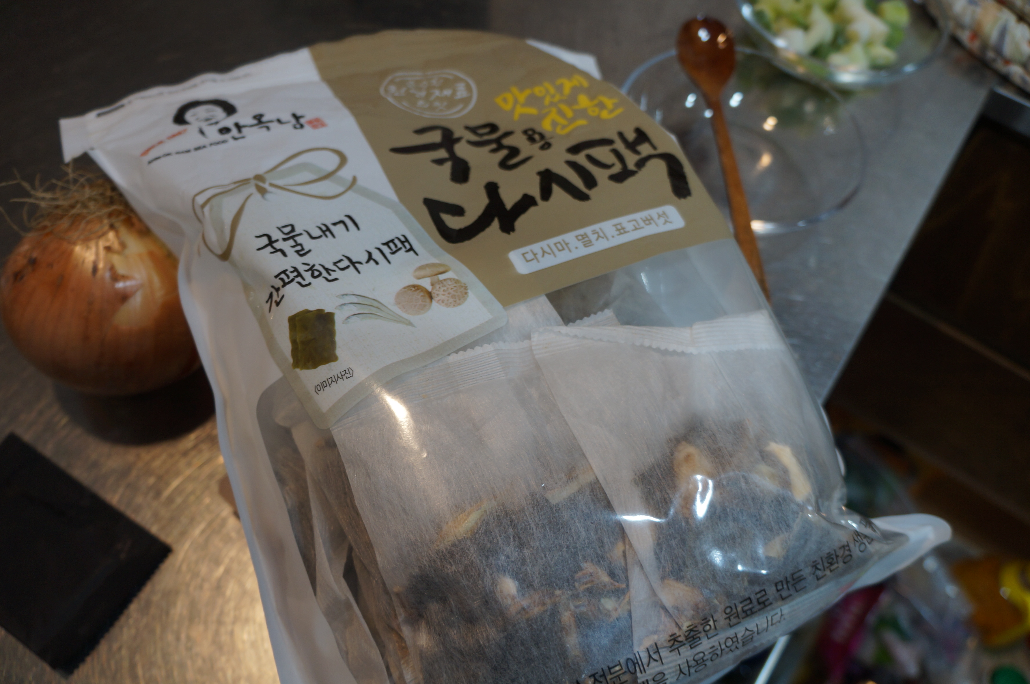 밥을 먼저 올려주고 -다시팩은 안옥남 국물요리 다시팩-