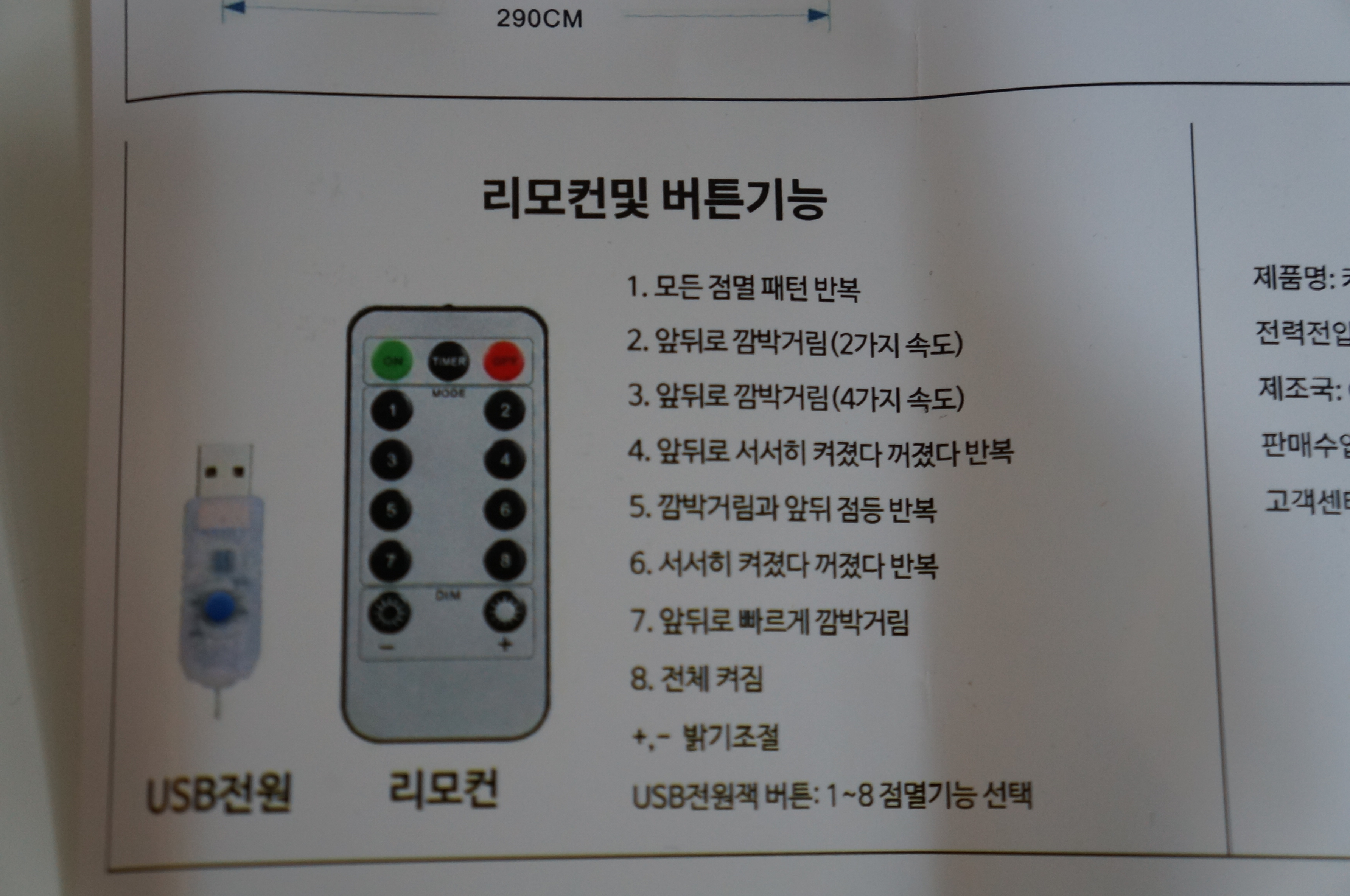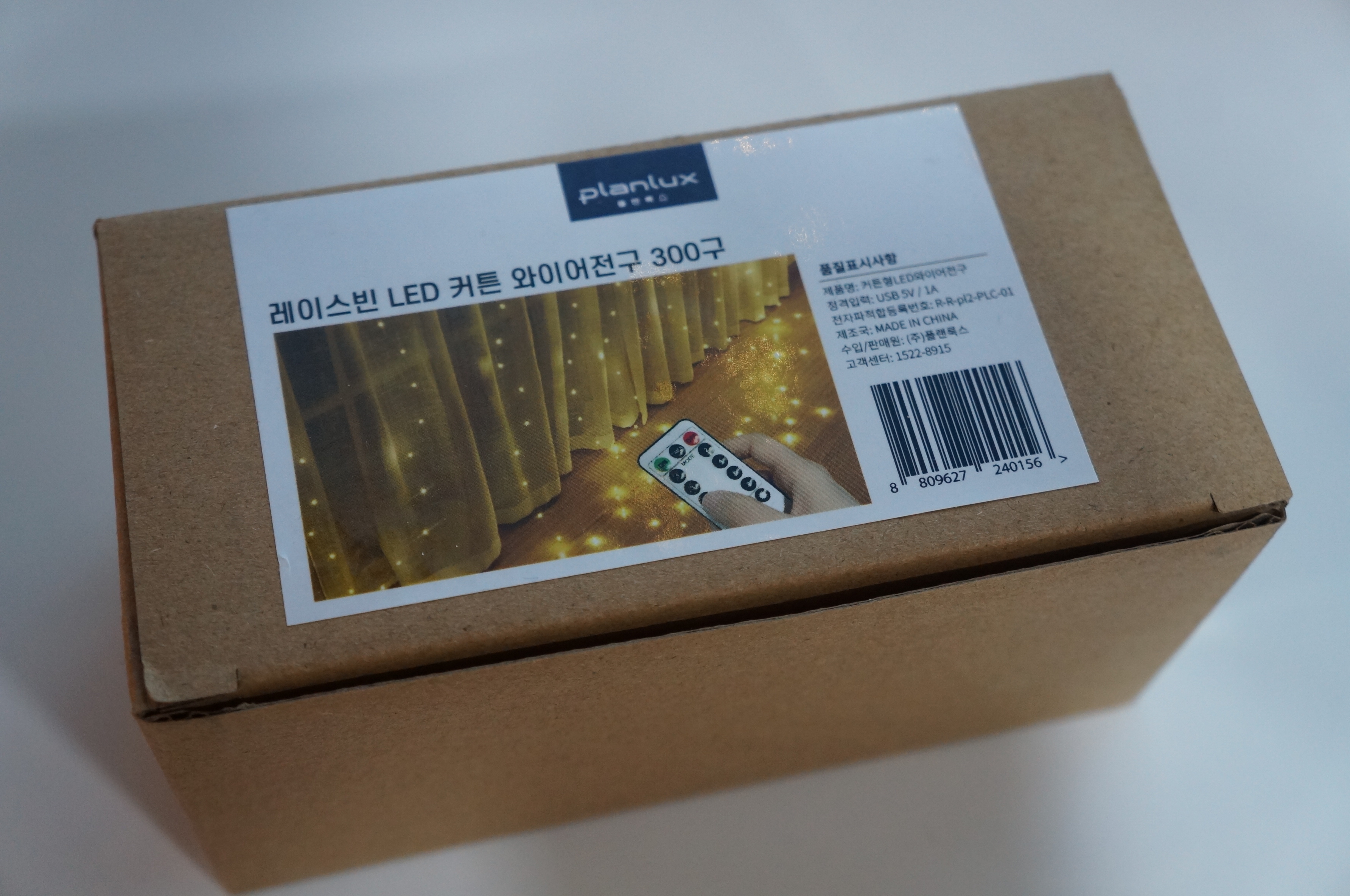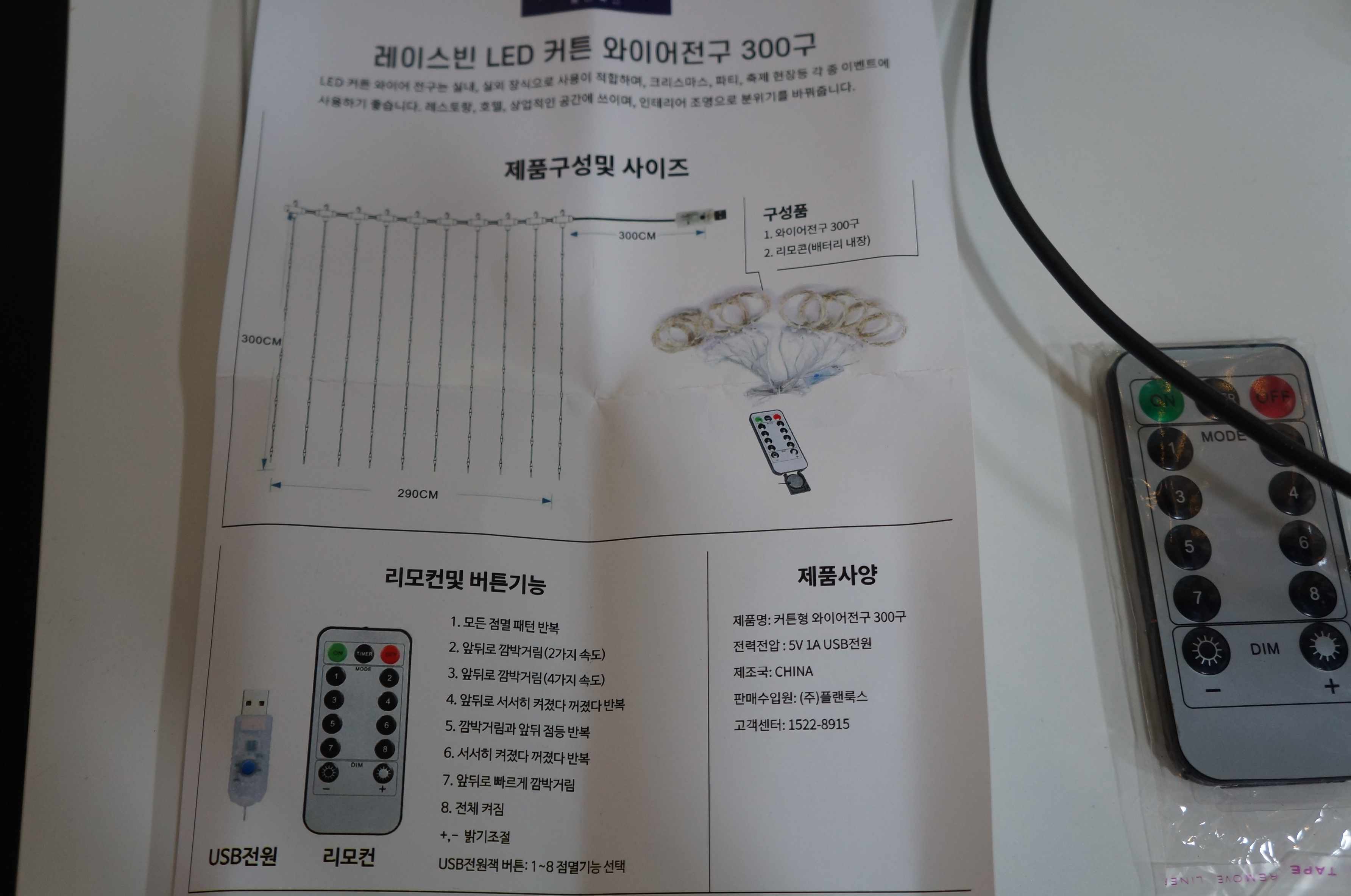 삼빡하게 포장되어 있다 LED 와이어전구 USB + 리모컨 커튼형 300구 3 x 3 m