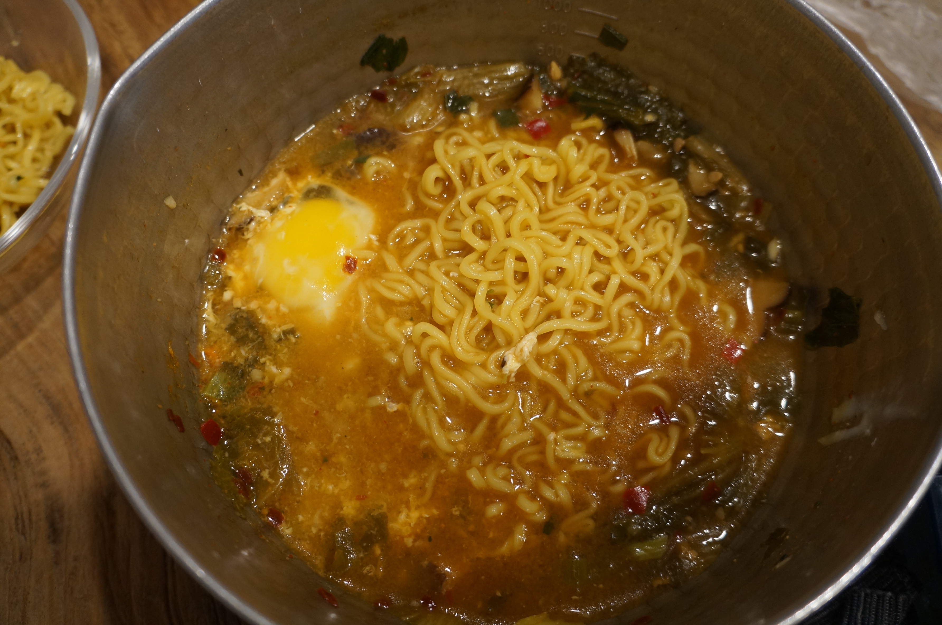 신라면 - 건면의 스프를 넣고 크러쉬드 레드페퍼를 넣어준다