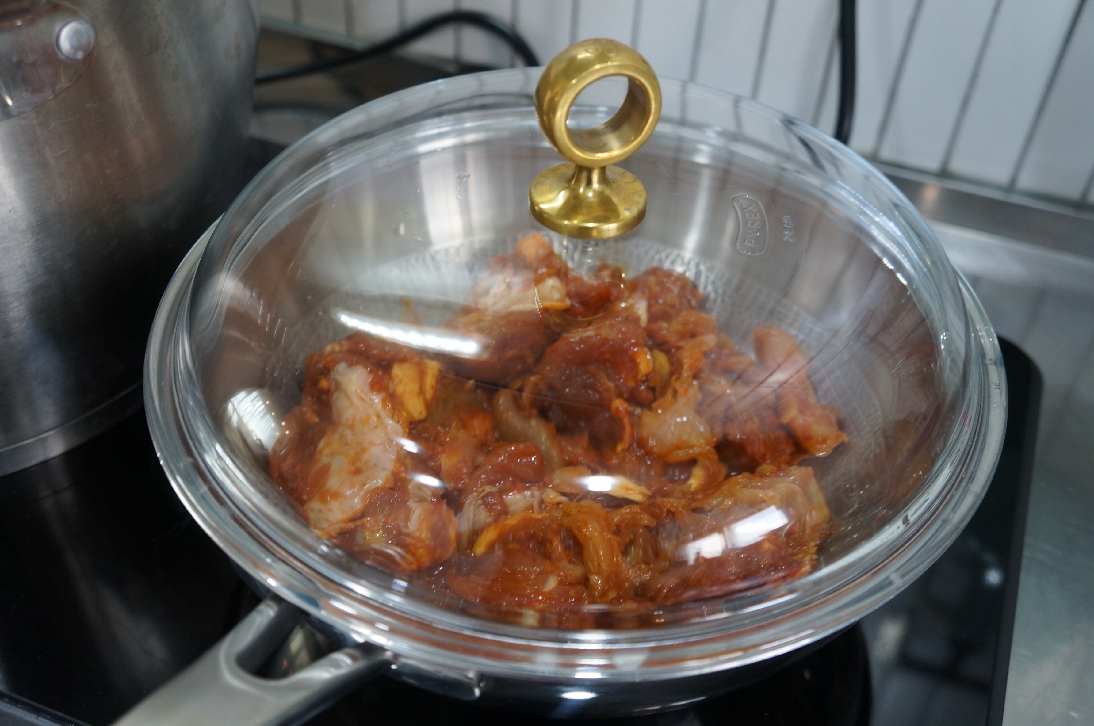 말랑 촉촉한 밀떡 해동된 닭갈비를 먼저 익혀준다