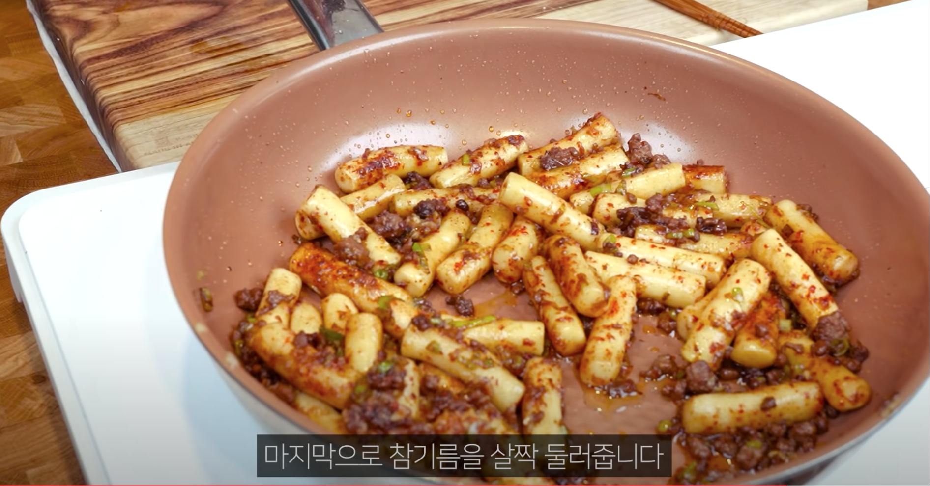 긔름에 먼저 파와 고기를 볶고 그리고 떡을 구워준다 + 그전에 먼저 볶은 파기름 이용 가능 ㅎㅎ