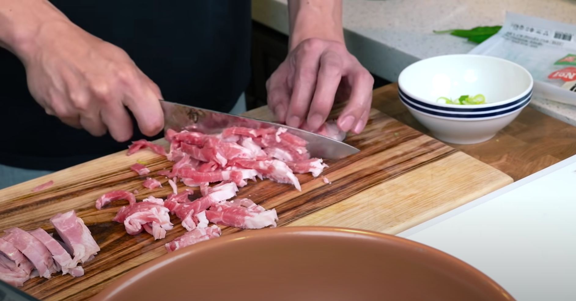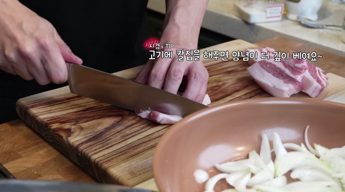 3. 삼겹살 벌집모양내서 한입크기로 먹기 좋게 자름