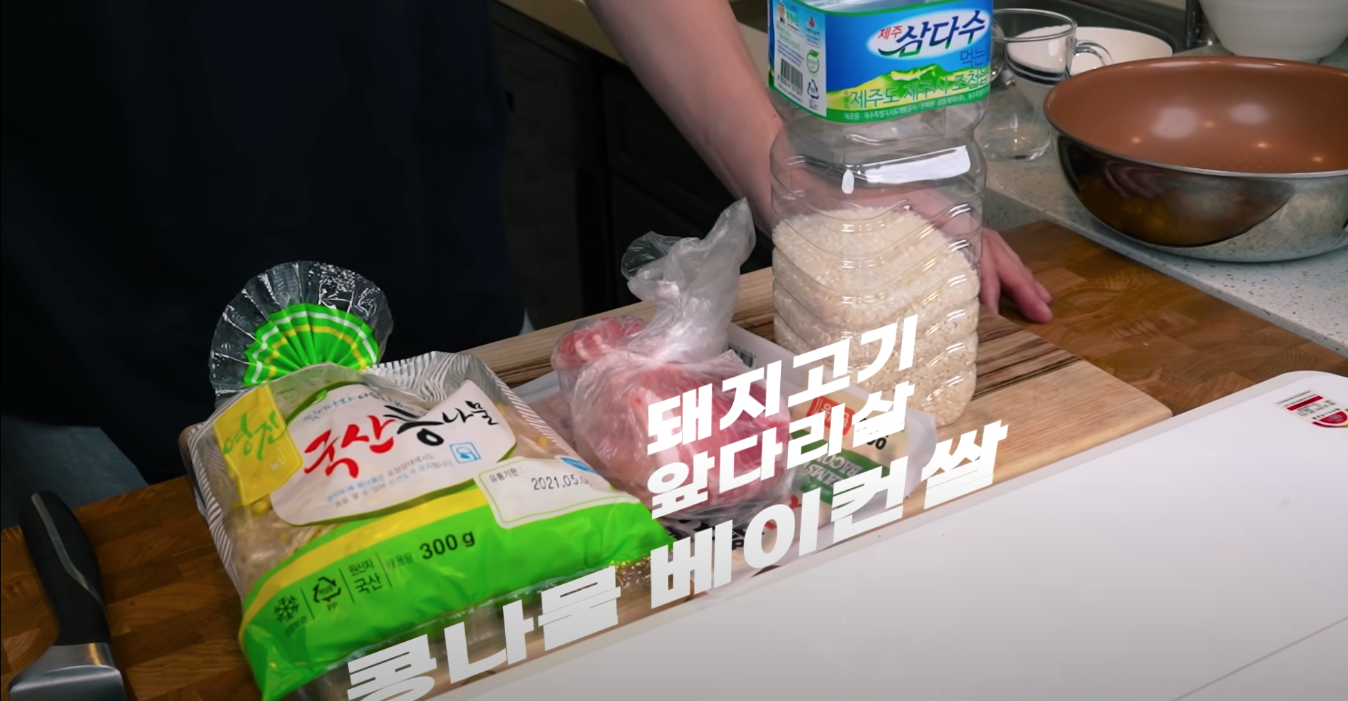 오늘은 베이컨 그리고 콩나물 밥 / 즉 밥이 필요하다 쌀 그리고 밥을 해야 한다.