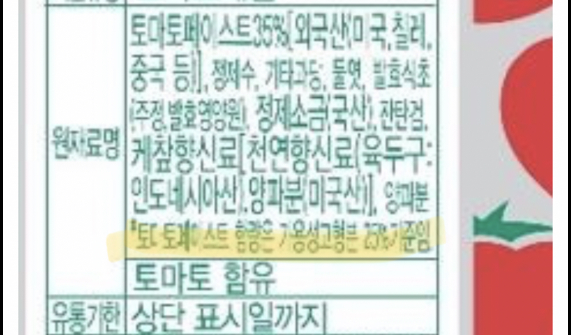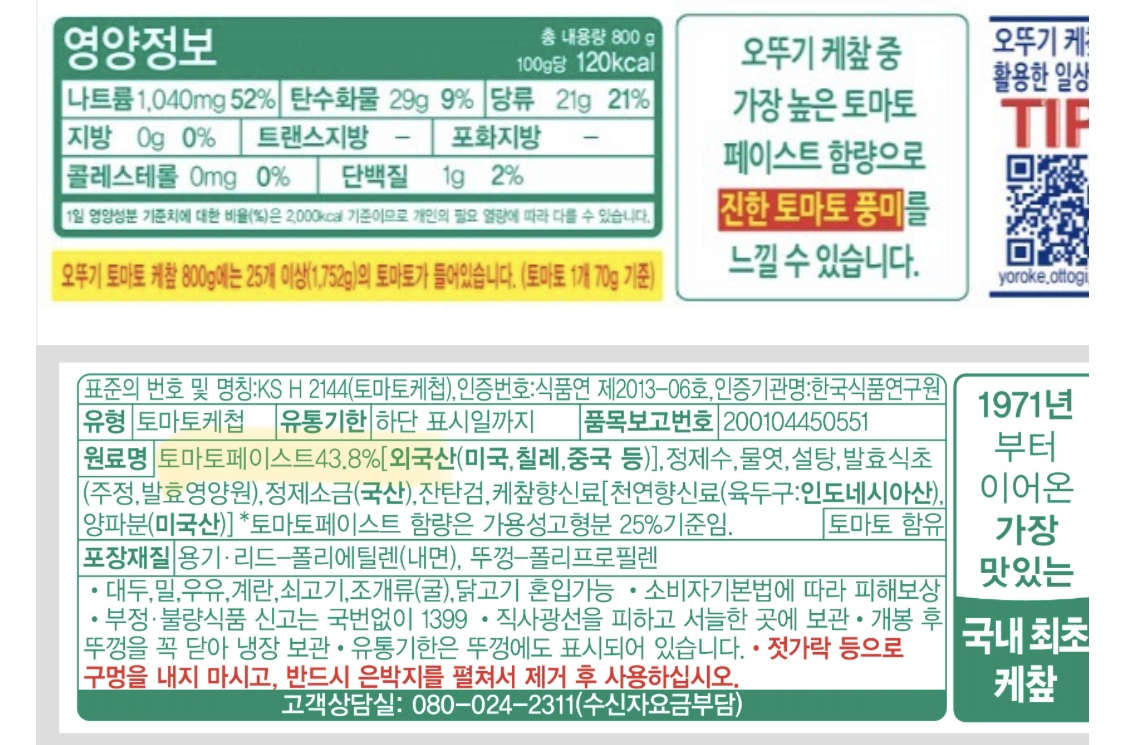 BK토마토케찹 롯데리아 케챂도 오뚜기이고 페이스트함량이 43.8%