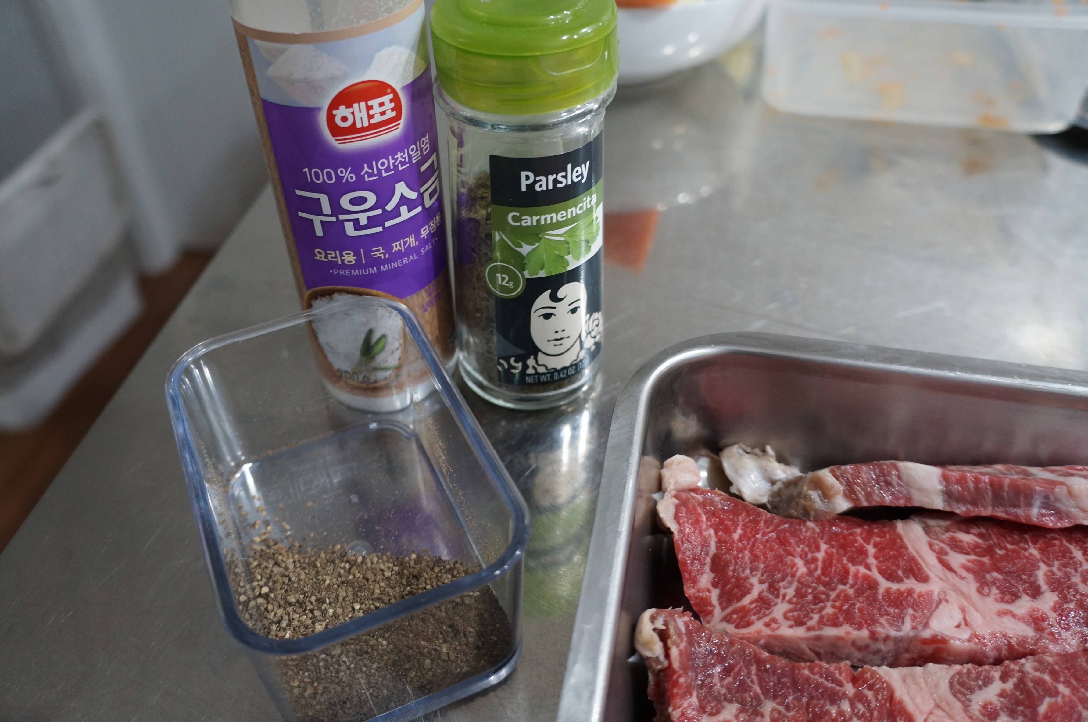 후추 소금 갈릭후레이크 쳐발 해주고