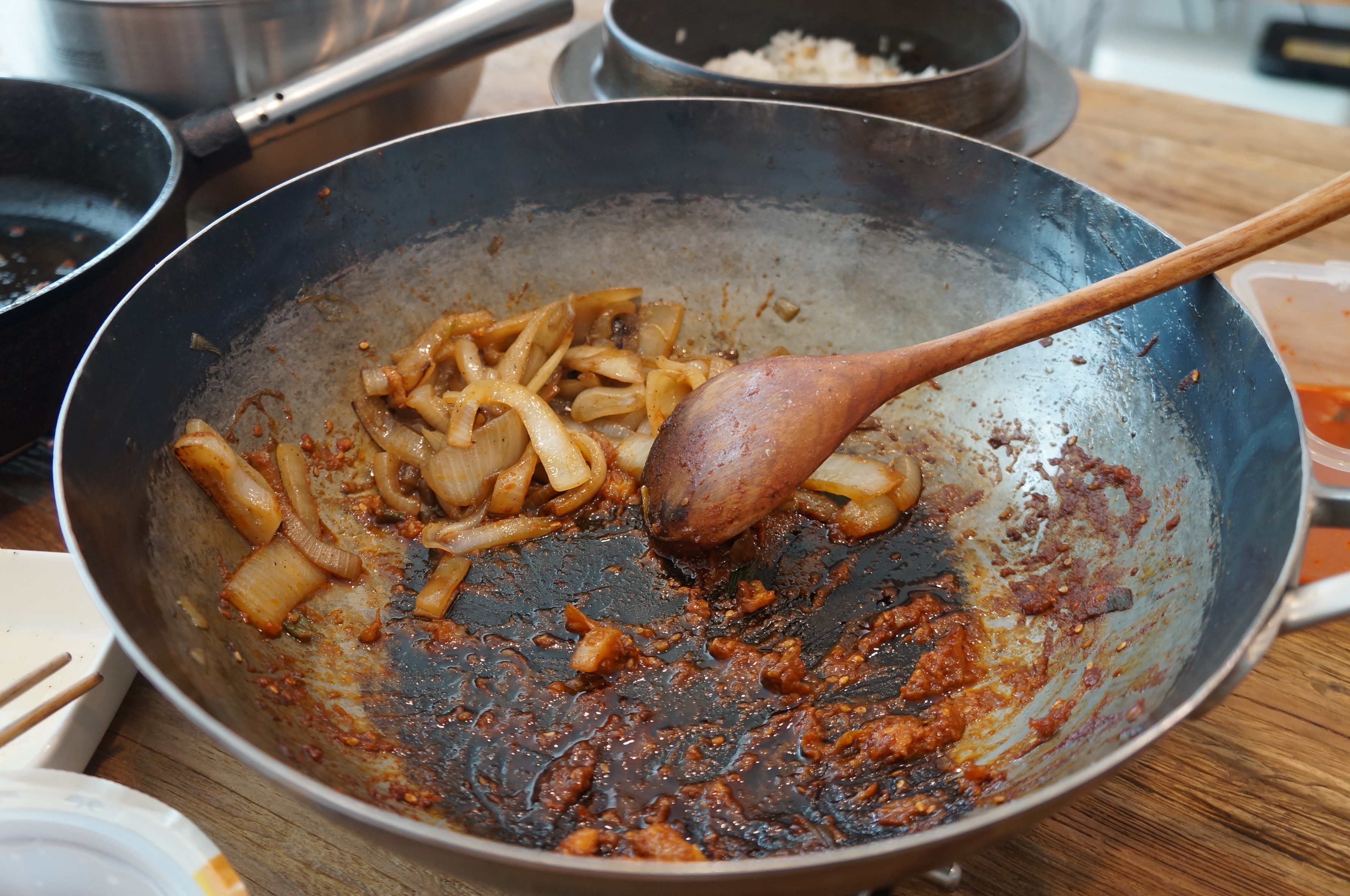 웍질을…