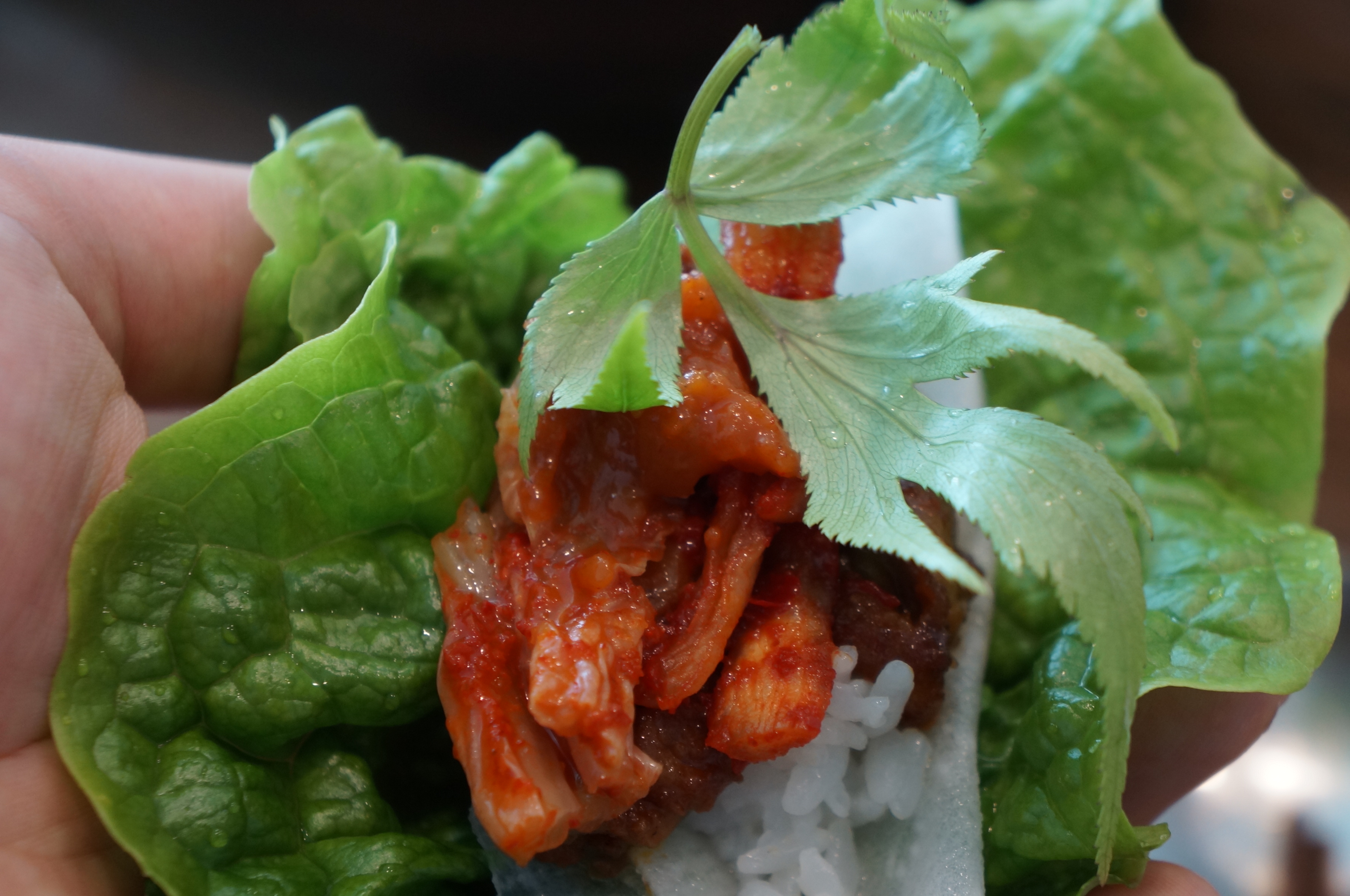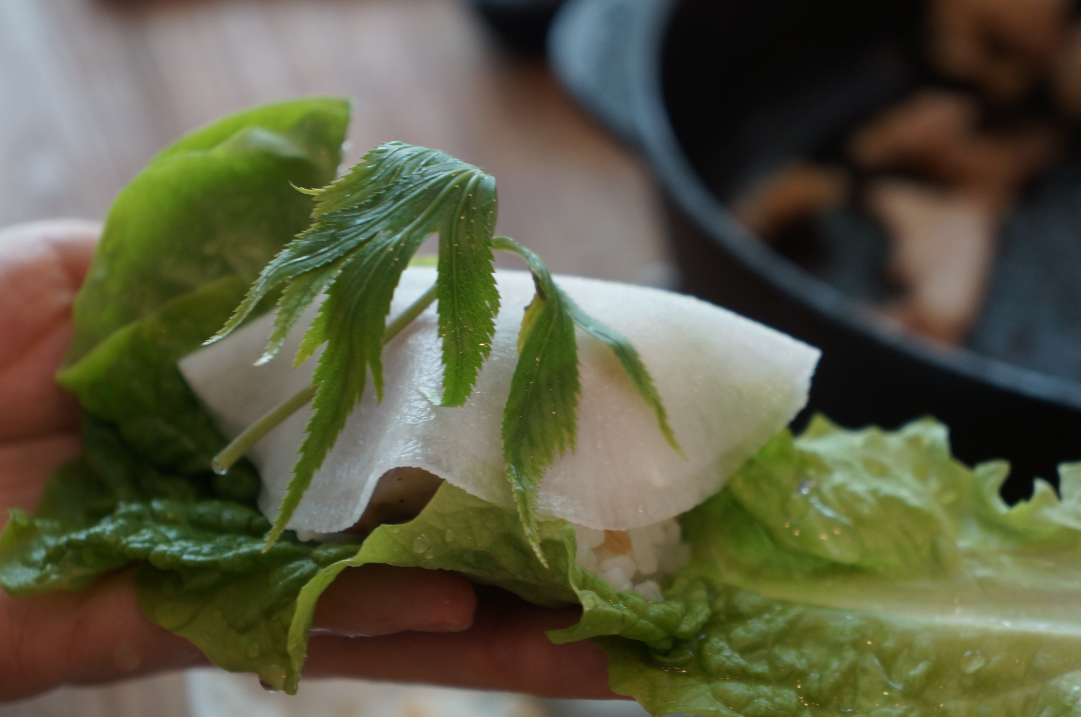 오리불고기쌈에 당귀를 넣고 한입