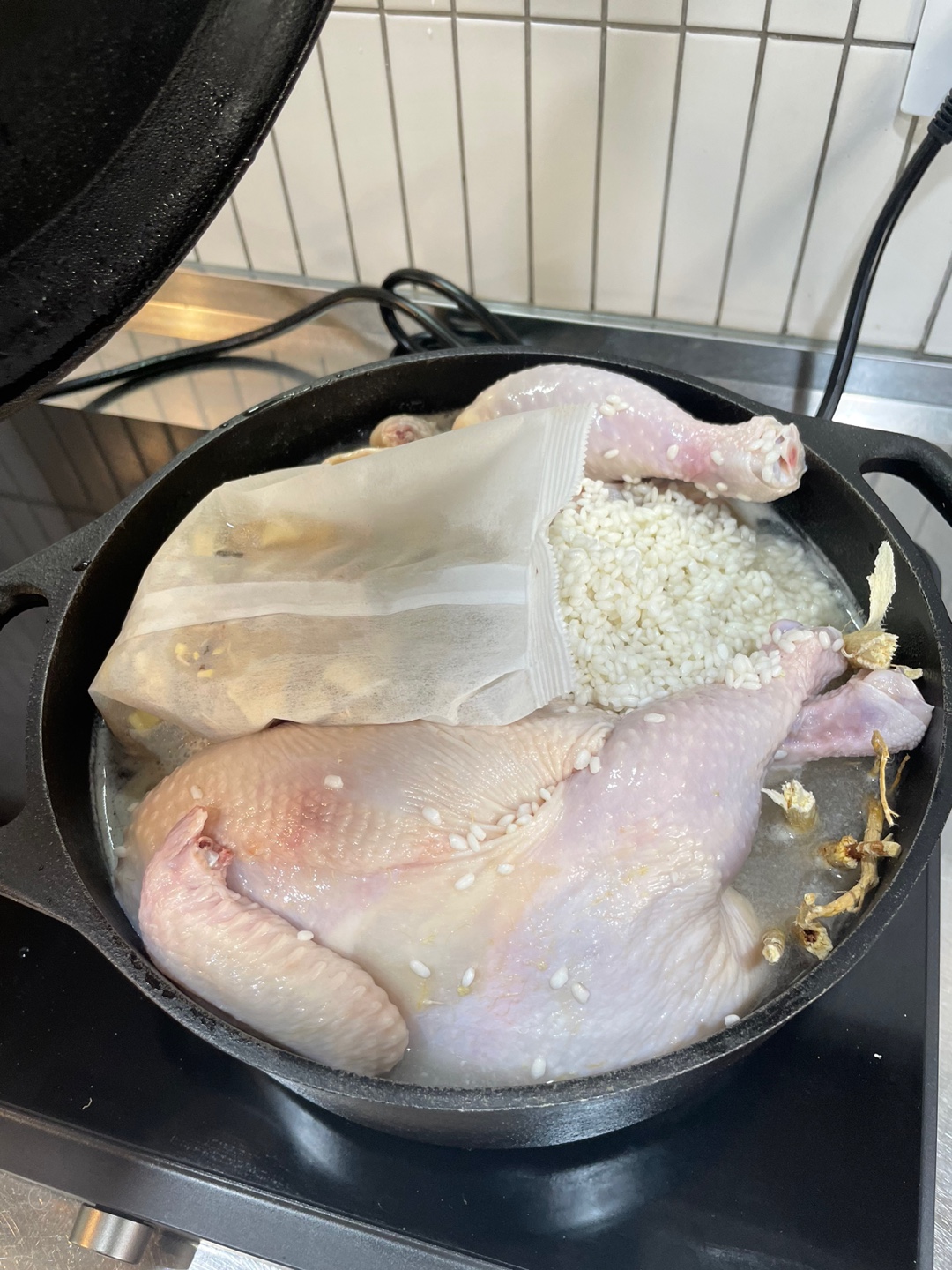 이시점에 닭속의 찹쌀은 덜익었더라 ㅠ 닭은 잘 익음