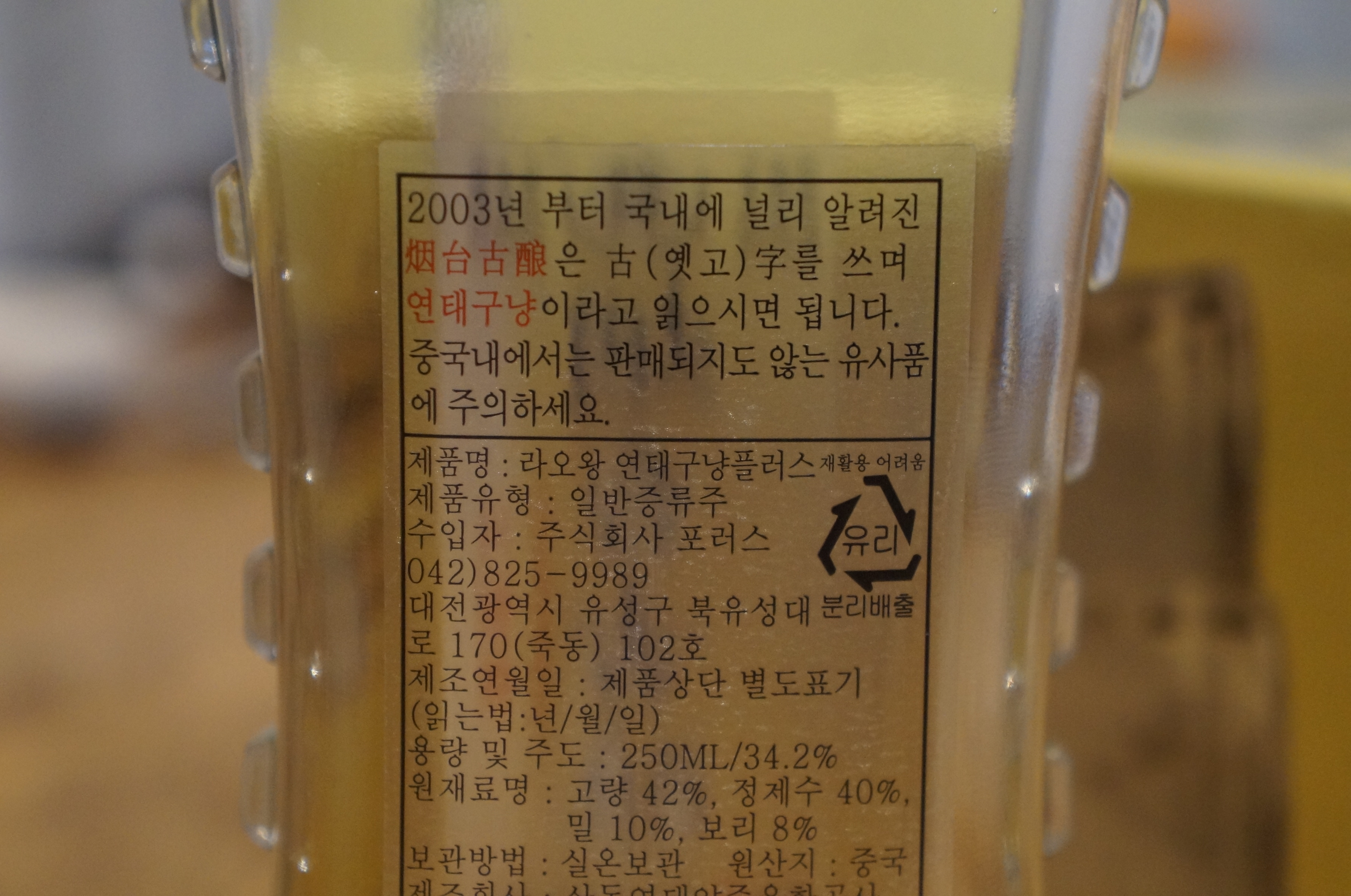 연태고량 연태구냥주는 아주 맑음 술 같다