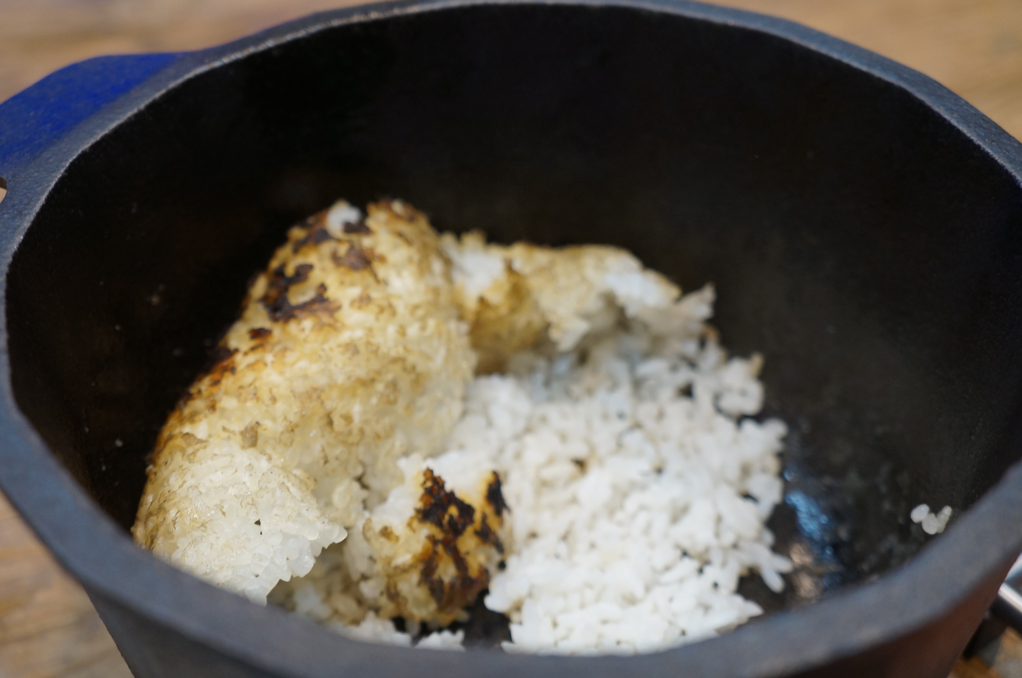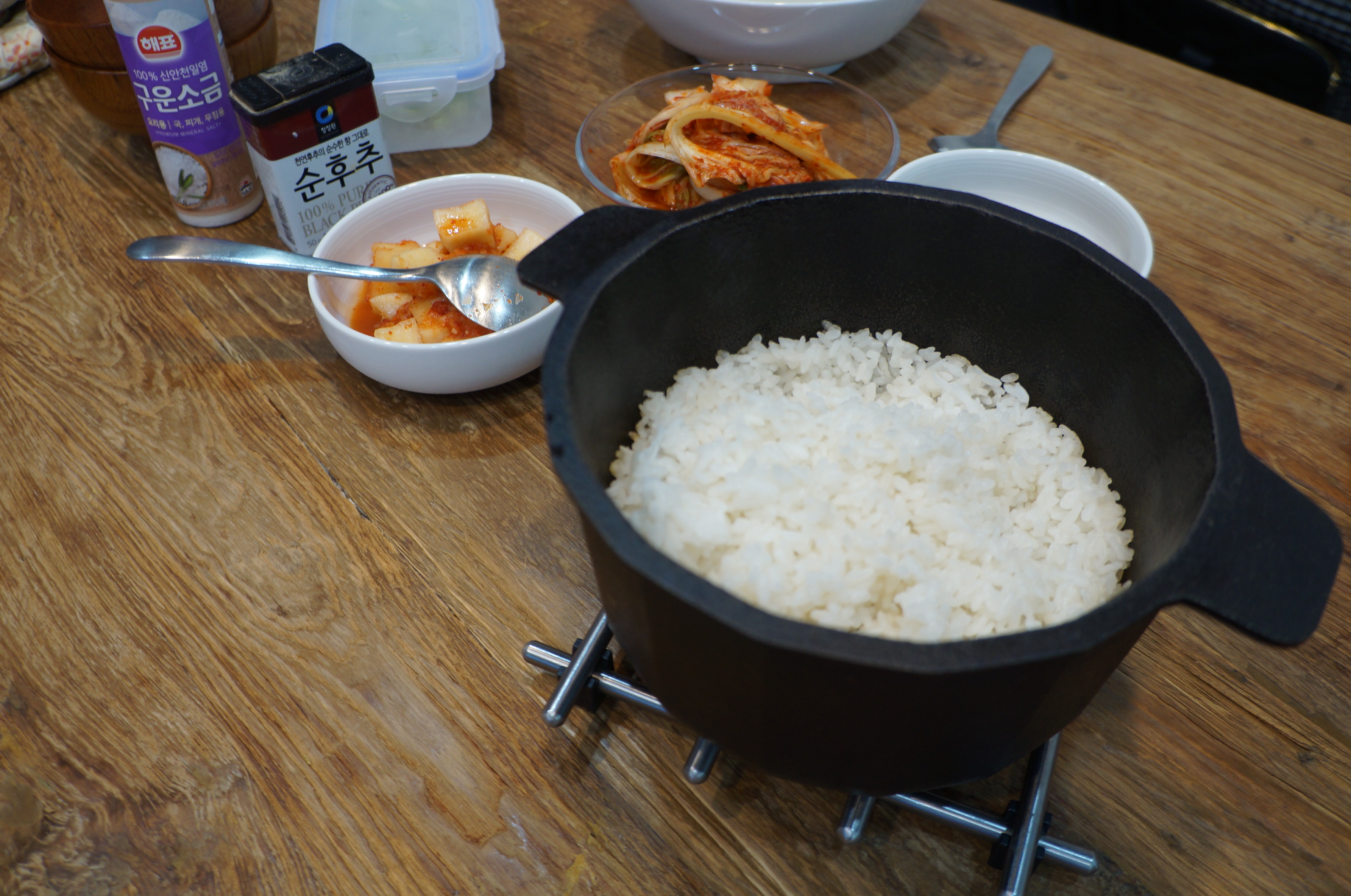 누룽지 떼어낸 솥의 모습 누룽지를 때어서 덜어놓았다