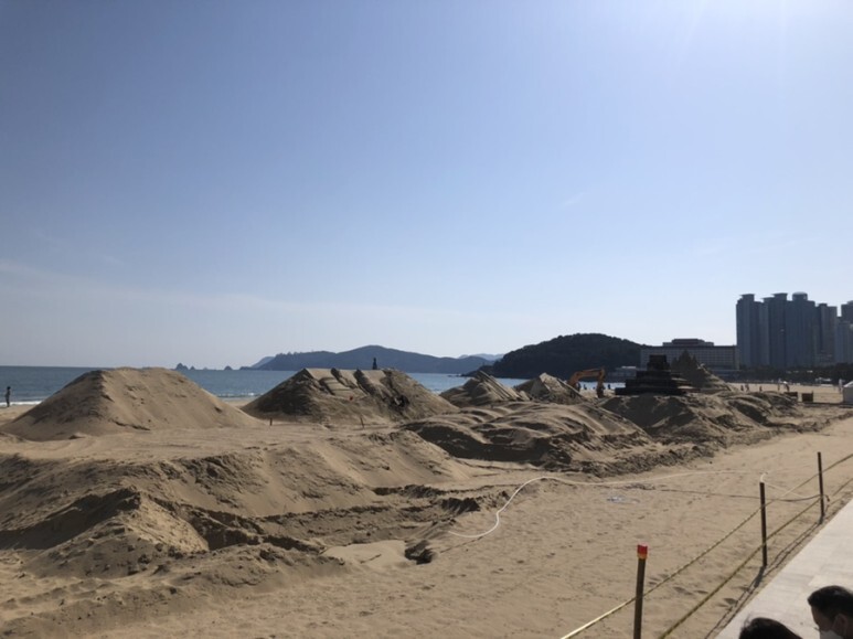 해운대 바다는 모래축재 준비로 한창이다
