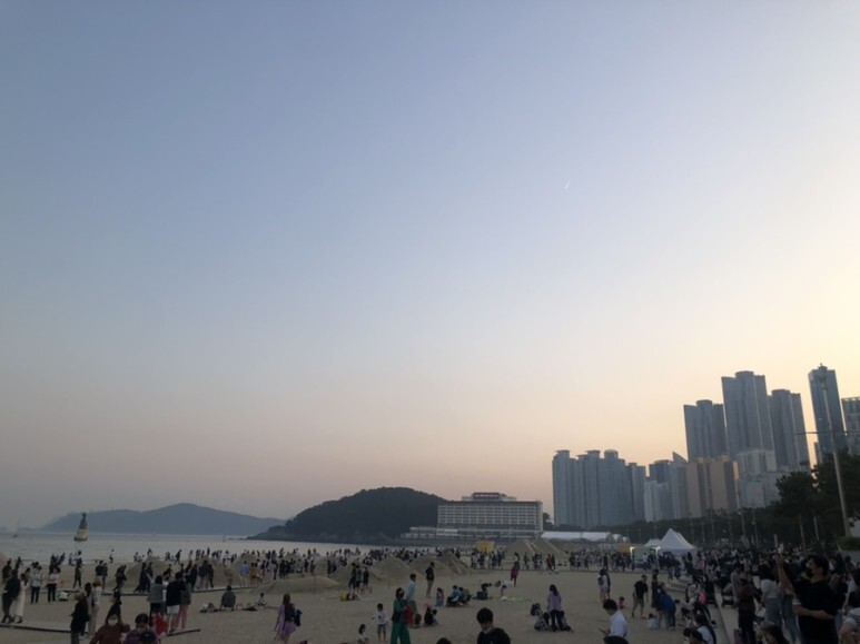 오랜만에 해운대 바닷가 사람도 많고 훈훈하게 해가 넘어간다.