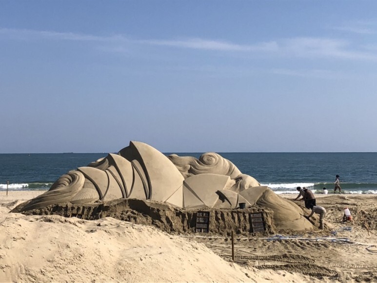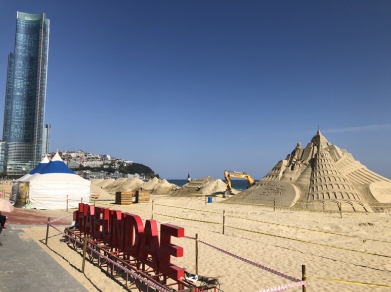 아래는 모래축제전에 산책하면서 모래성이 제작되는 부분을 일부 찍어놓은것