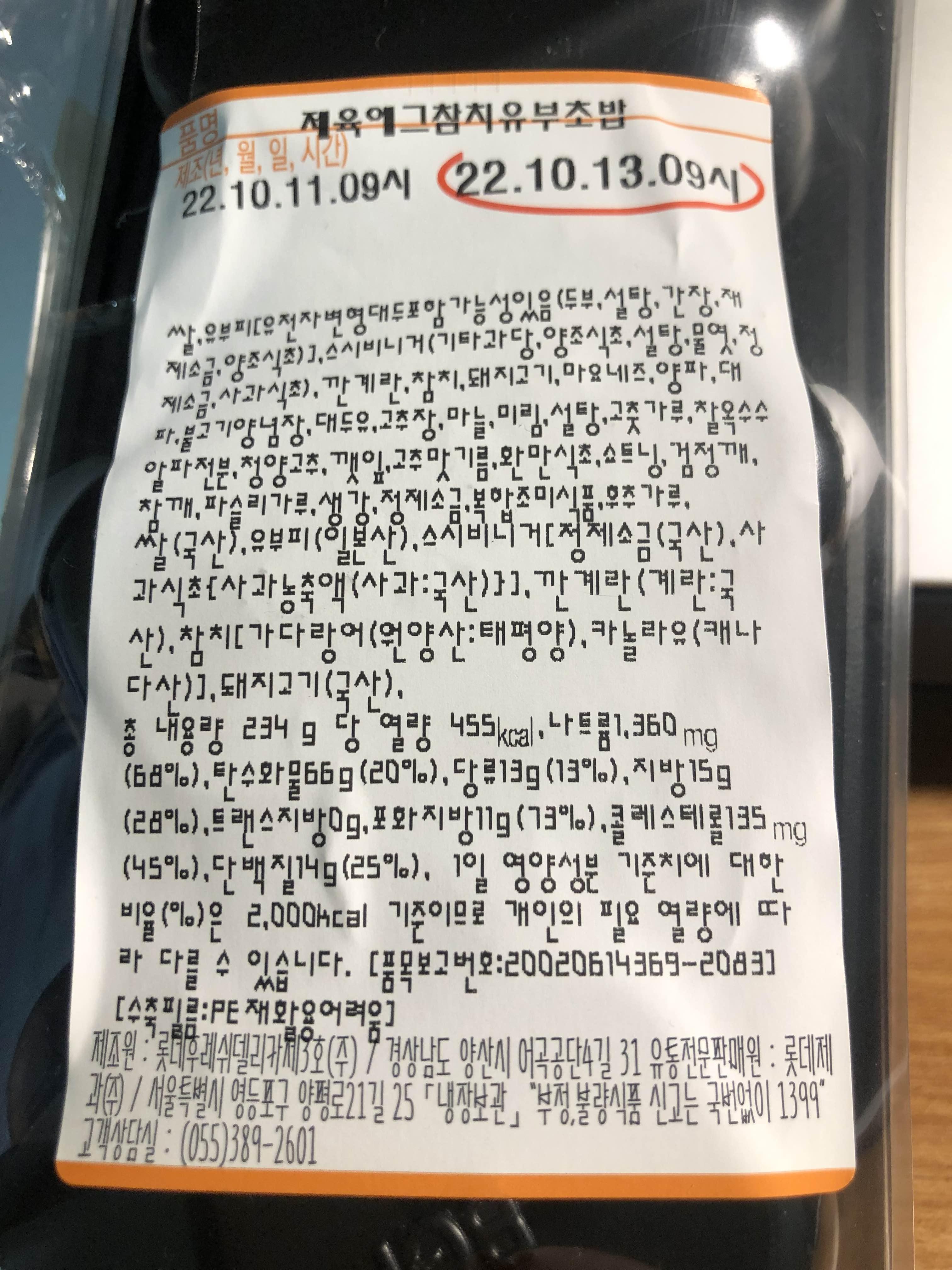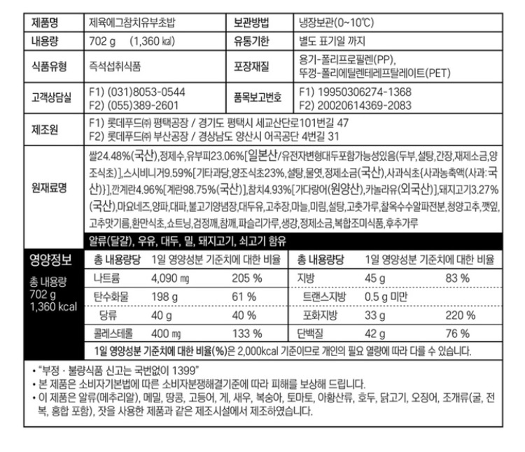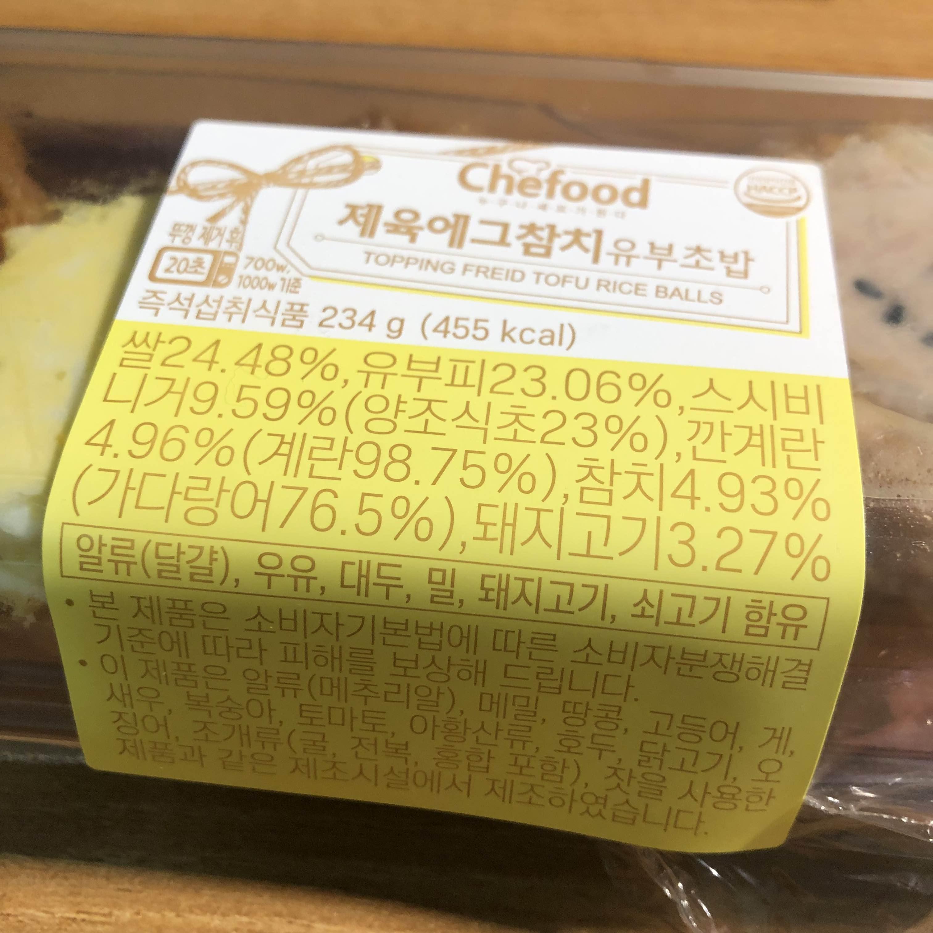 쉐푸드 제육에그참치 구성성분표 자 그럼 한입해볼까!? ㅋㅋ