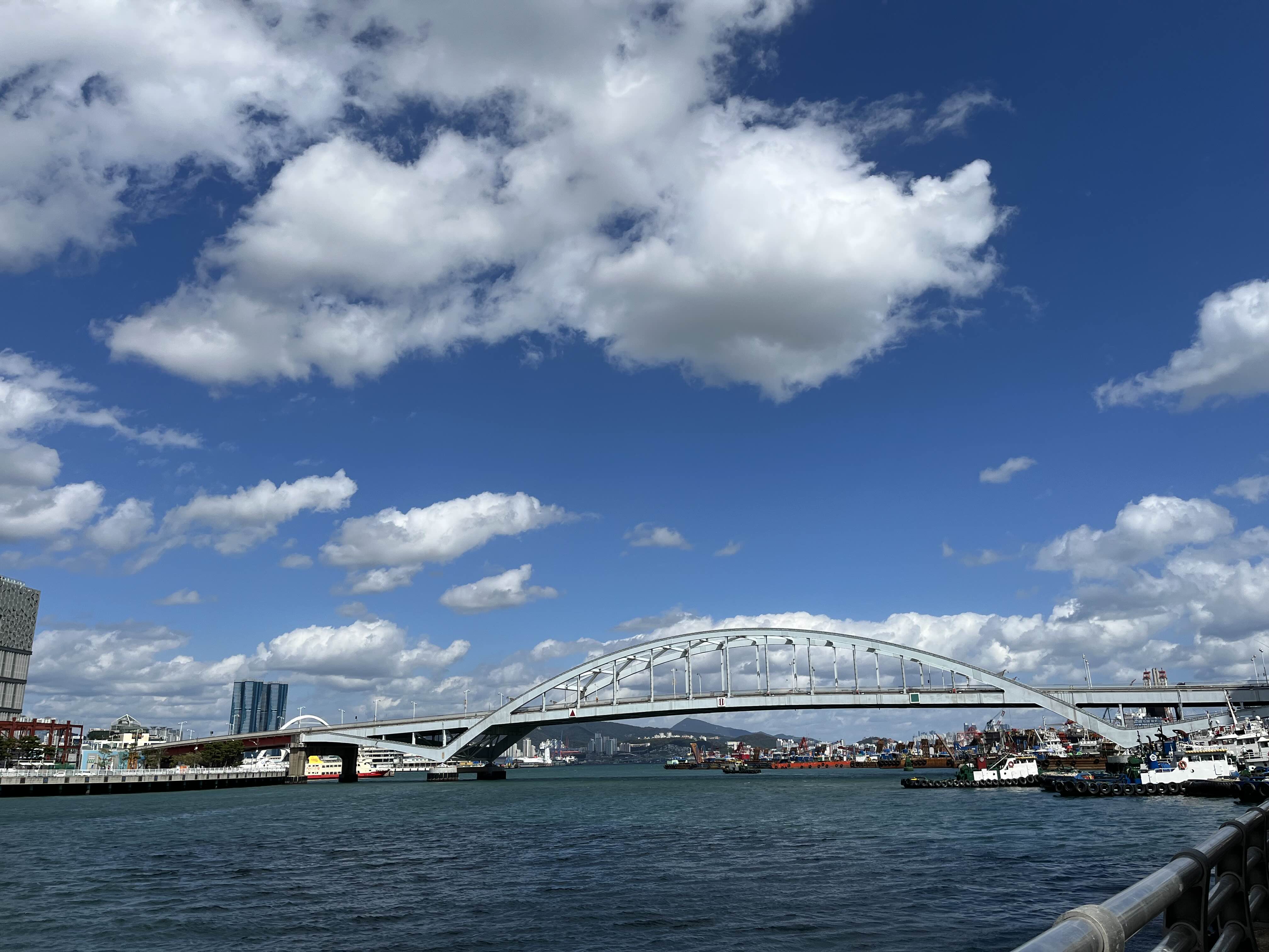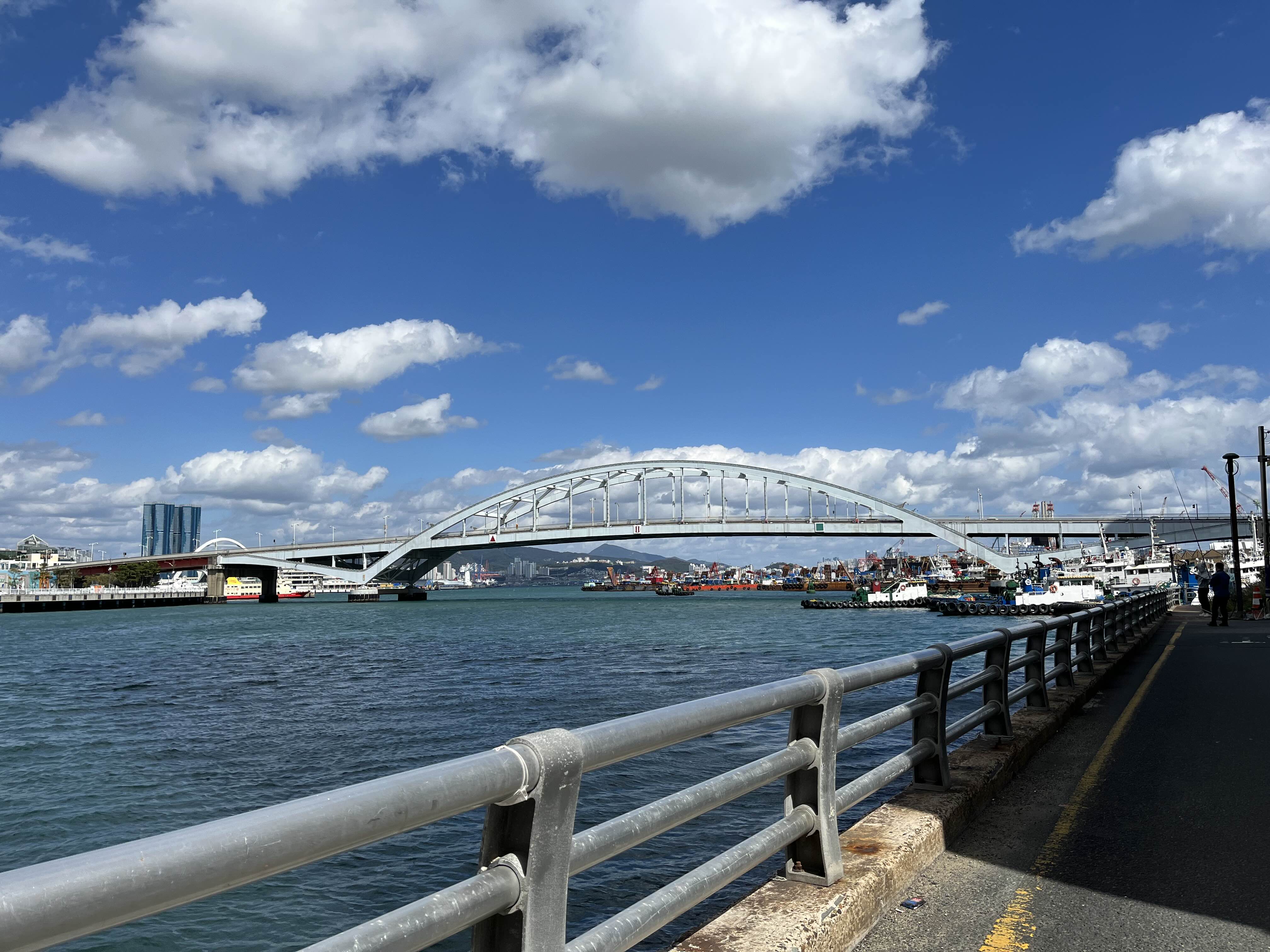 다리가운데에선 중앙동과 남부민동과 천마산이 보인다.
