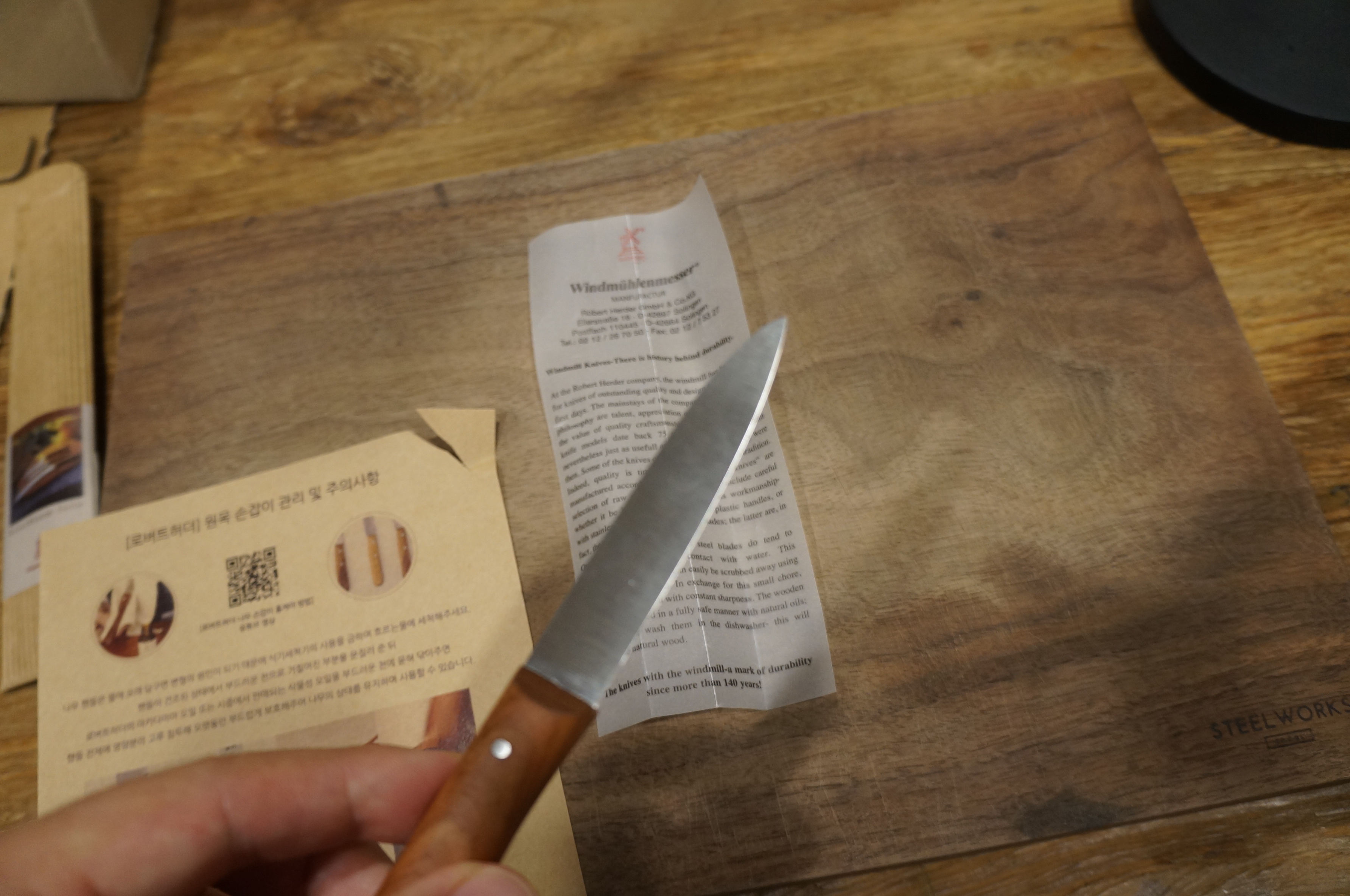 스틸웍스 도마 - 호프라이프 판매 로버트 헤어더 식탁용 만능 나이프 올리브우드 올드 독일 2002.450.05